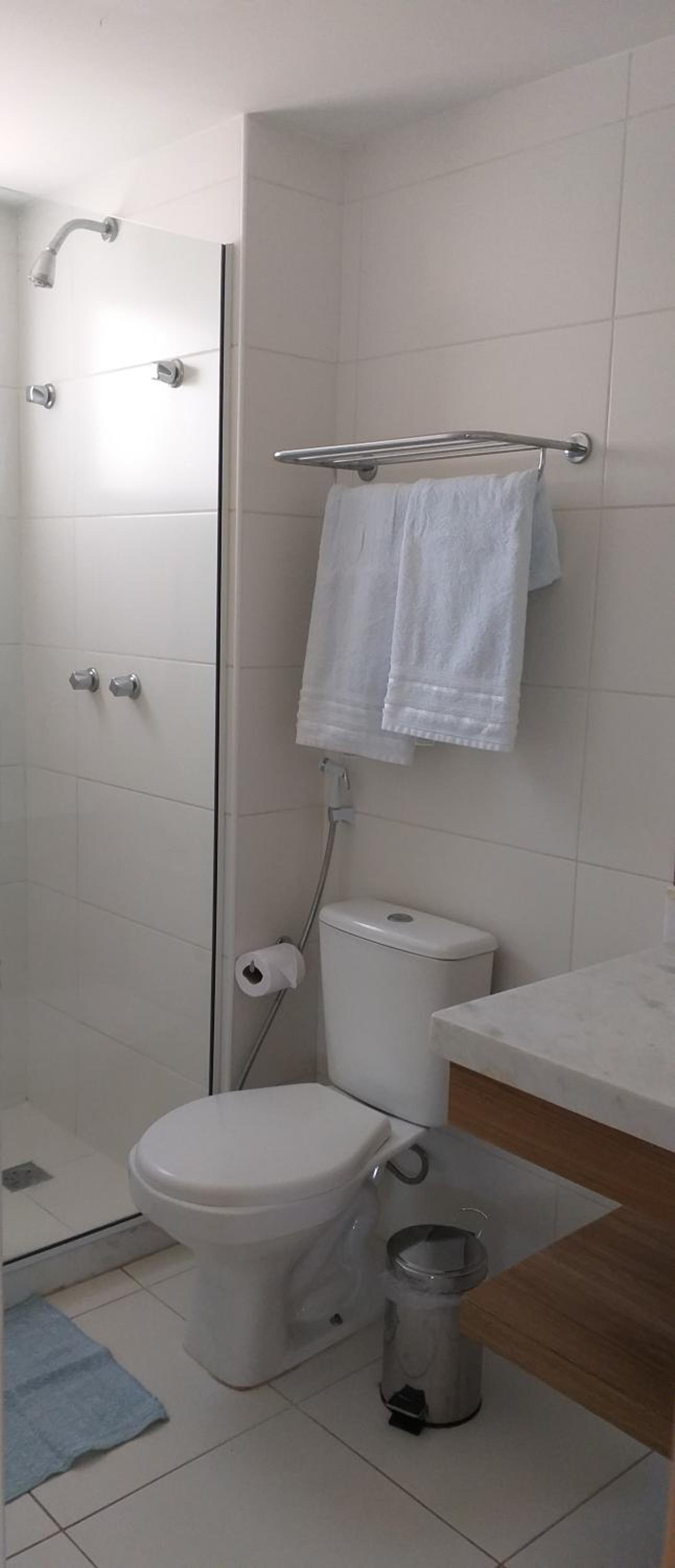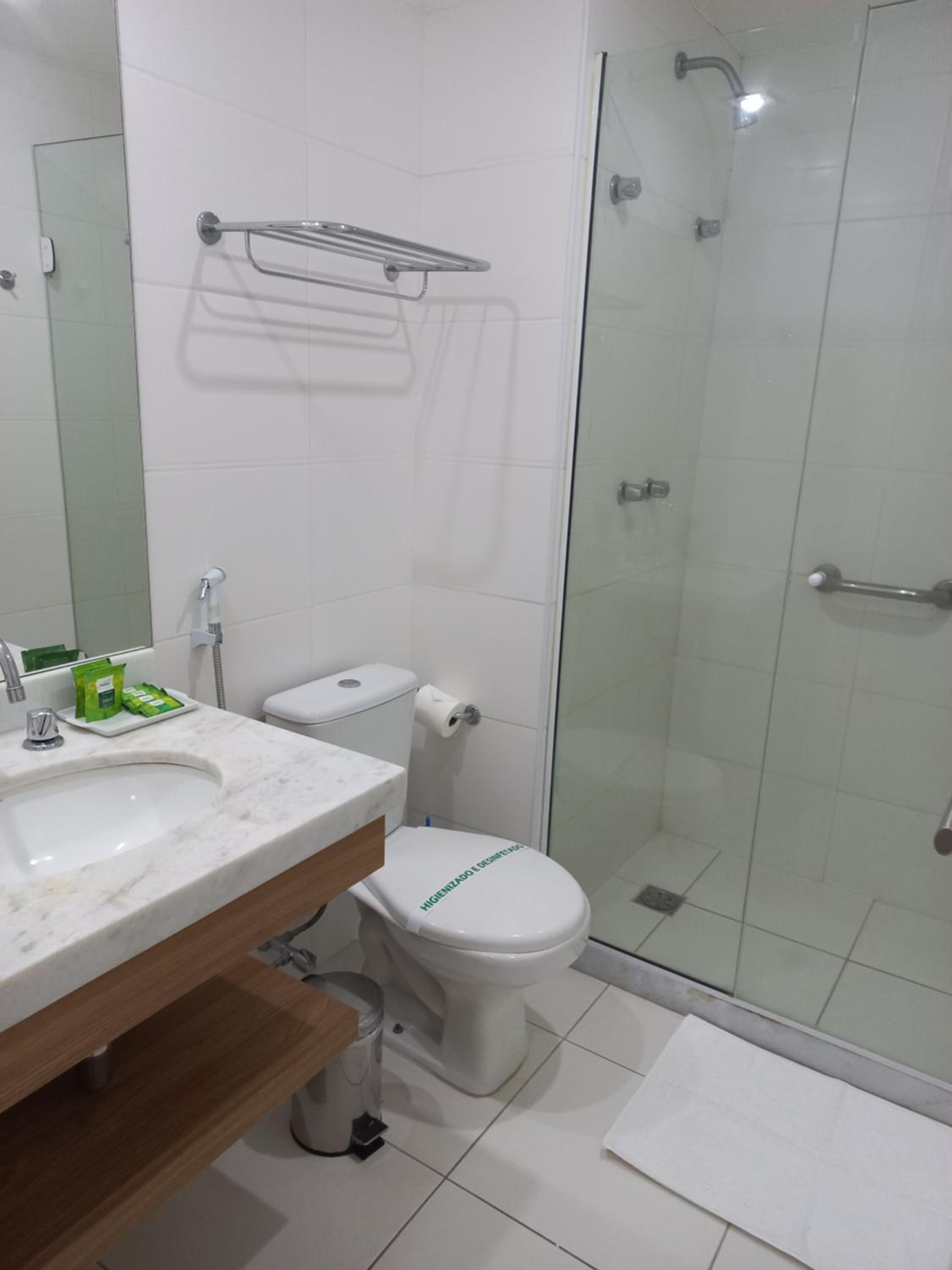 tinha cabelo no piso do banheiro, indicando que a limpeza não foi grandes coisas