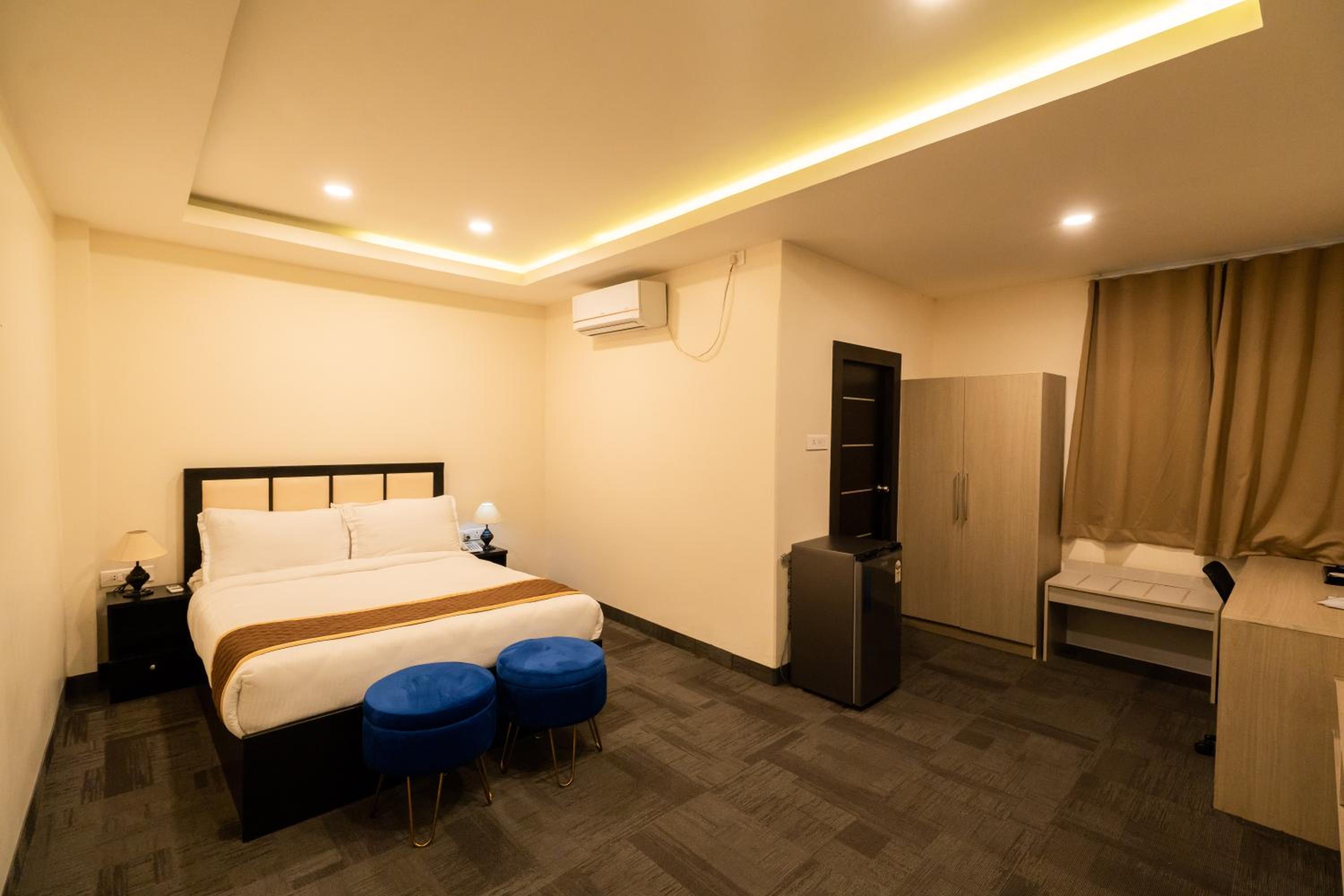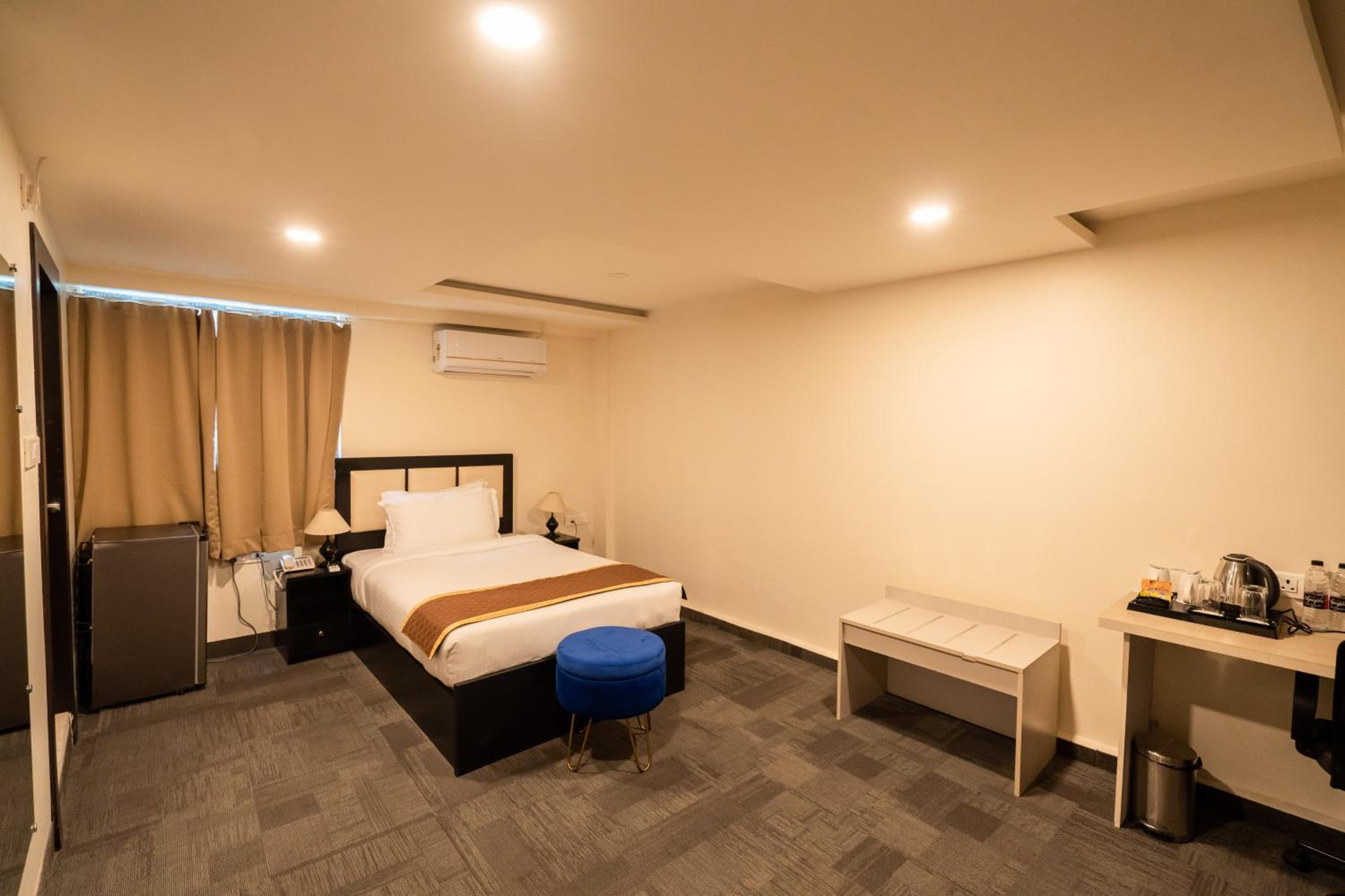 Rooms are not ventilated. No window and no natural light. Whole hotel is carpeted which is not hygienic. No exhaust fan in wash rooms. Suffocated rooms.