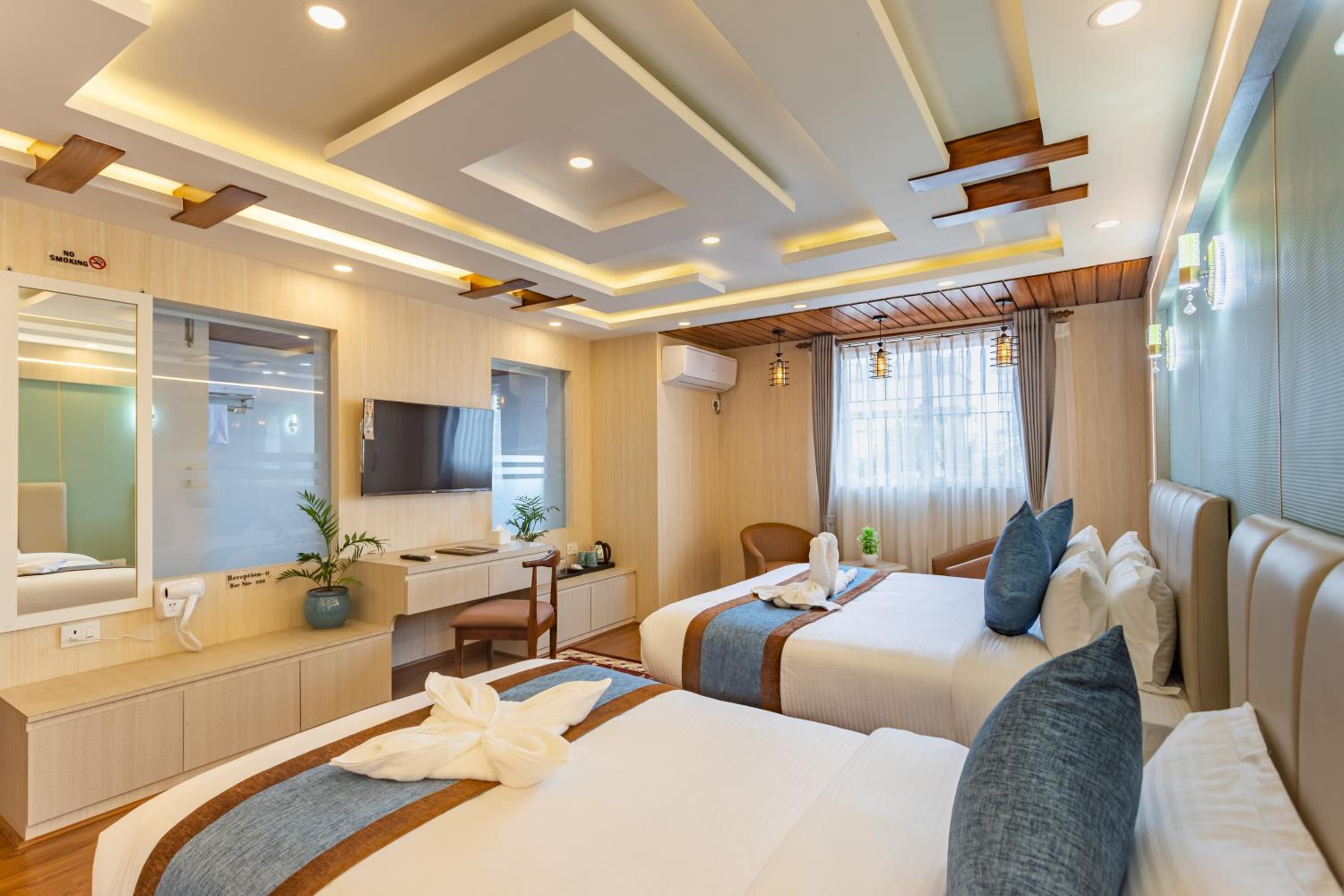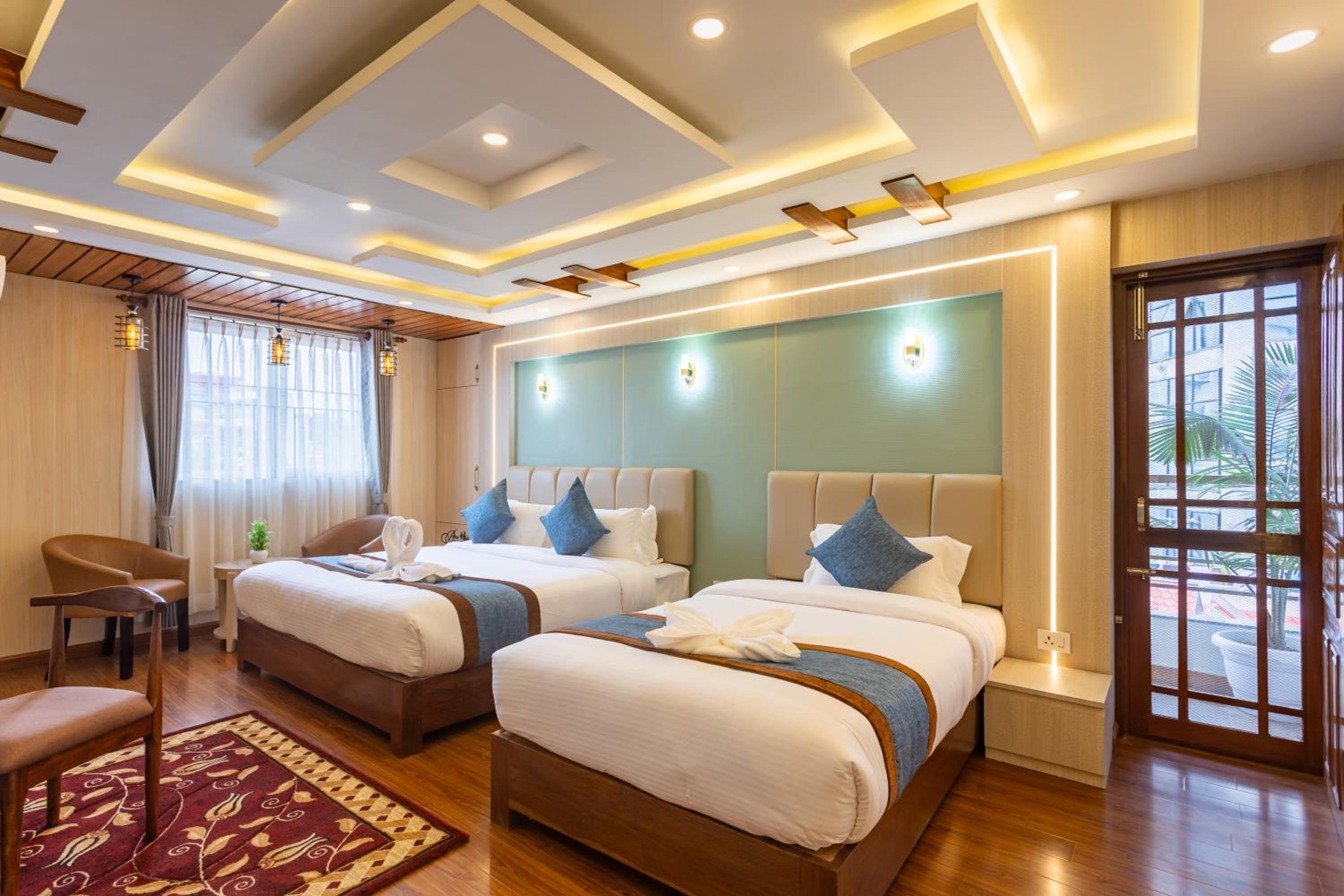 Very helpful staff who collected us from the airport communicating very easily through WhatsApp. Rooms are new and very comfortable. Food is good. Very grateful for being able to stay in one room for extra hours when we had an 11pm flight. Also helpful arranging transport into Kathmandu. Would happily stay again
