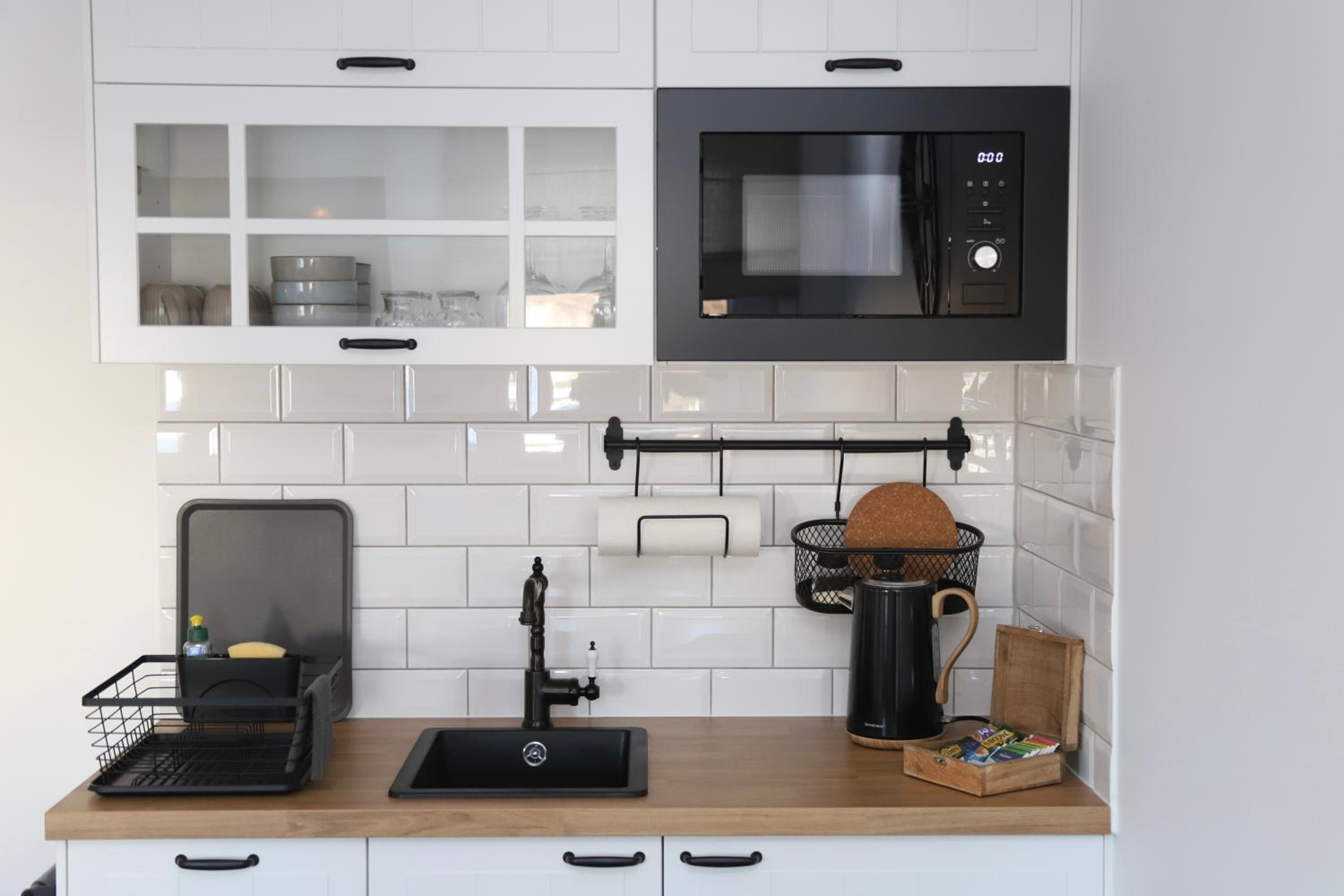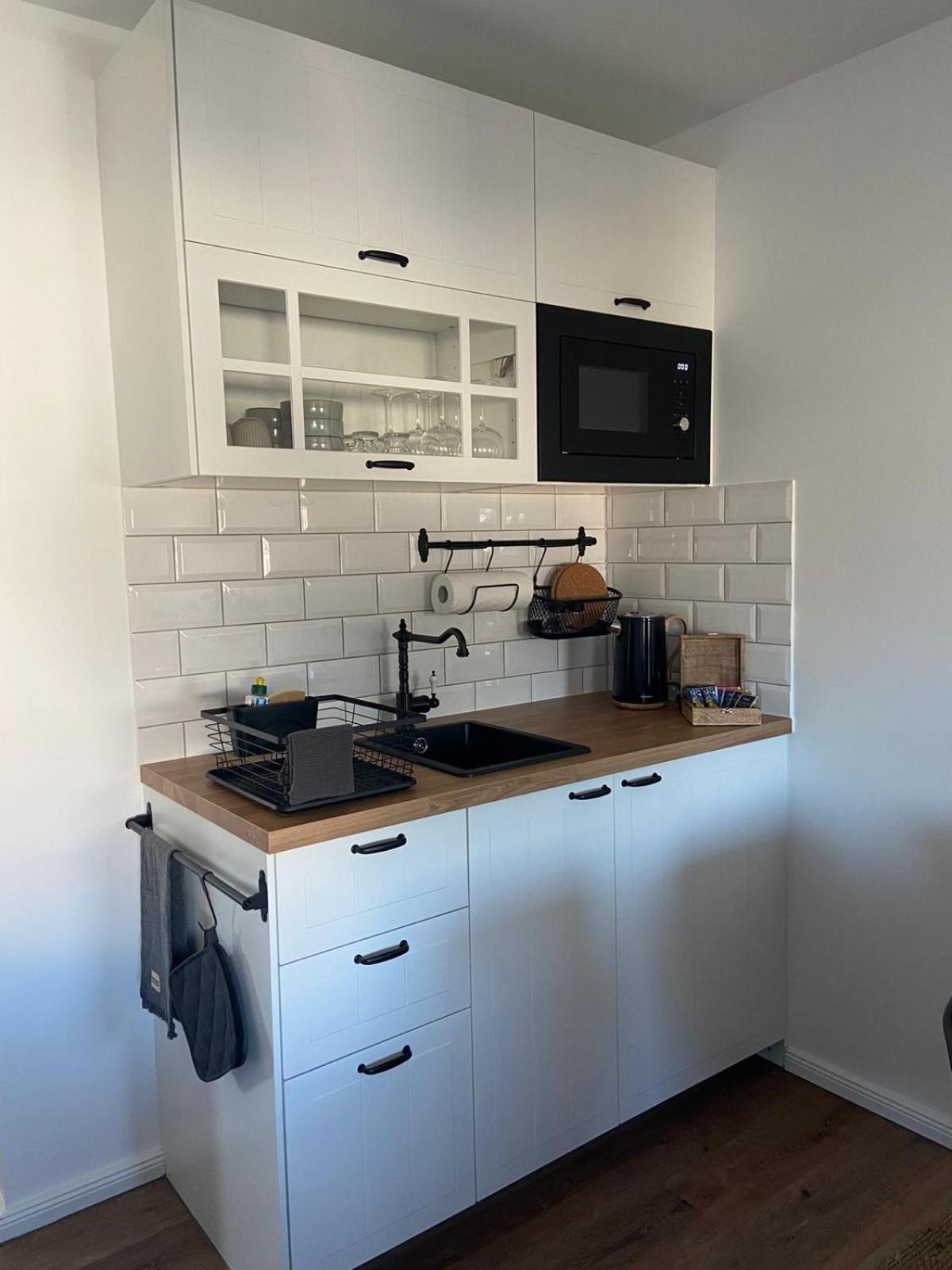 Leider keine Kochmöglichkeit, nur eine Mikrowelle und die Beleuchtung im Raum recht dunkel.