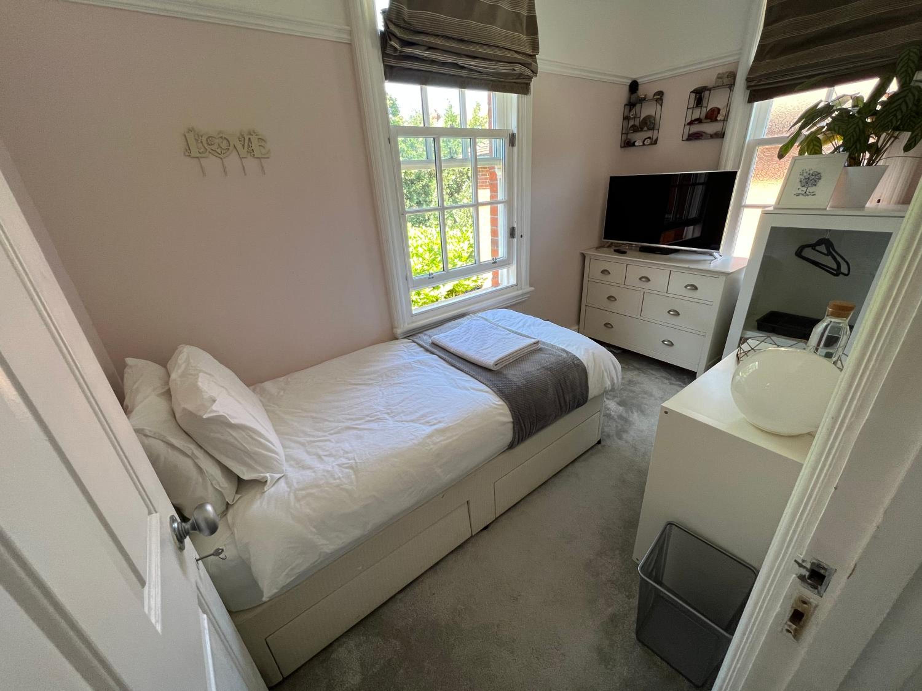 Nice small room in a big and clean house. It's easy to get into London from the train station close by.