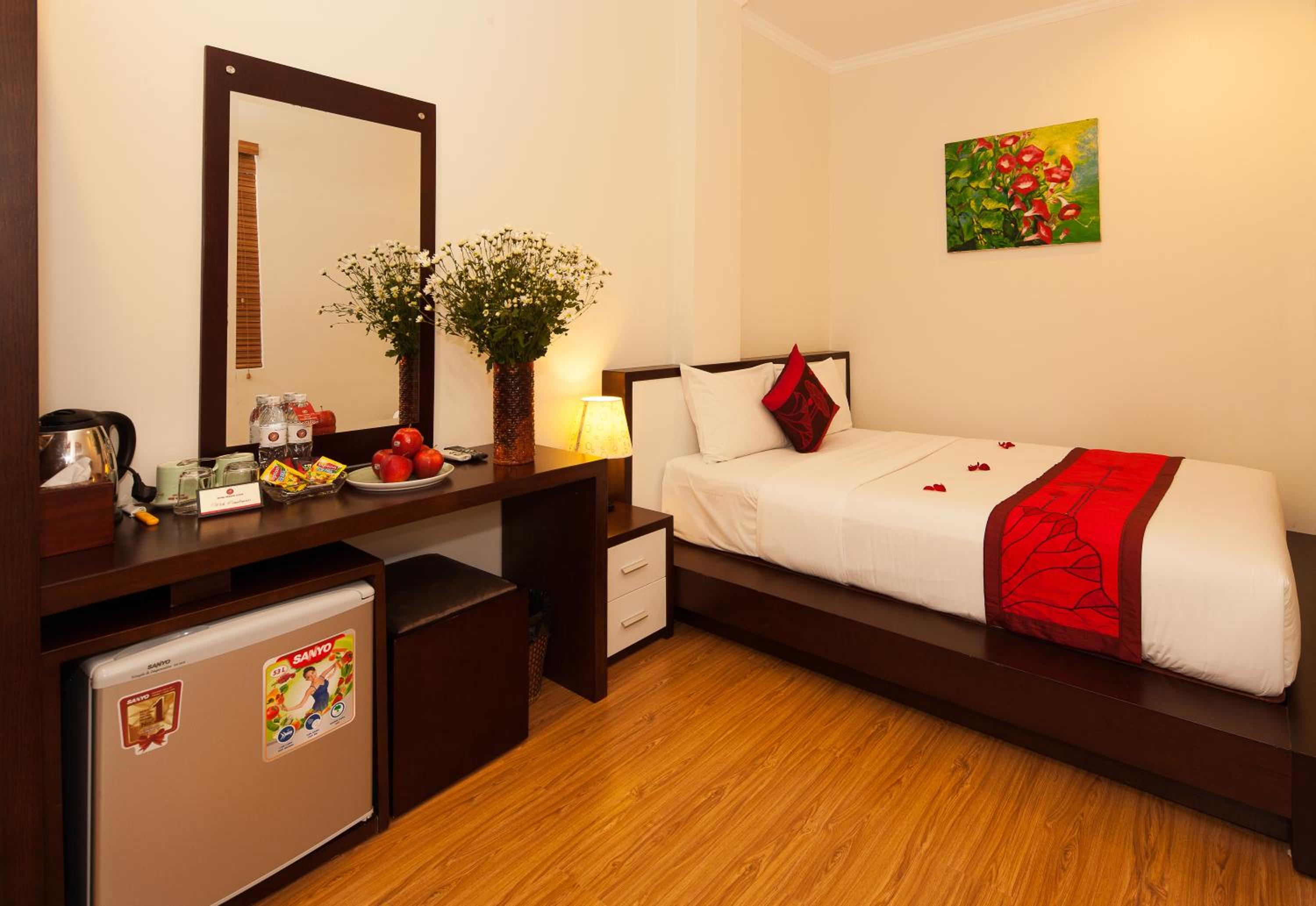 The well-appointed rooms at Rising Dragon Hotel feature air conditioning, flat-screen TVs, and private bathrooms with free toiletries. Some rooms even offer stunning city views, providing a relaxing retreat after a day of exploring Hanoi.