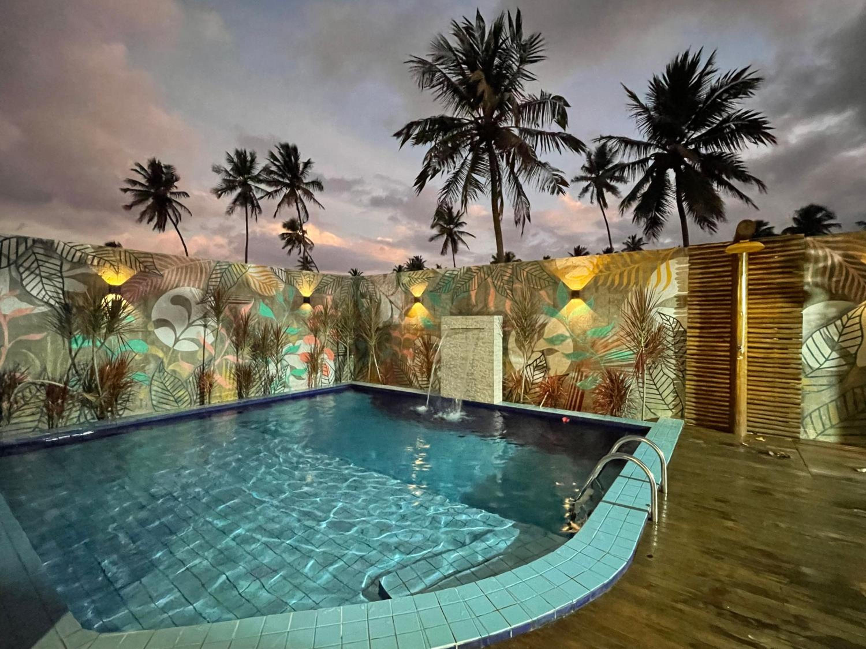 Guests can unwind by the pool with scenic views, stroll through the lush garden, and enjoy complimentary private parking.
