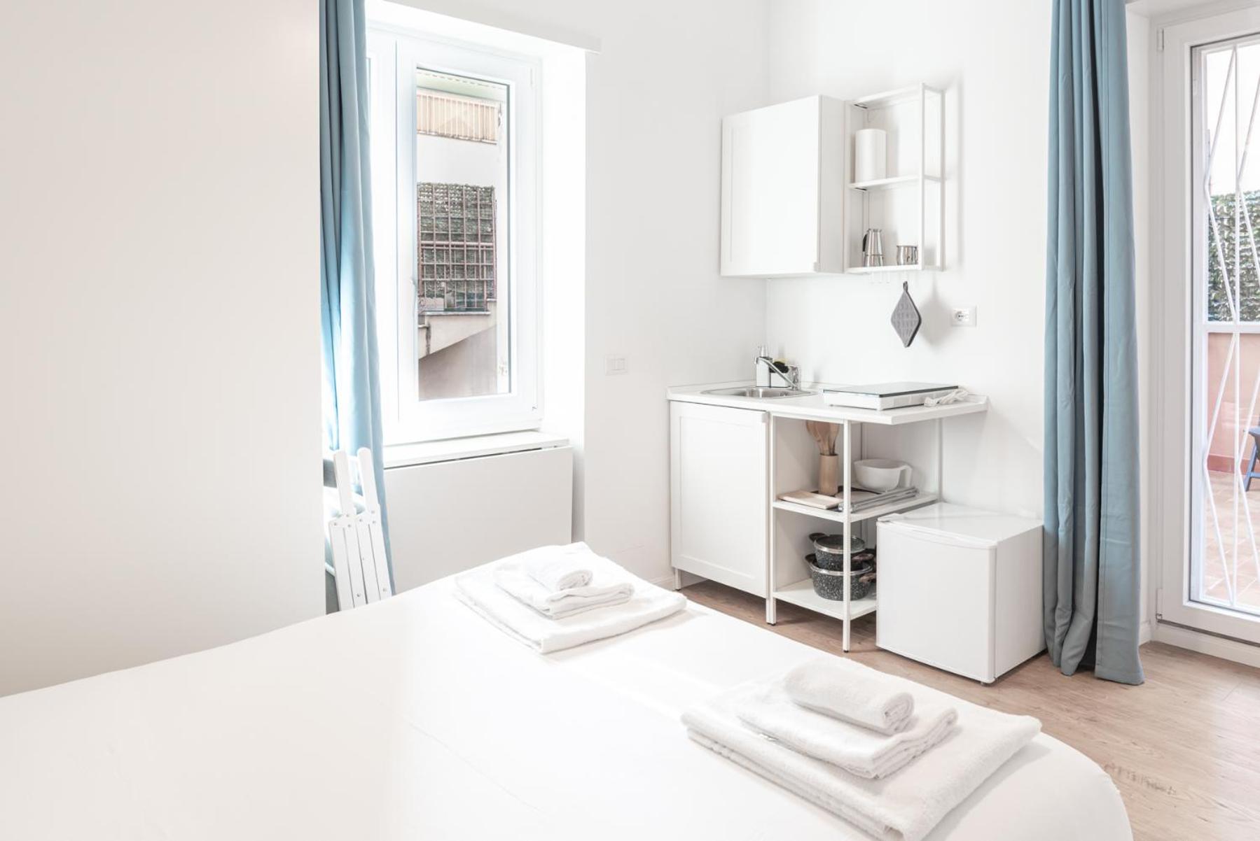 Stanza molto confortevole con anche cucinino e lavandino stesso nella stanza