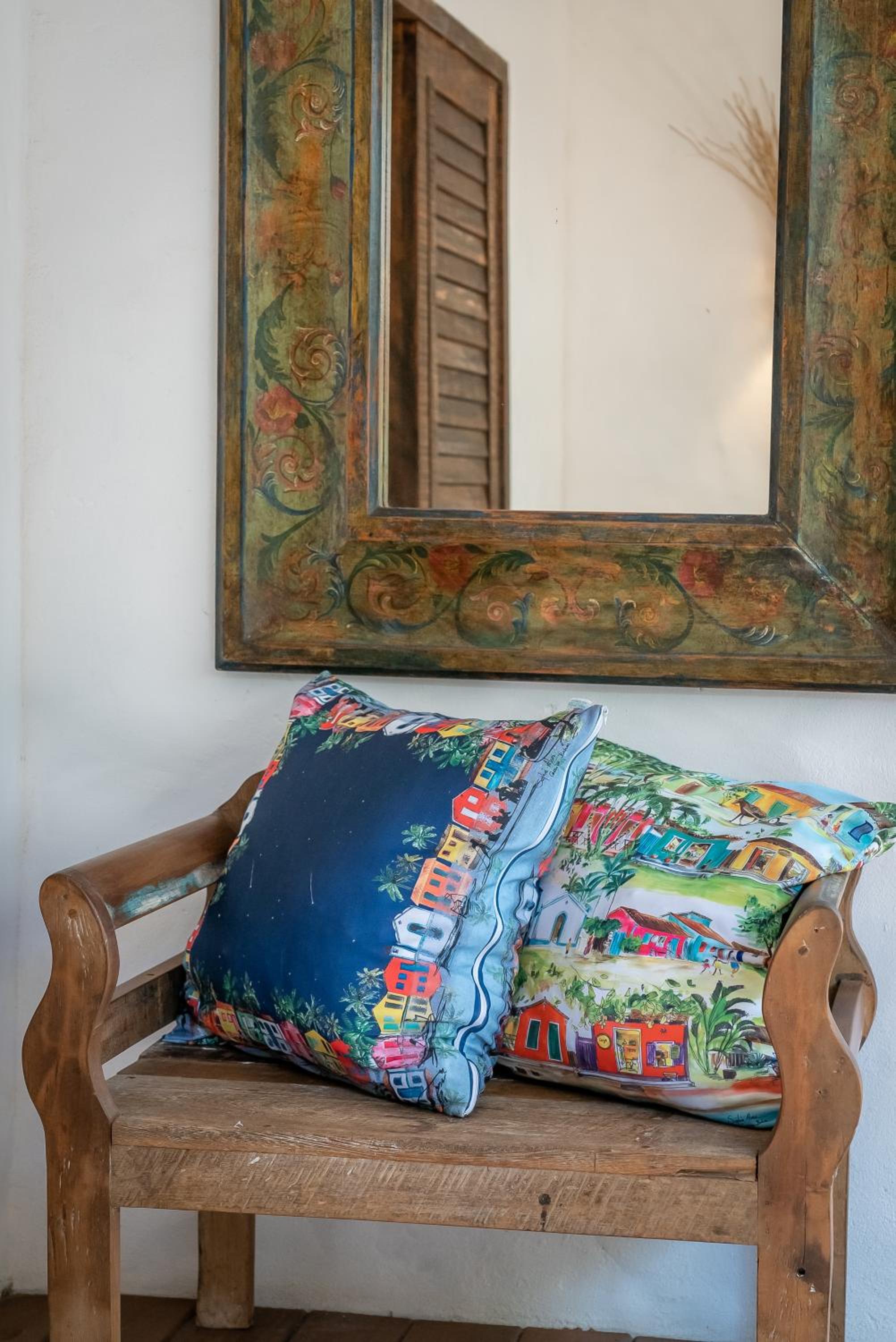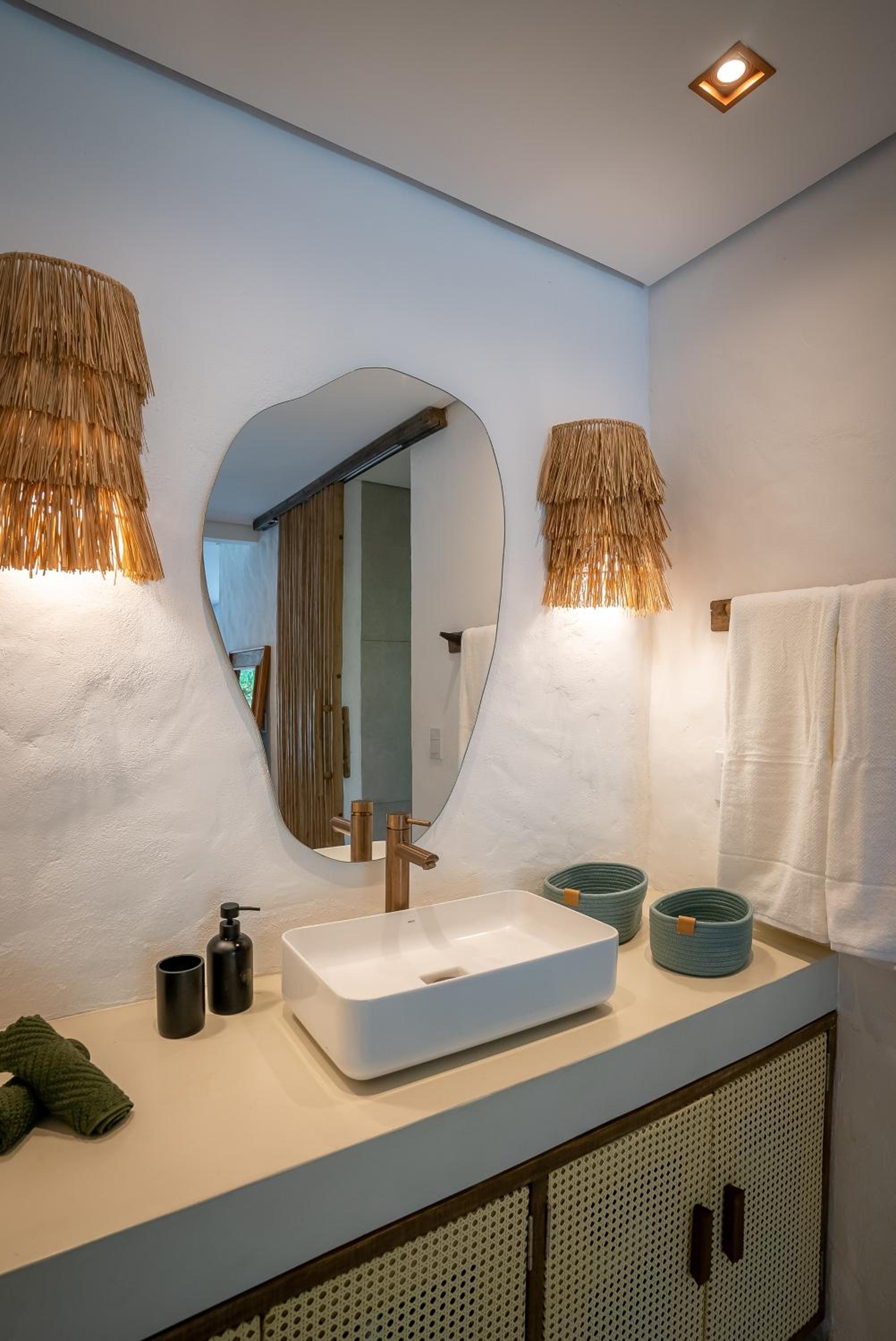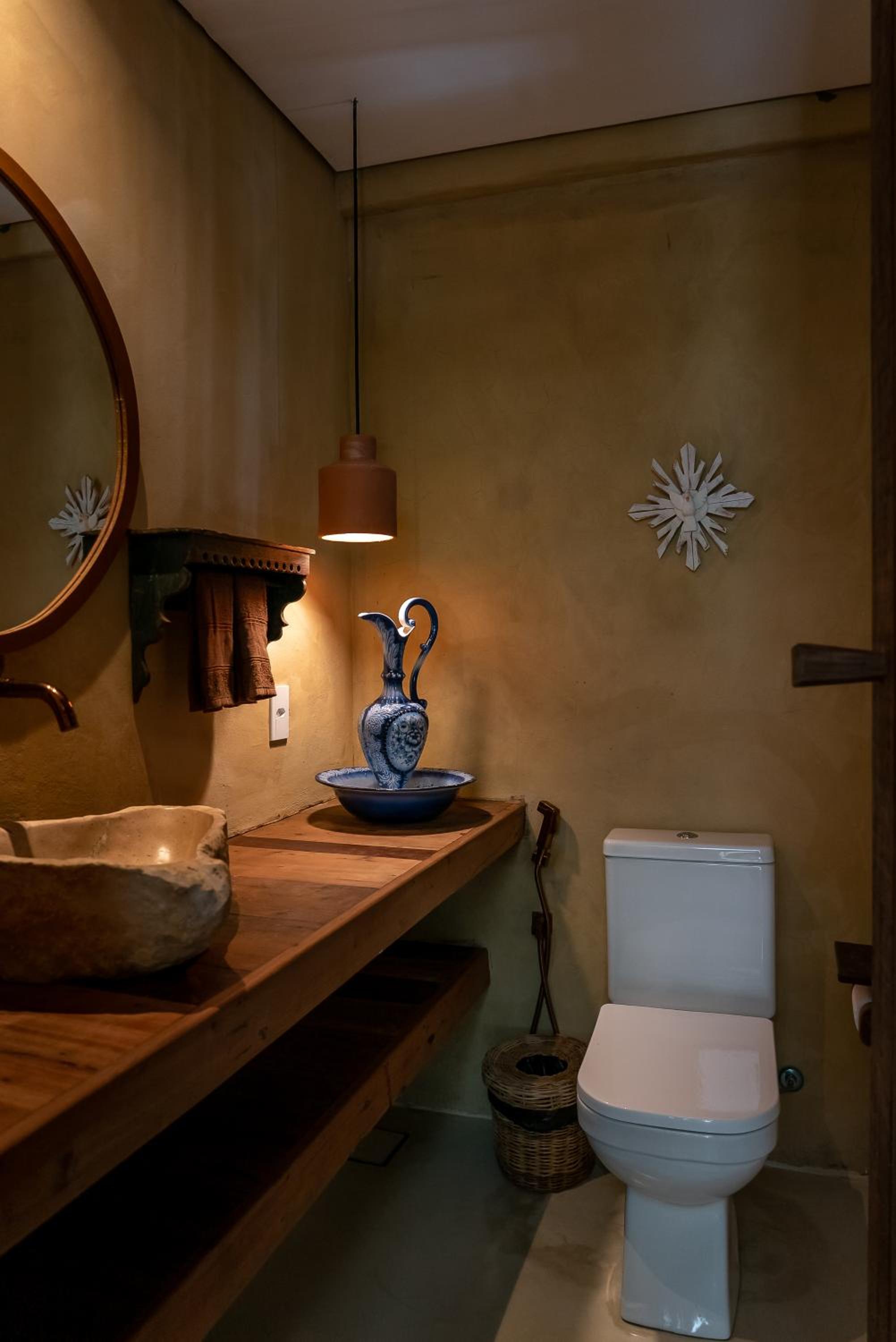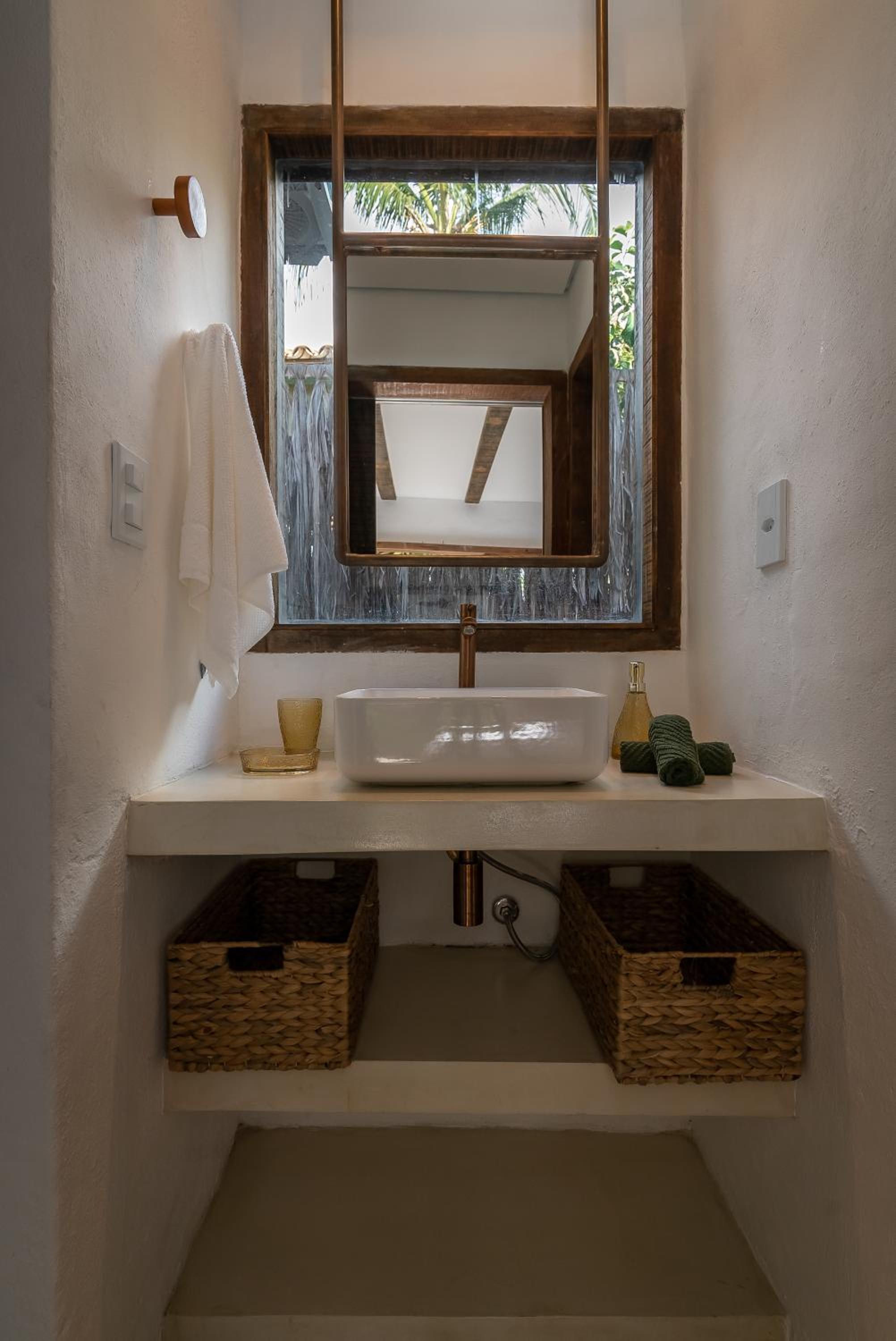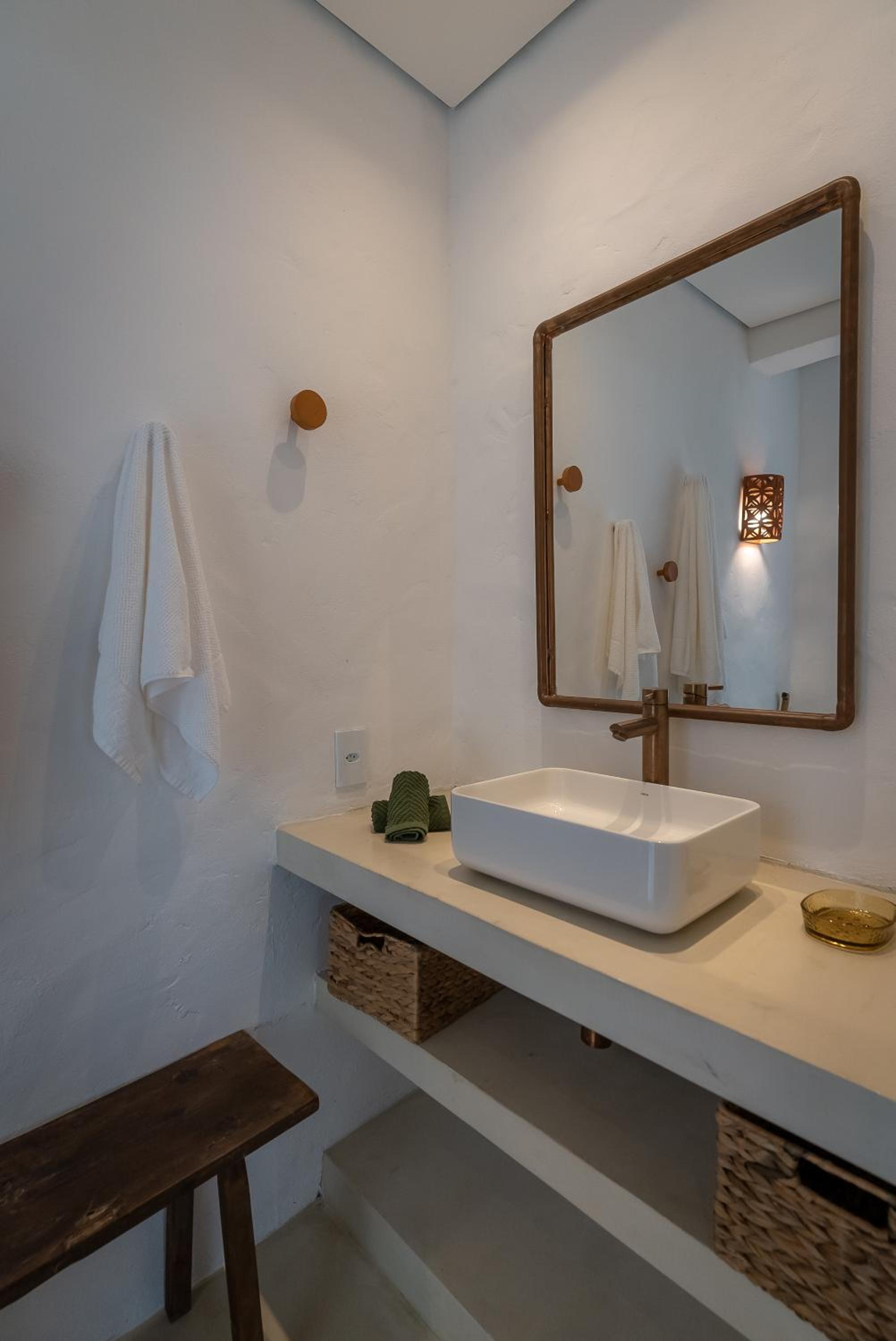 O quarto é um charme à parte. Tem aquele estilo rústico chique que é a cara de Caraíva, com madeira, decoração local de muito bom gosto e uma cama extremamente confortável. Simplesmente acolhedor.