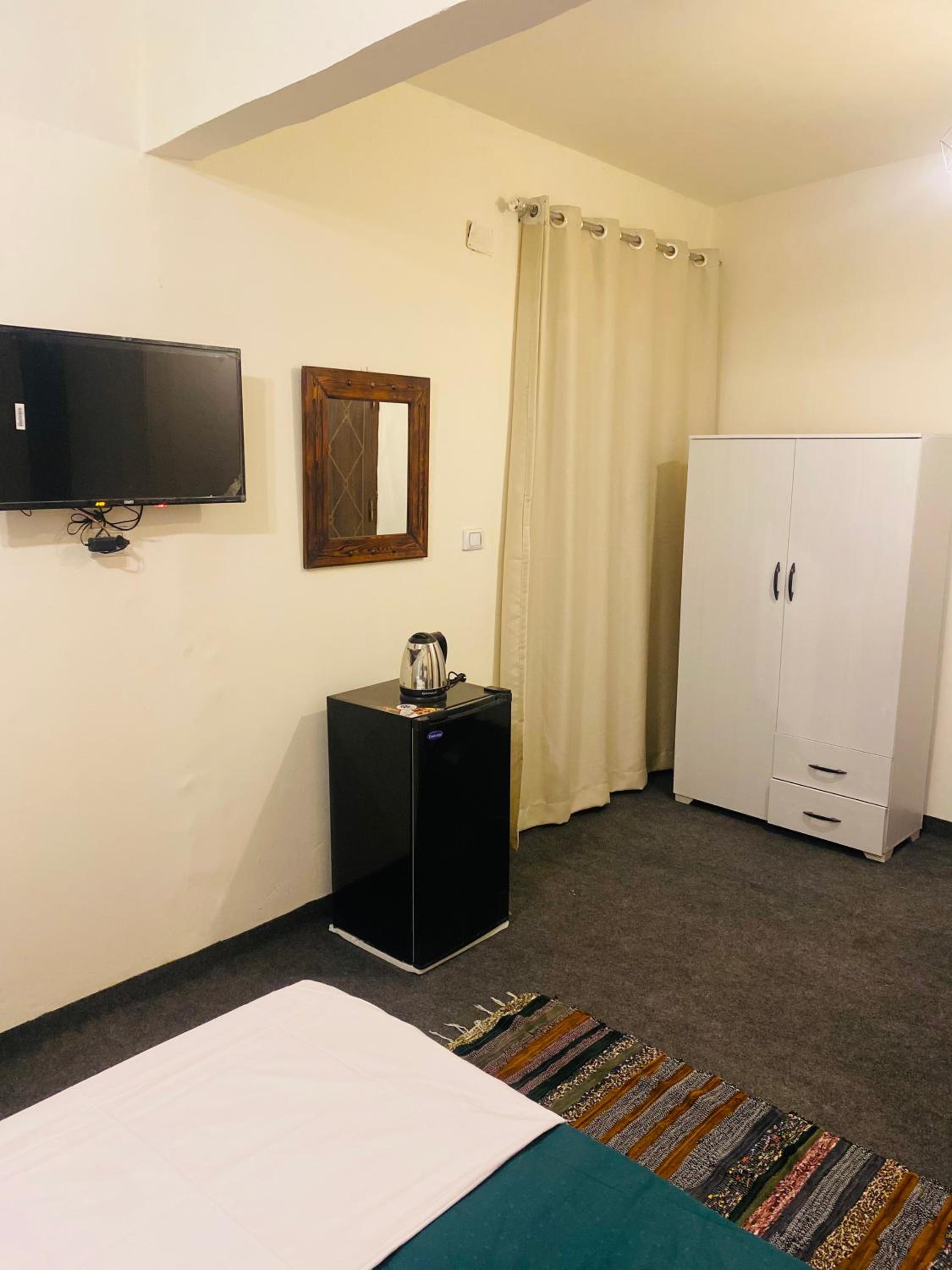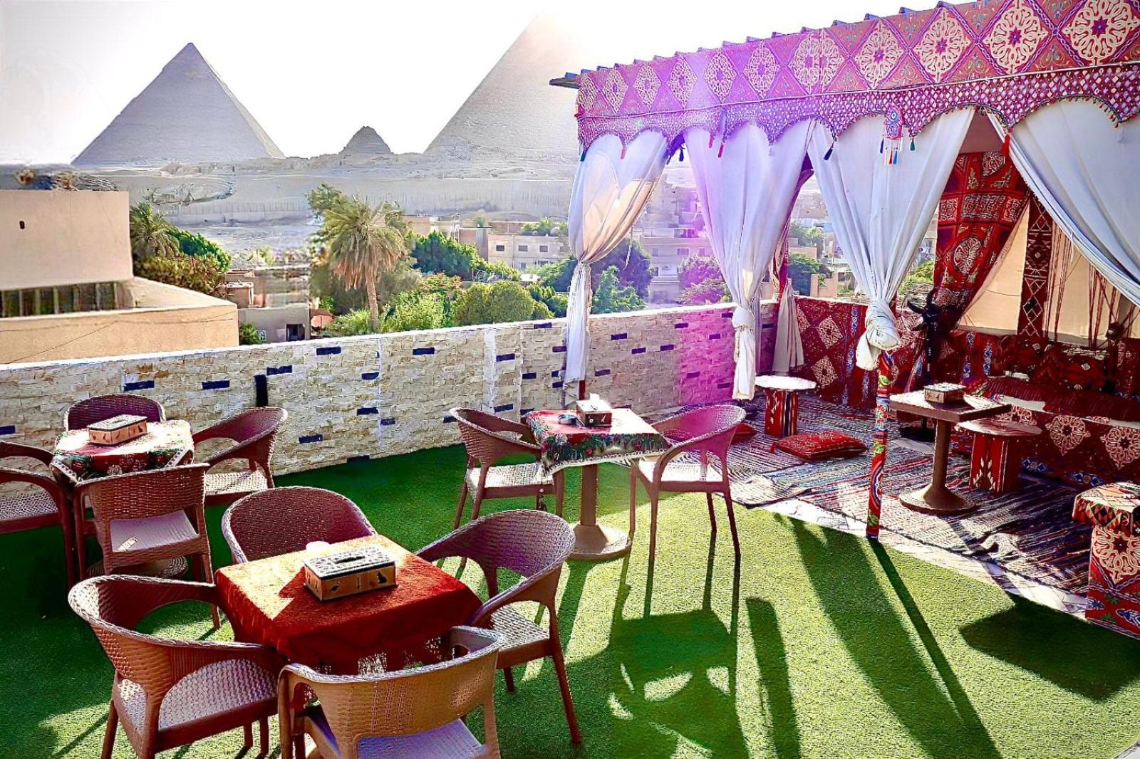 Friendly owner, tries to fulfill what visitors need, but the extra things are of poor quality. Very good location, we had a view to the pyramids from our room. Terrace on top with a good view to the pyramids as well. Good breakfast.