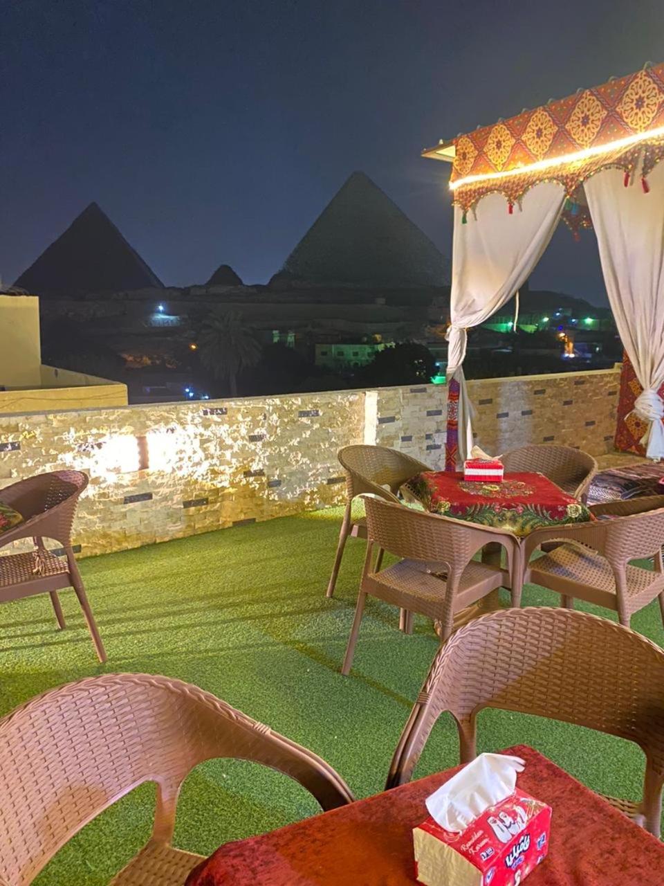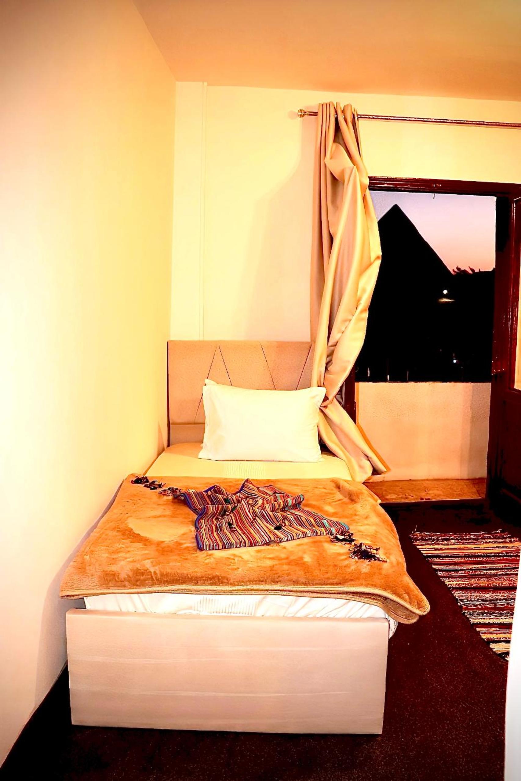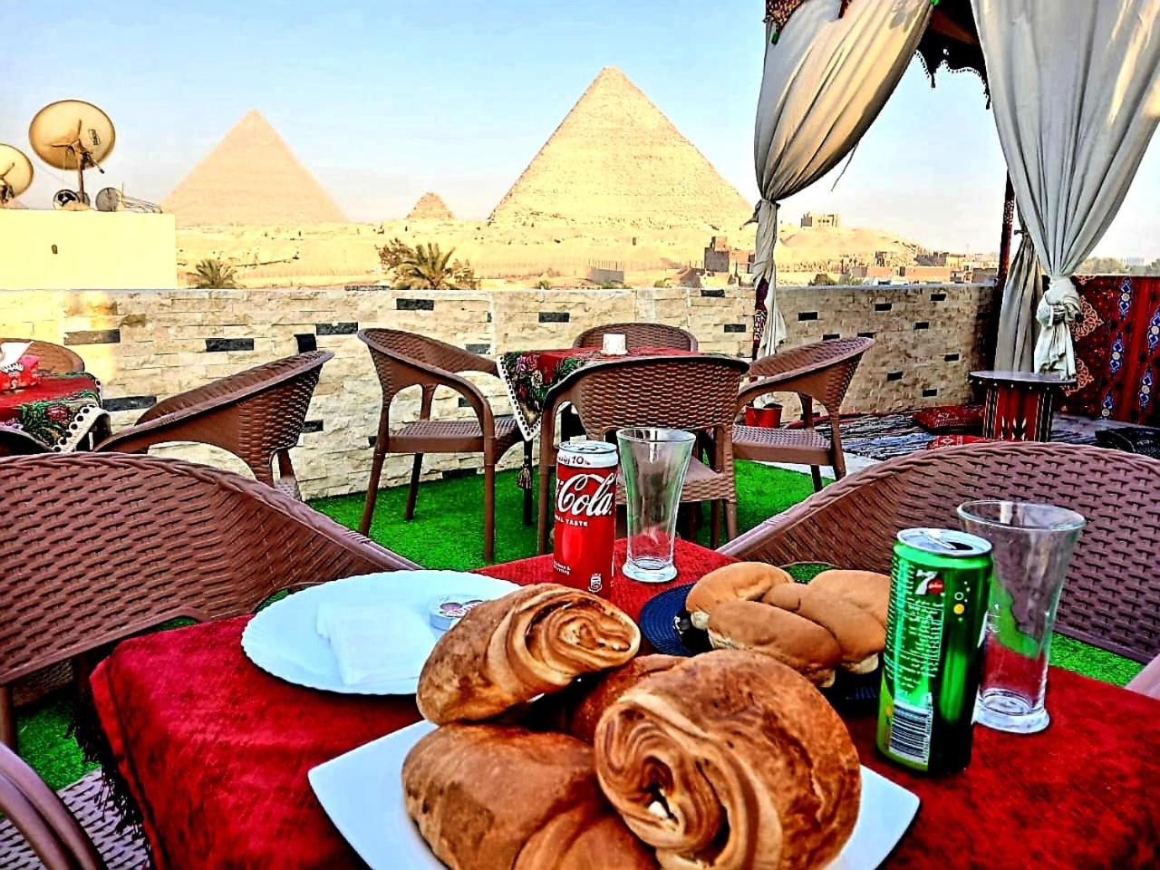 Great views at the terrace to the Pyramids even they are not at the front. Friendly workers. Good food served (although is from outside just round the corner). Breakfast included (food from just round the corner). Drinks included in the dinner. AC. Hot water. Towels, bottom sheet and blankets included. Fast Wi-fi. Food can be provided if you don't want to go round the corner.