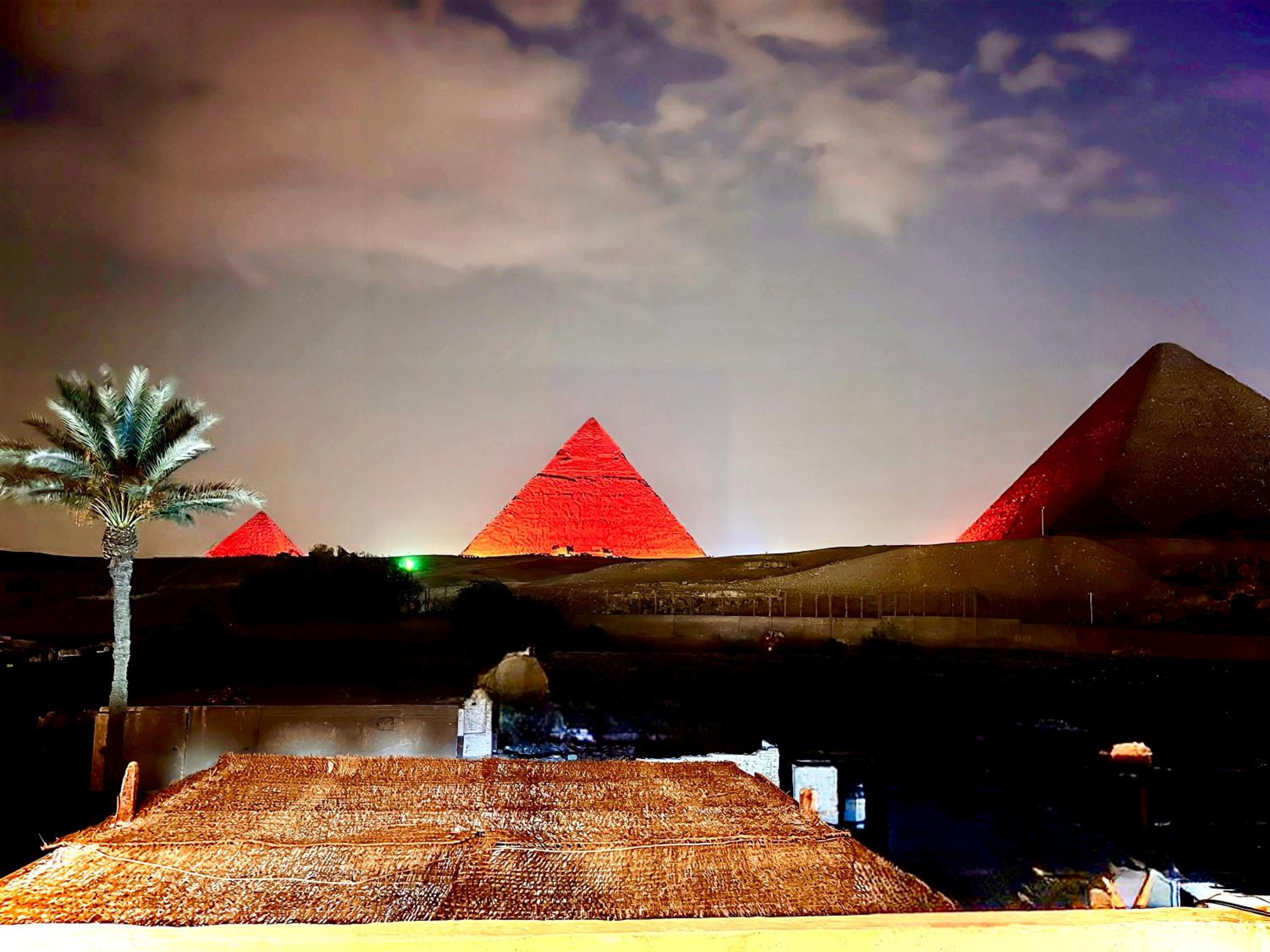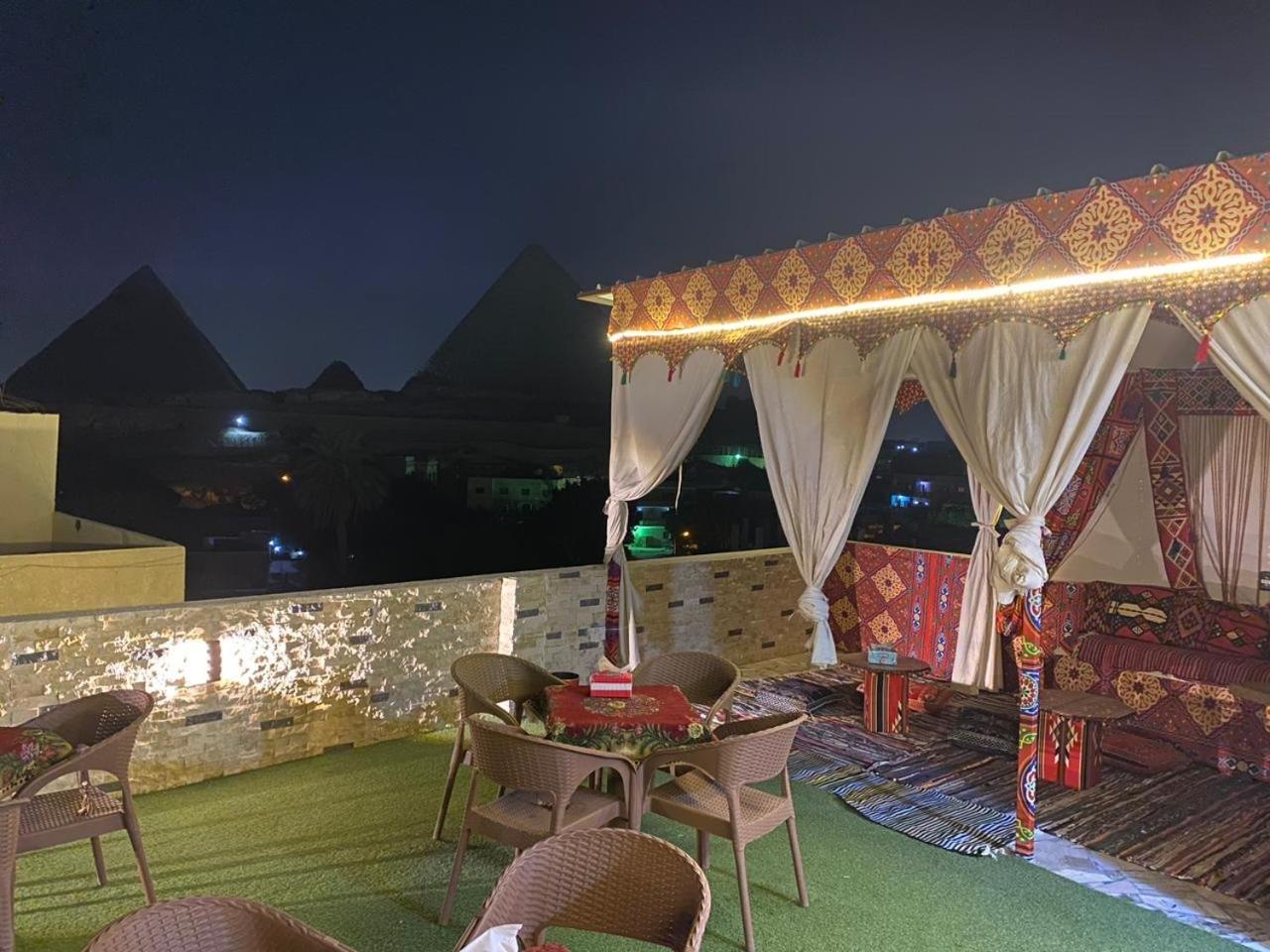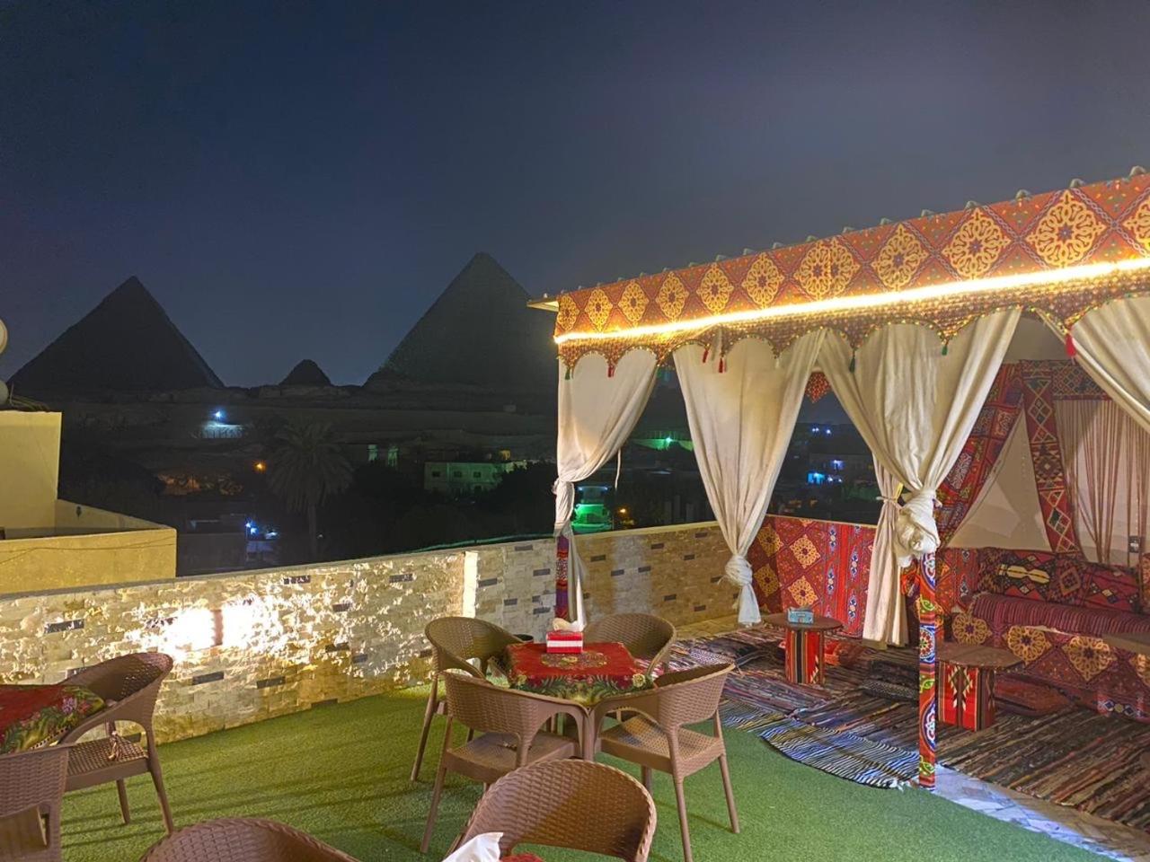 Great views at the terrace to the Pyramids even they are not at the front. Friendly workers. Good food served (although is from outside just round the corner). Breakfast included (food from just round the corner). Drinks included in the dinner. AC. Hot water. Towels, bottom sheet and blankets included. Fast Wi-fi. Food can be provided if you don't want to go round the corner.