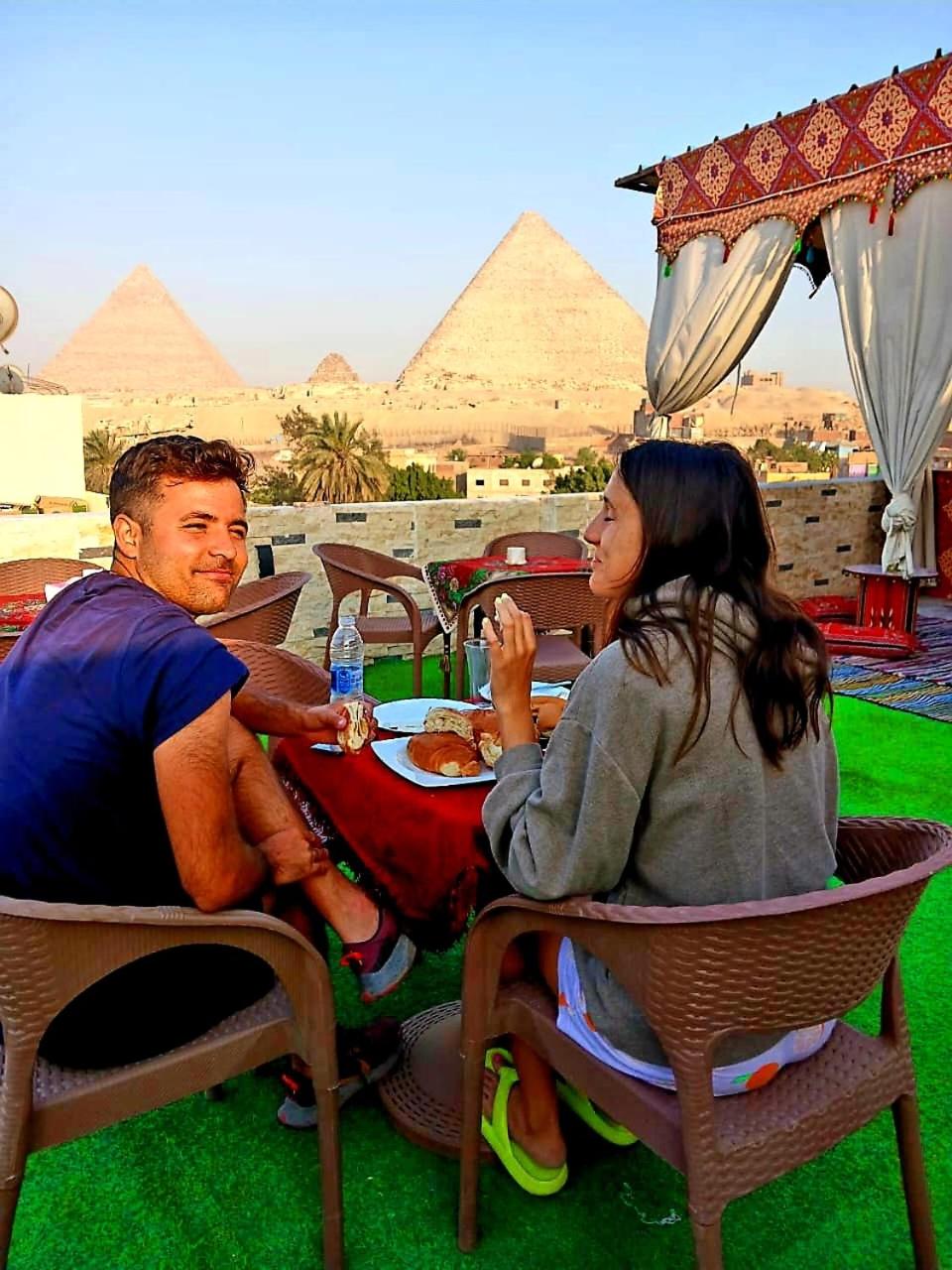 Our host Azizi was very accommodating and happy to help us get anything we needed. This place is definitely a gem in the Giza district, with a breathtaking view of the pyramids from the room as well as the decorated roof. The staff is super friendly and welcoming, I recommend this place with all my heart. On our next trip to Giza, we will definitely book again.