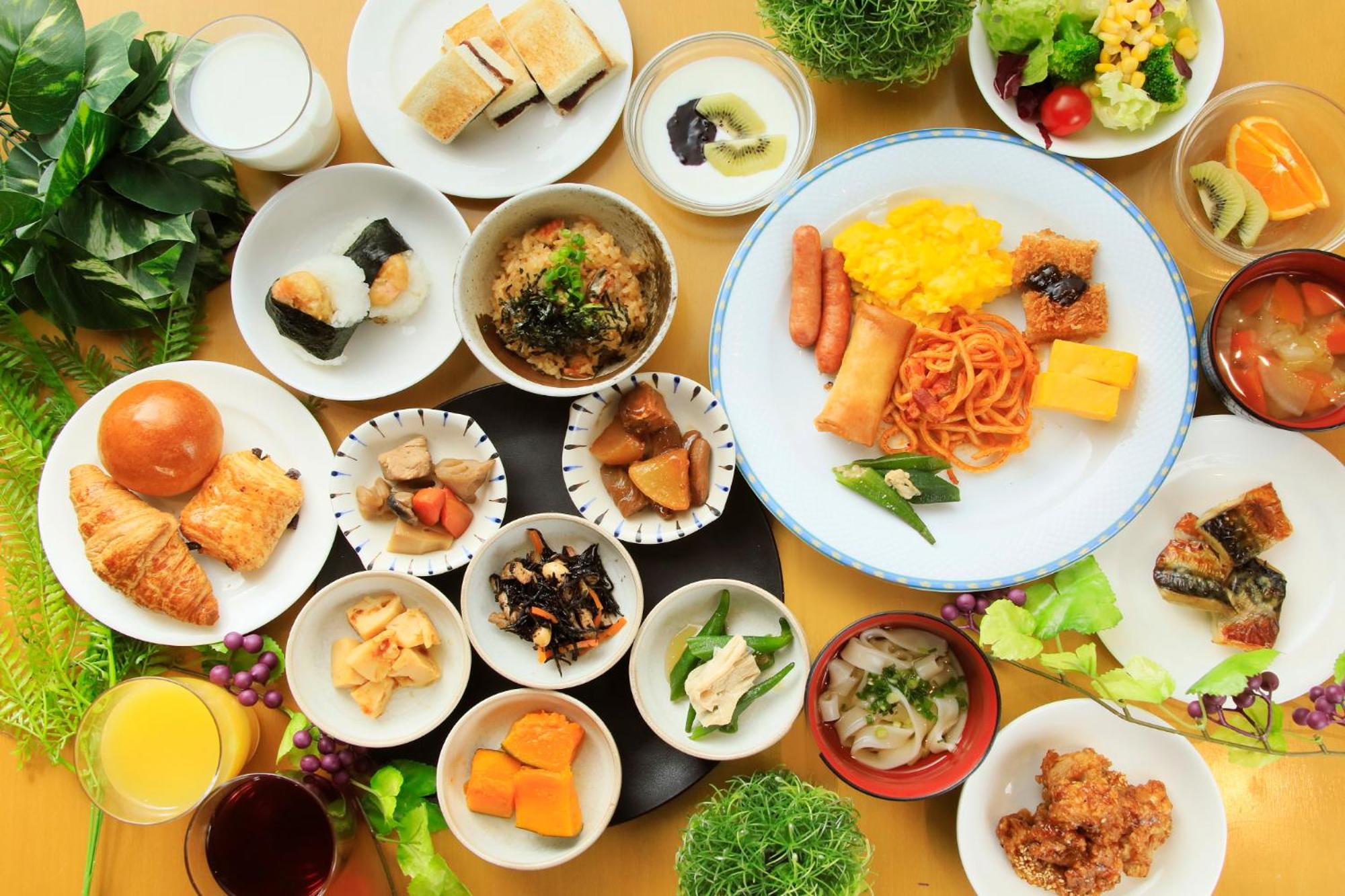 朝食のバイキング