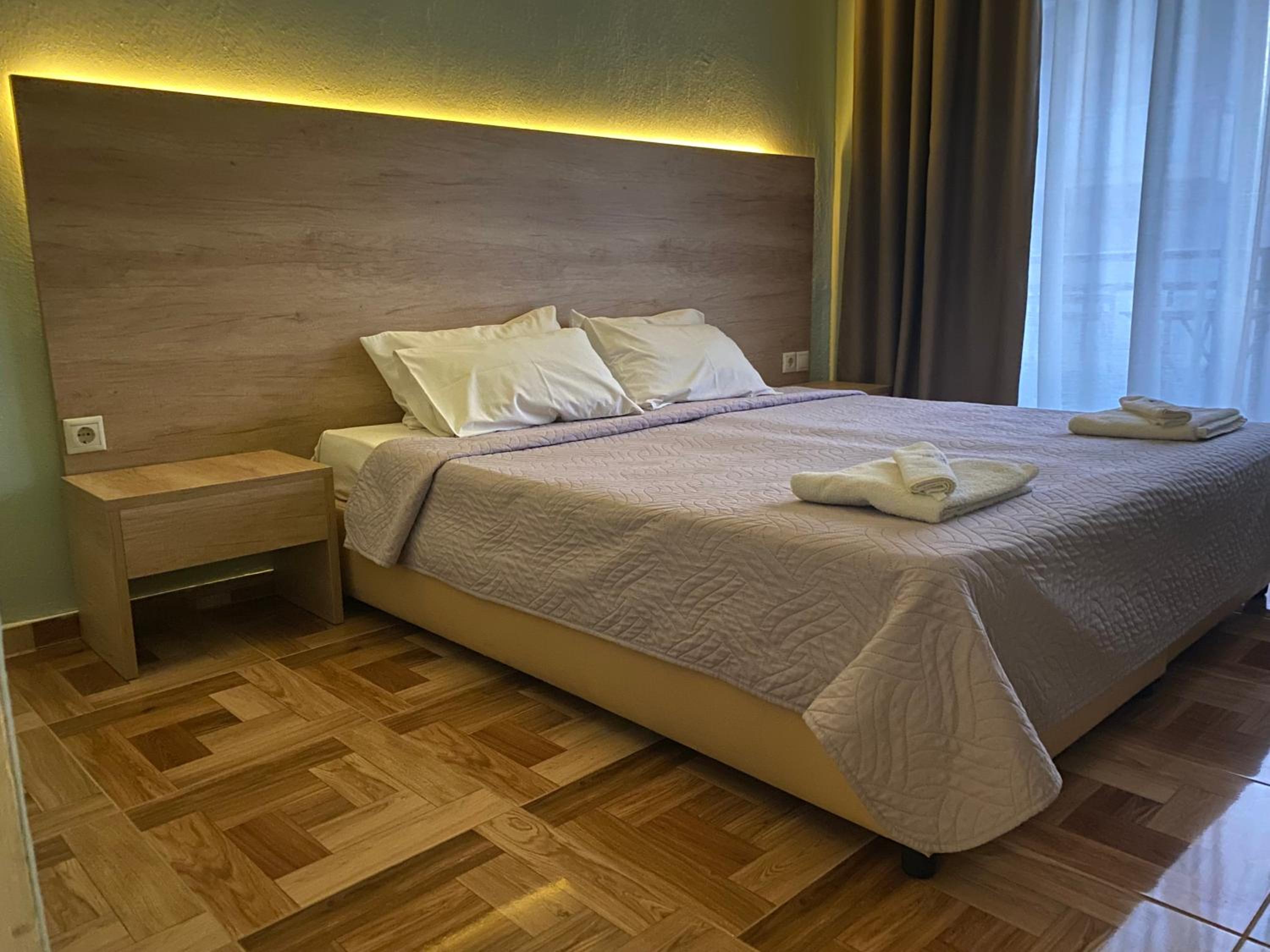 The rooms had everything you needed in them, were spacious and clean. The location is very central to Moudania and there is street car parking right outside. The standout feature is the hotel manager!!! He is so friendly and accommodating, making you feel like a guest in his home. The breakfast he cooked for us was amazing too.