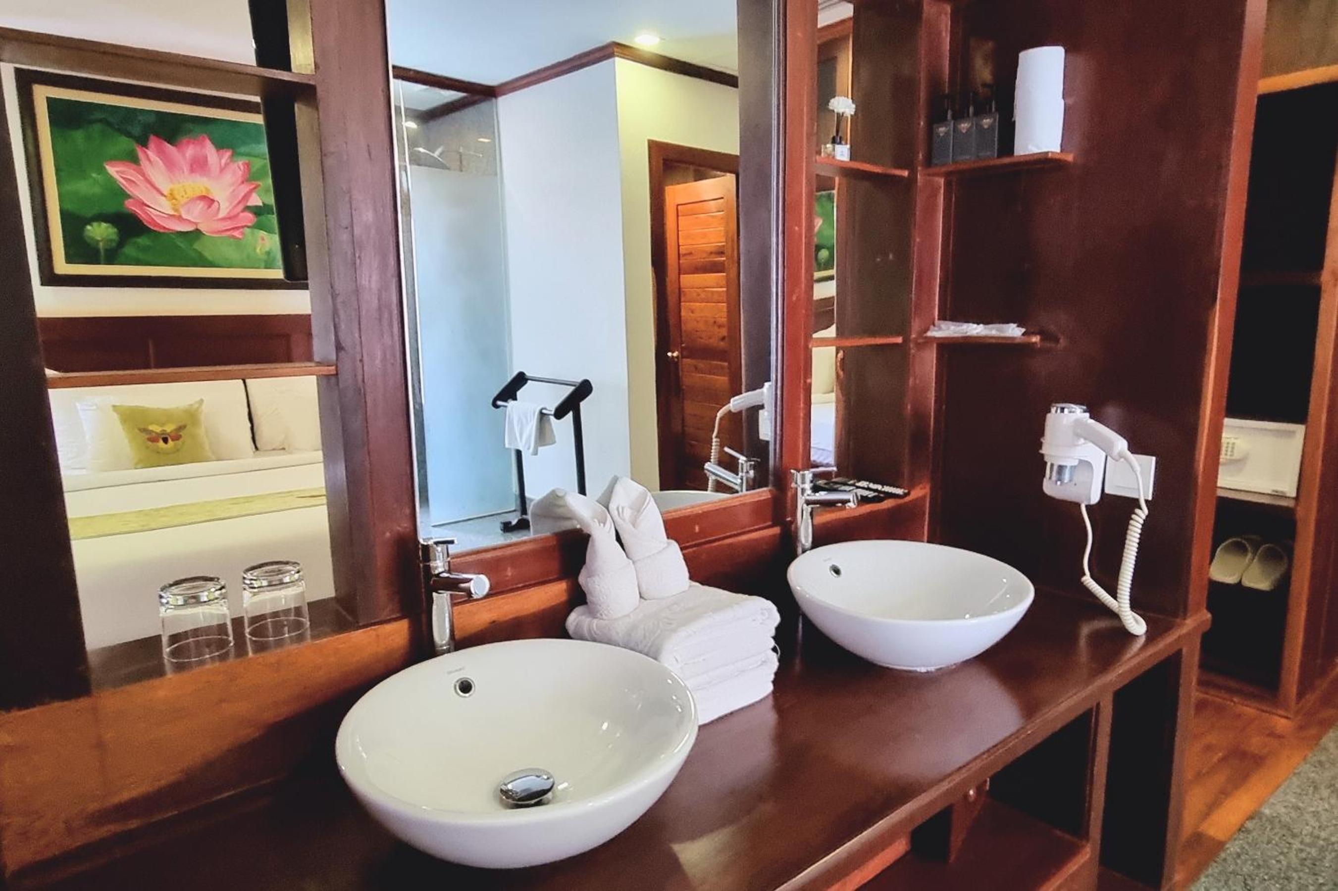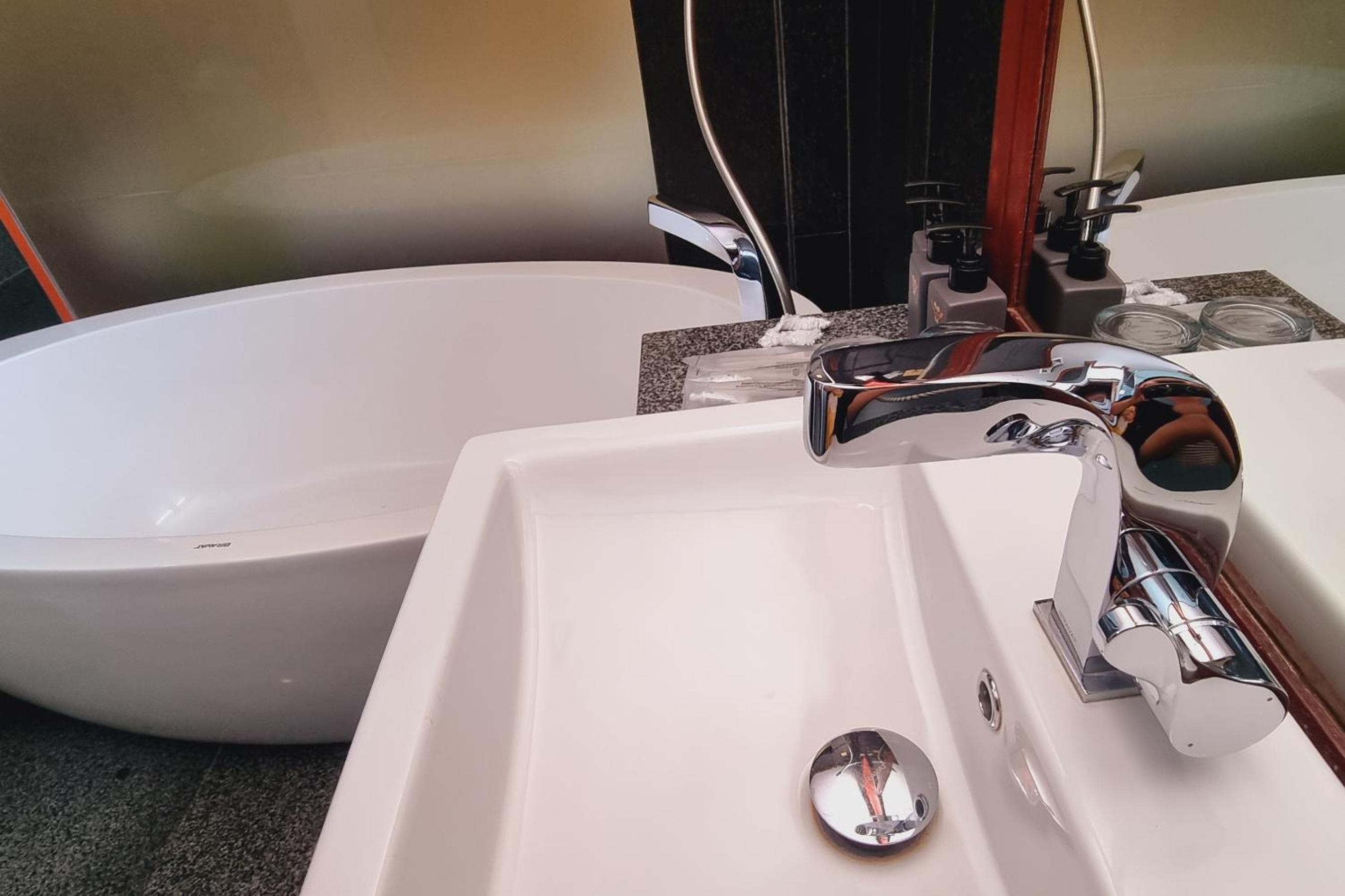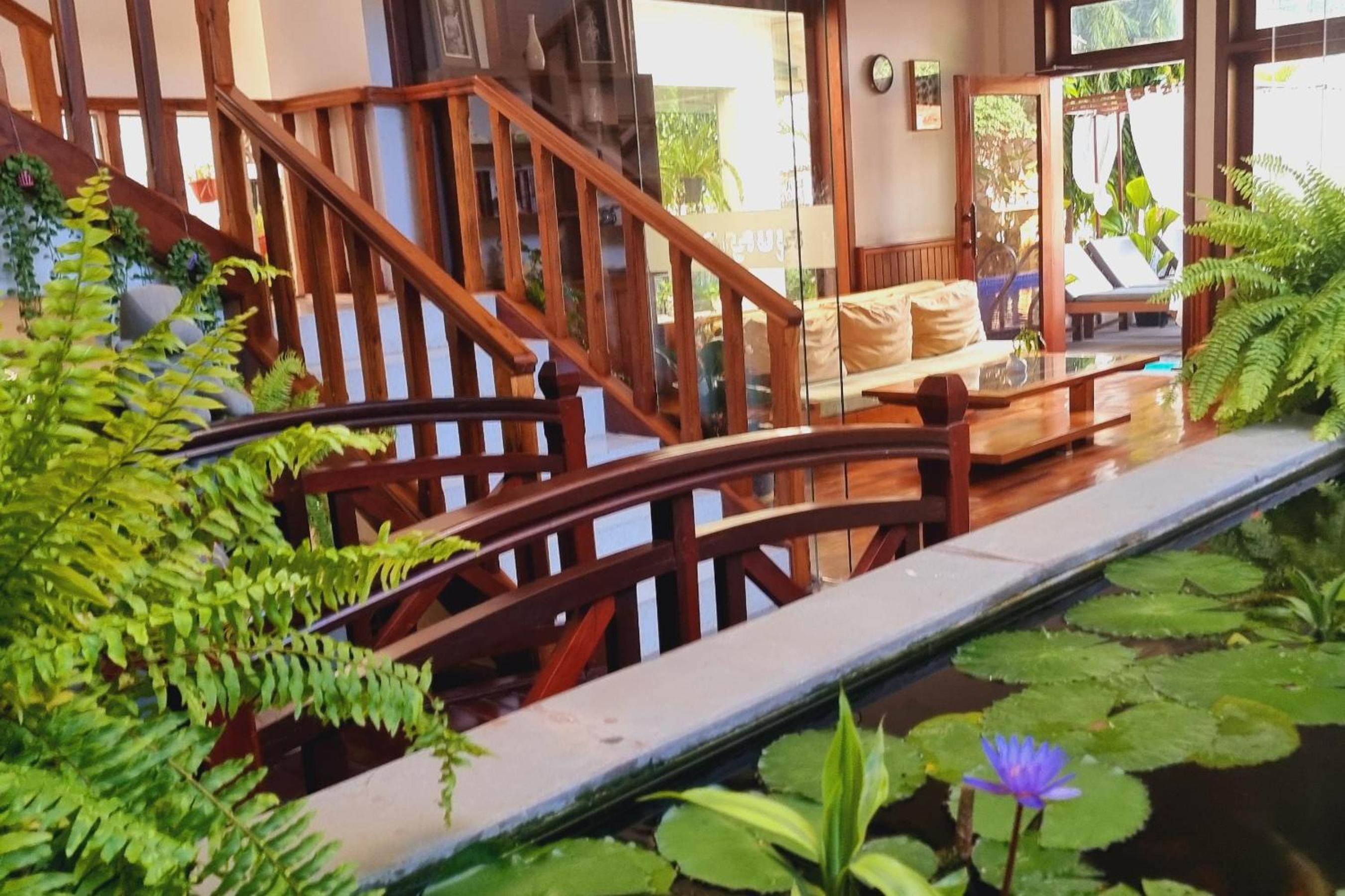 L'endroit est proche du centre mais pas trop, cela rend tout accessible à pied ou en tuk tuk et permet d'éviter le bruit et la grosse agitation. Le lieu est agréable, accueillant, la piscine rafraîchissante. Notre chambre nous a beaucoup plu avec ses boiseries, literie confortable, douche et WC séparé du reste, giga baignoire (que nous n'avons pas souhaité tenter de remplir), 2 lavabos, petit frigo fort pratique.