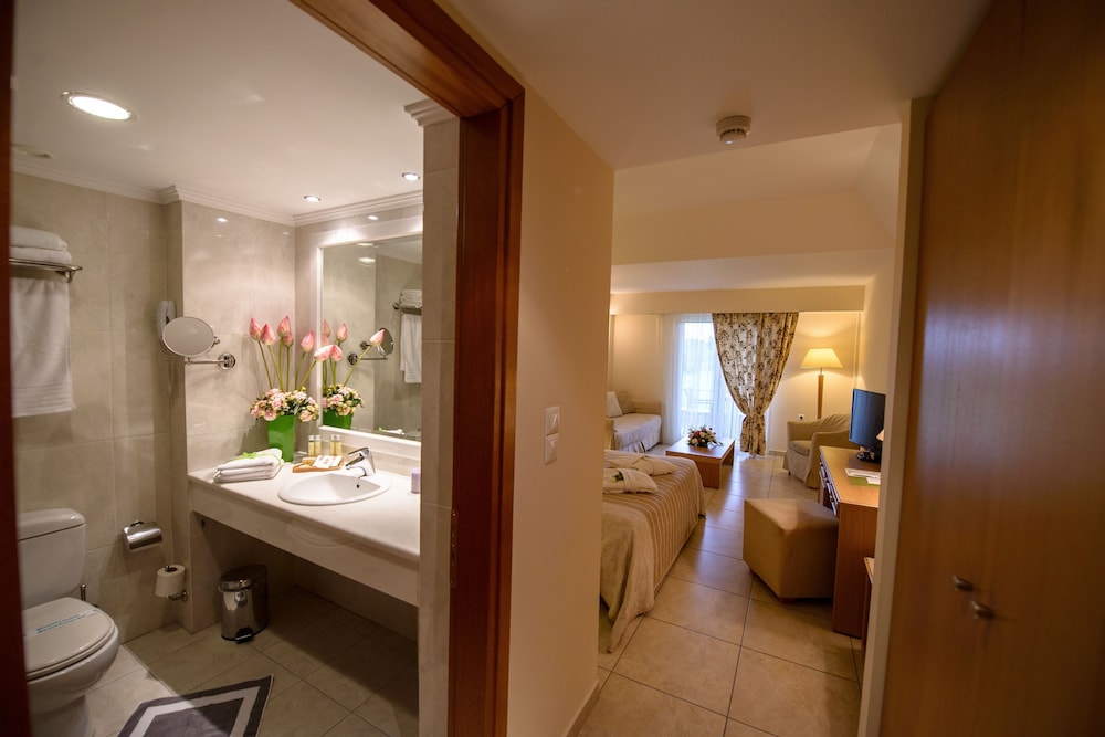 Our room for a family of 4 was quite spacious with nice views of olive trees and wonderful sunsets! According to 1/2 the family, the pool was quite refreshing! Breakfast was very good with lots of hot and cold options! Pretty close to the archeological site of Olympia.