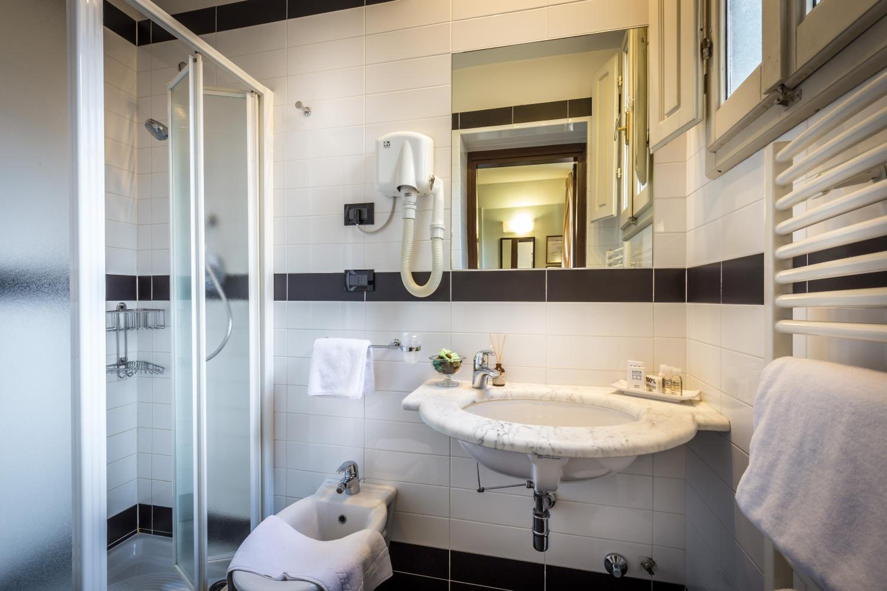 I stayed in a single room, very small on USA standards but it was absolutely perfect! Right across the street from the Duomo, perfect location for accessing all the sights. Staff was extremely helpful and polite, breakfast was very lovely and the cappucino was so yummy with the most amazing view of the Duomo! Highly recommend this hotel when visiting Florence!