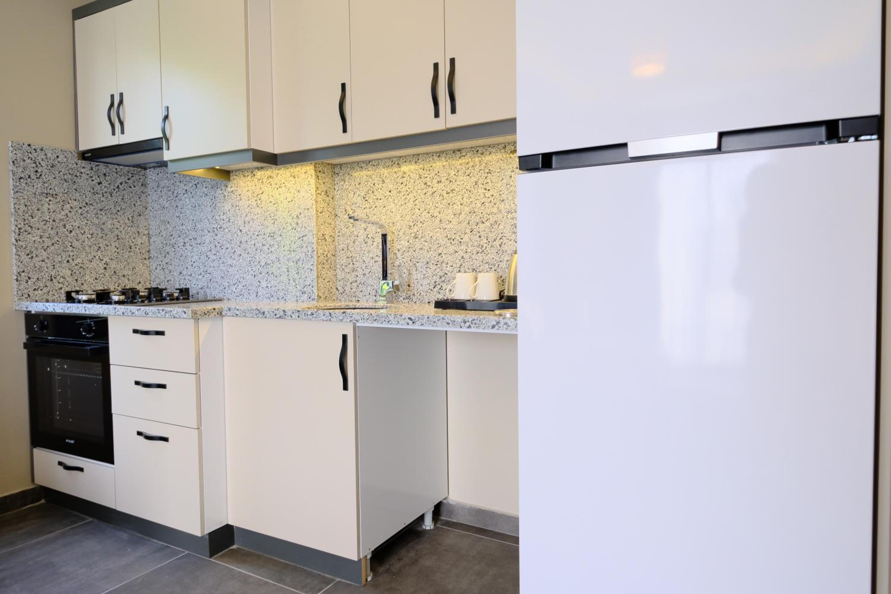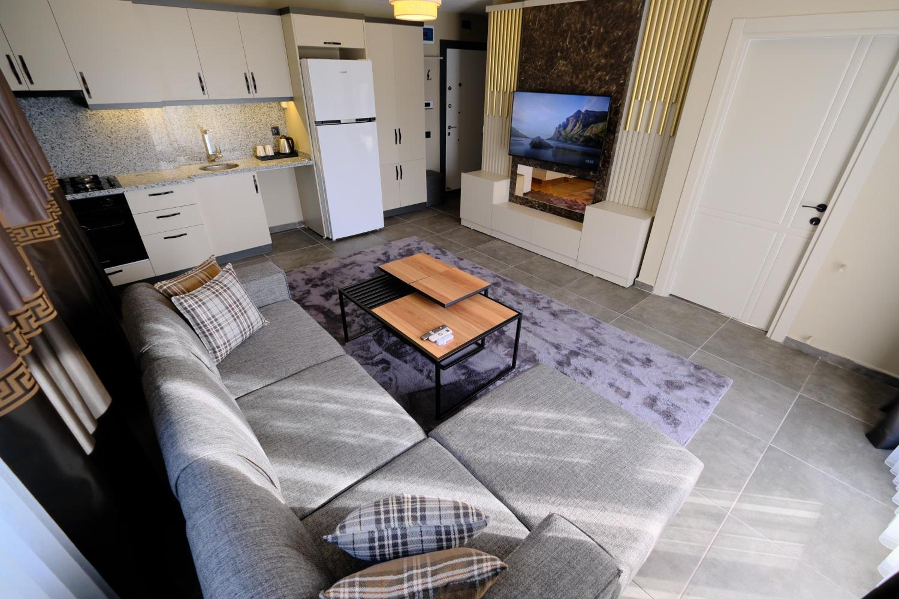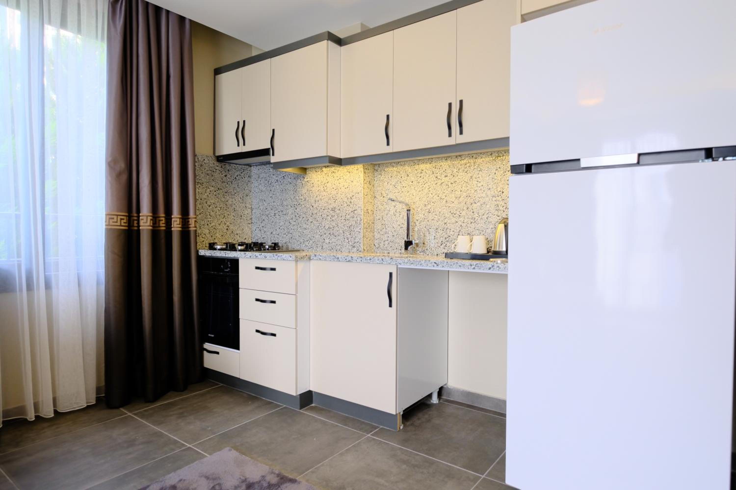 Modern Amenities: LİMONOTTO SUİT OTEL offers air-conditioned apartments with a patio, balcony, and free WiFi. The soundproof rooms feature a flat-screen TV, equipped kitchen, and garden views for a comfortable stay.