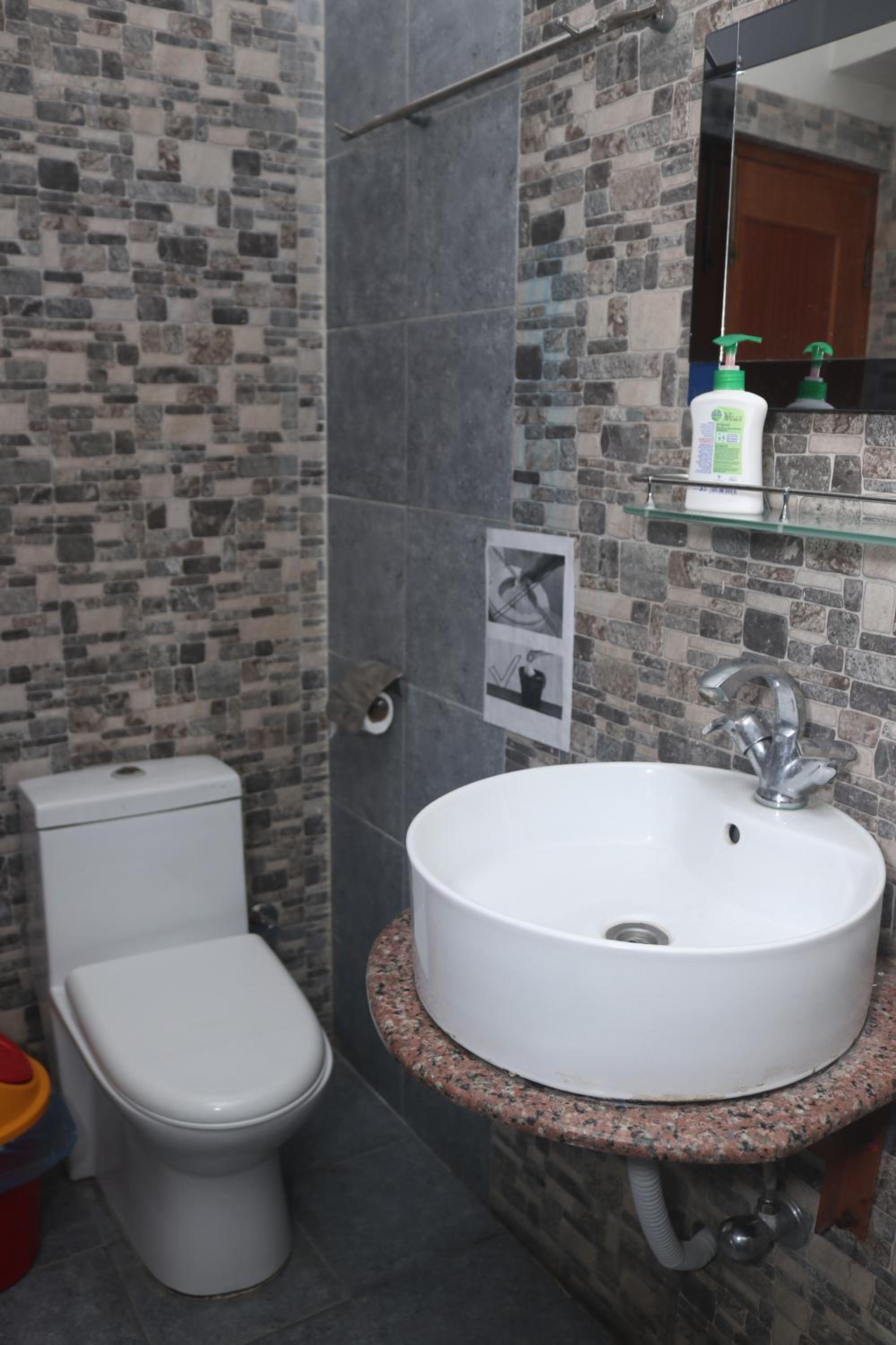 The bathroom is not super clean but there is hot water.