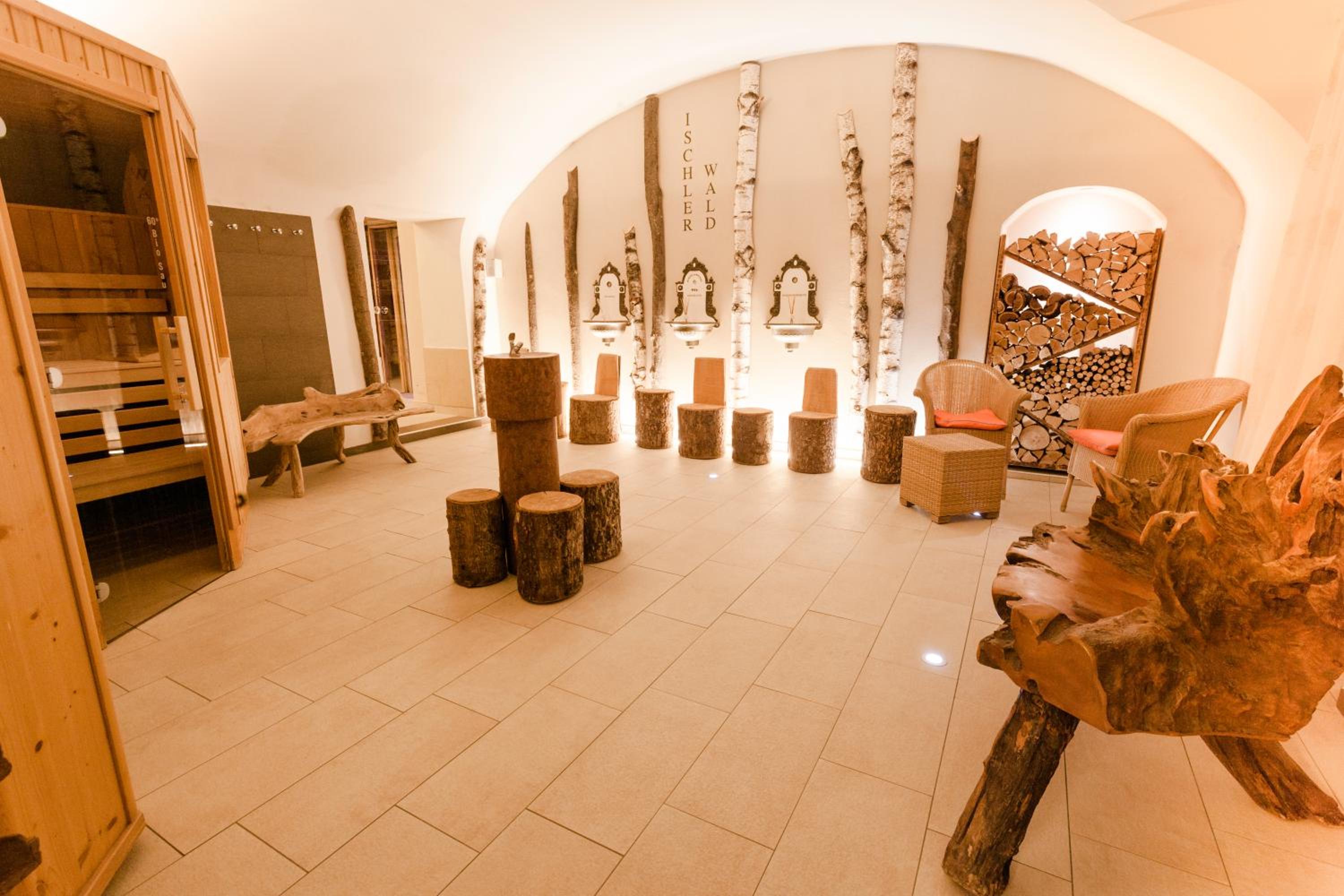 Indulge in relaxation at the hotel's spa area, flooded with light and offering classic and Ayurveda massages, Kneipp baths, saunas, a fitness studio, and unique features like Austria’s only salt graduator. Unwind in the relaxation room with stunning mountain views.