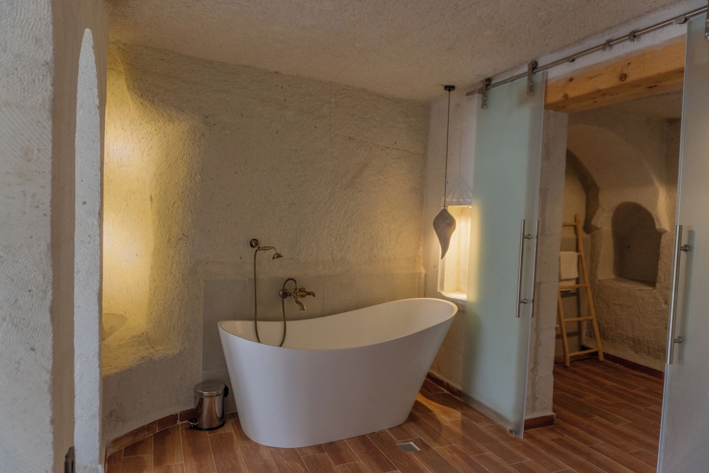 Giriş yapmadan önce giriş saatiniz için teyit alınmakta. Karşılama oldukça zarif. Odam temiz ve konforluydu. Bölgede bir çok otelde konakladım. Misafirperverlik ve otantikliğin birleştiği bölgede son zamanlarda çok şık otellerde kalmama rağmen eski enerji kalmadığını düşünüyordum. Göreme den oldukça soğumuştum çünkü fazla ışık , fazla para kazanma arzusu bazı olguların önüne geçmişti. Bu yüzden ortahisar ı tercih ettim. İyi ki de etmişim. Otel tamamen bağımsız diyebilirim. Odadan çıktığınızda yalnızca otele özel peri bacaları alanı mevcut. Vadiye bakan bir bölge olduğu için başka otellerden bapımsız olarak size özel bir vadi vaad ediyor. Odamdaki küvet oldukça temizdi. Bazen bu kadar temiz bulamıyor olabiliyorsunuz. Burada bu sorun ile karşılaşmadım. Yeterli bir kahvaltı servisi mevcut.