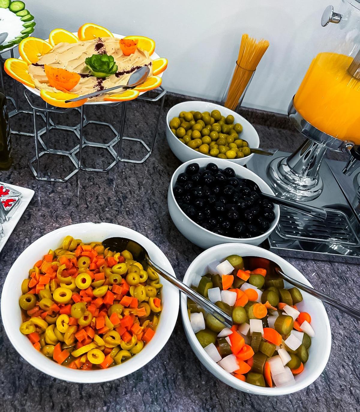 Le petit déjeuner nous a franchement déçus - peu de produits frais et beaucoup d'articles sous emballage, d'une qualité très médiocre au regard du prix de la nuitée (le prix le plus élevé de notre séjour en Jordanie) : c'est Petra, certes, mais tout de même...