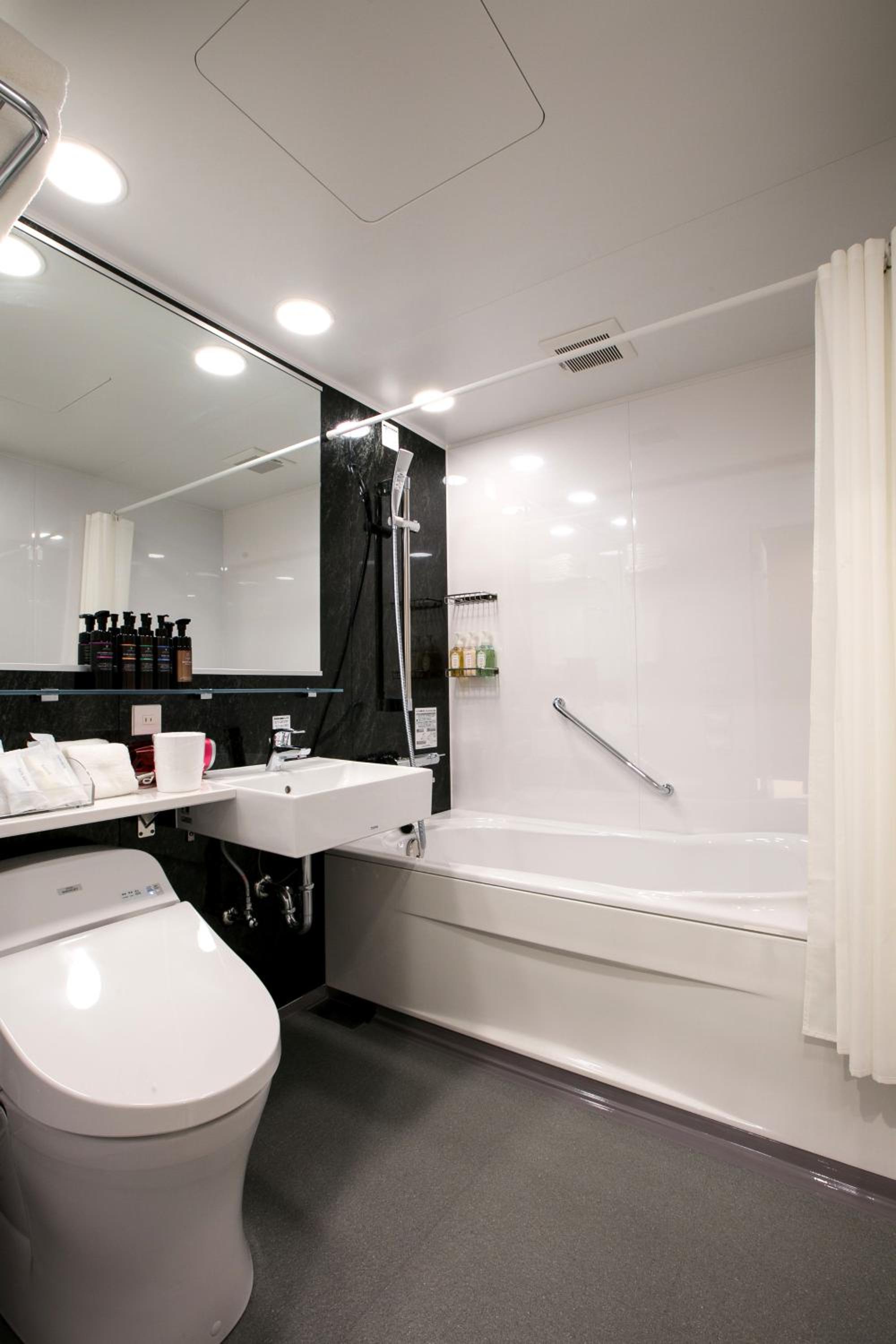 This hotel is larger than most of the hotels we stayed for the price. It was a triple room (we only needed a double for me and my son, but this was available.) Spotless. Big bath with all the amenities you would need. Microwave and hot water kettle. Teabags and drip coffee bags were provided. We brought food for breakfast and used the microwave. Table for eating and western style chairs. We walked easily to many sightseeing spots.