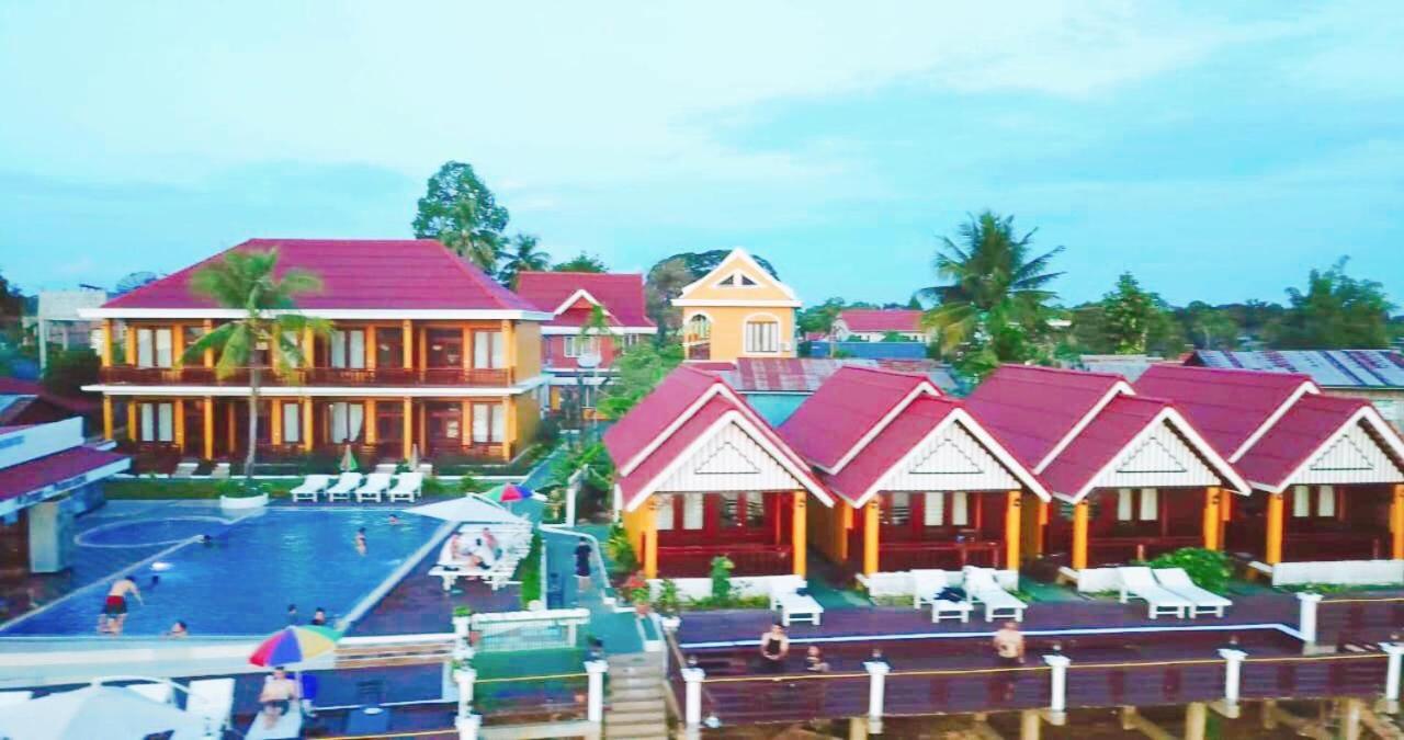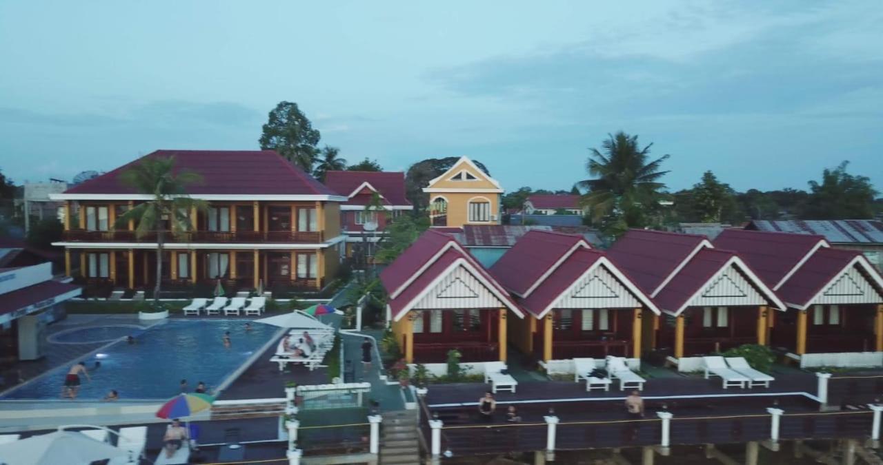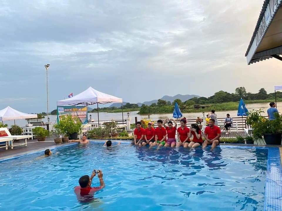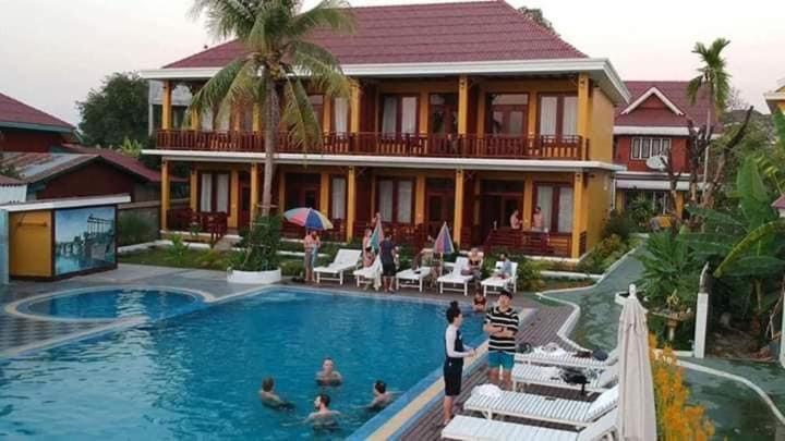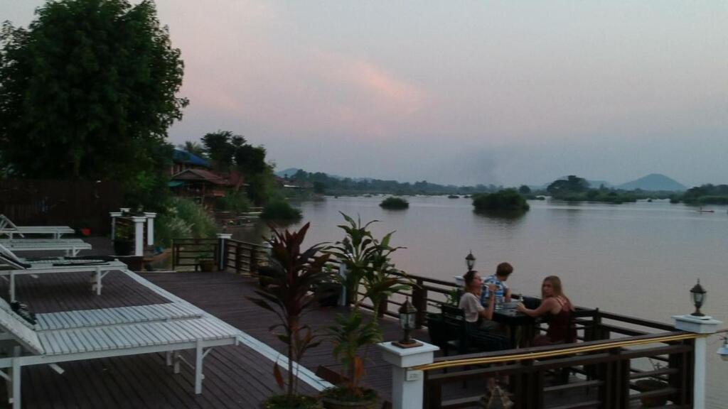 Piscine très propre. Logement bien placé. Endroit au bord du mekong tres calme coté coucher du soleil. Petit dejeuner copieux. Il ne faut pas s arrêter sur les finitions, on est au laos et sur une ile. Javais peur en lisant les notes a trouver un hotel delabré mais ce n est pas le cas du tout
