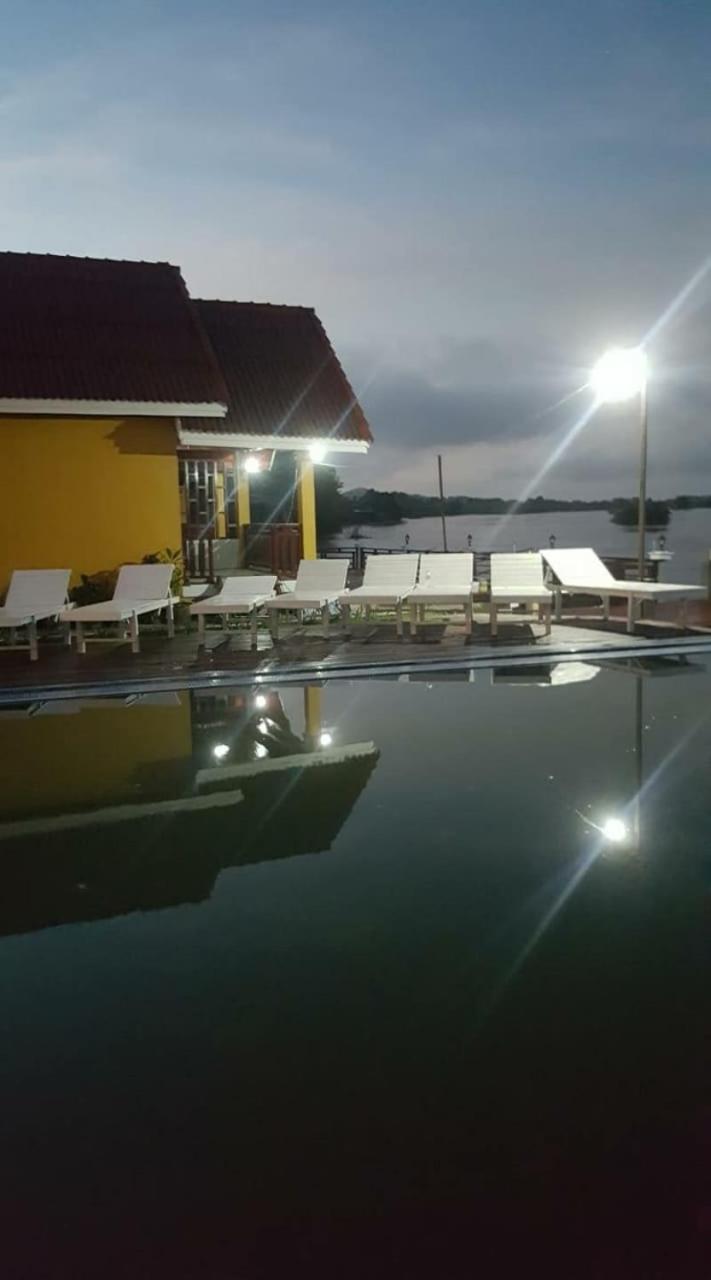Der Pool war sauber, groß und man konnte von dort den Mekong sehen. Der Terrassenblick der Bungalows auf den Sunset war toll.