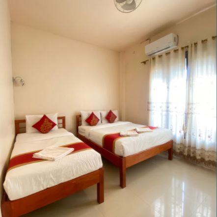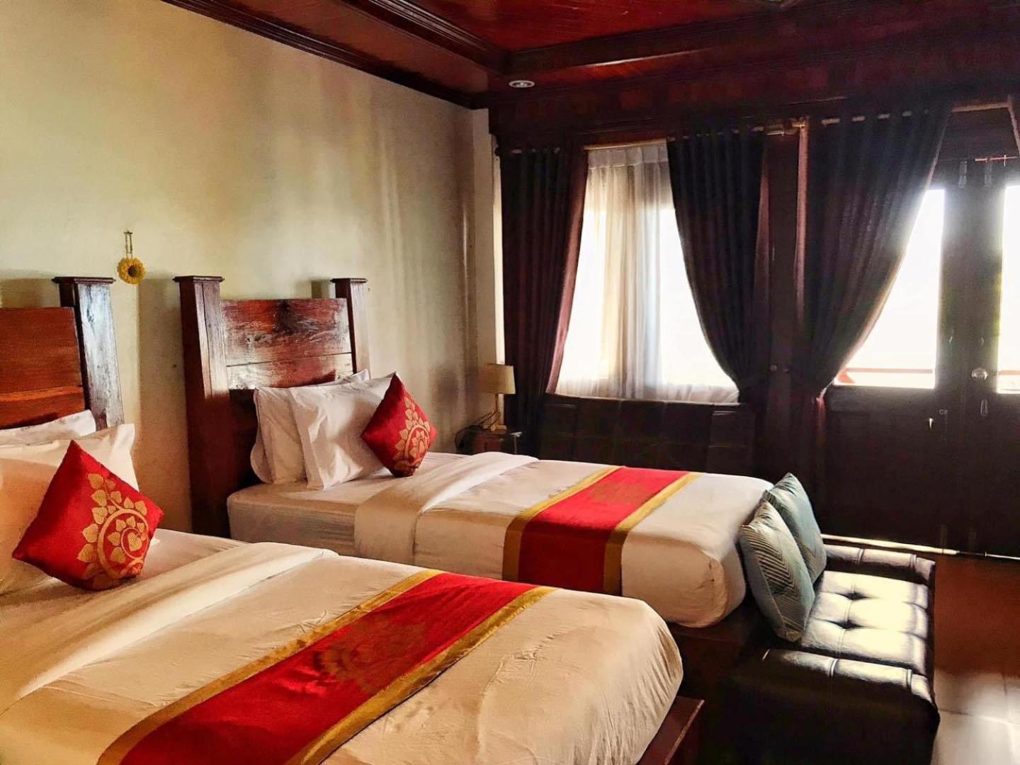 First included in room breakfast what was actually eatable. All other hotels had awful breakfast. Clean. Comfortable beds. Big rooms with balcony. Reception is actually friendly but can’t speak English. Quiet. Can pay with card (+3%) or KIP at exchange 21500!!!! Normally it’s 22000 or places rip you off with 23000