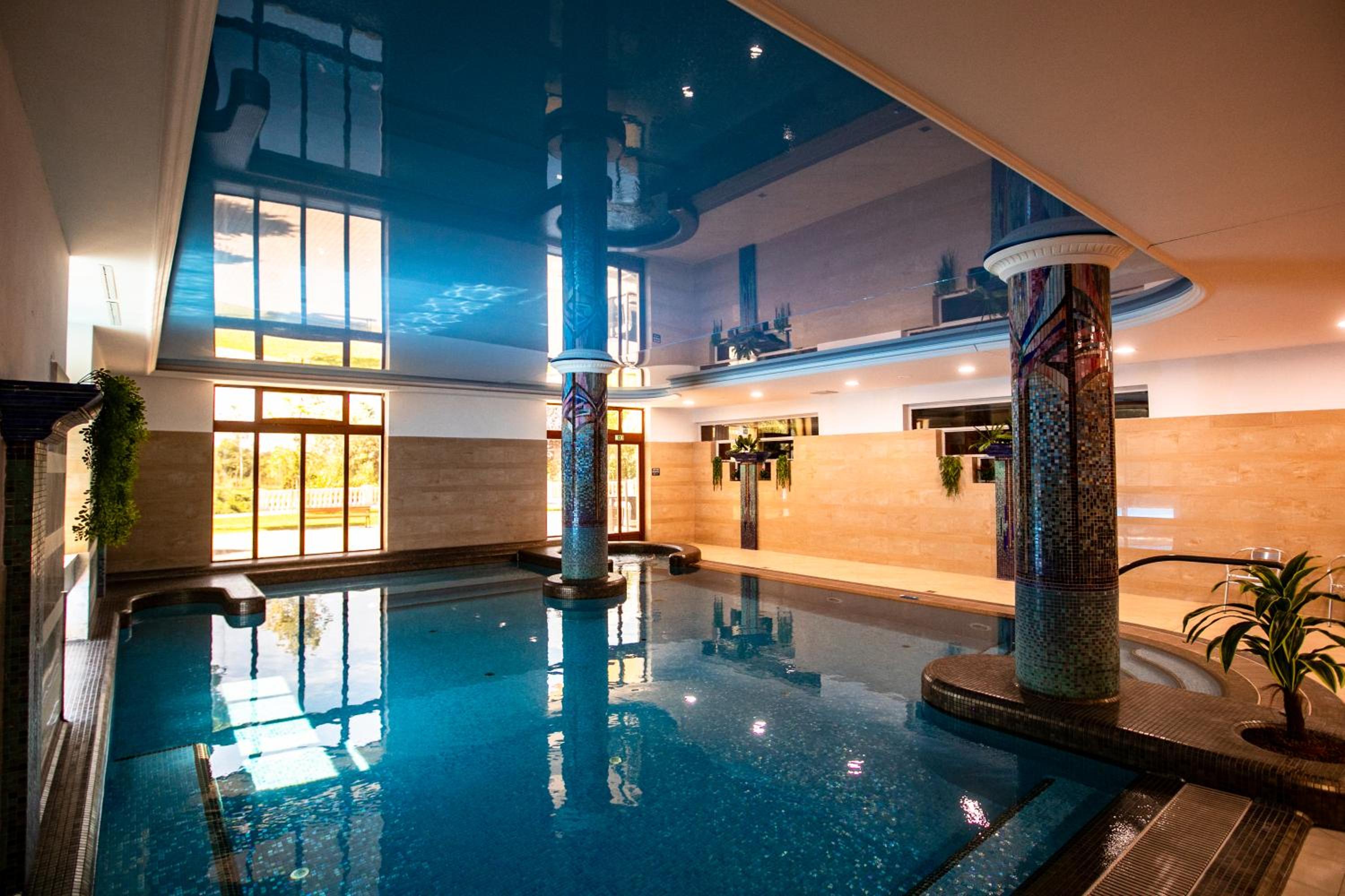 Indulge in the spa and wellness center with indoor pool, sauna, and hot tub.