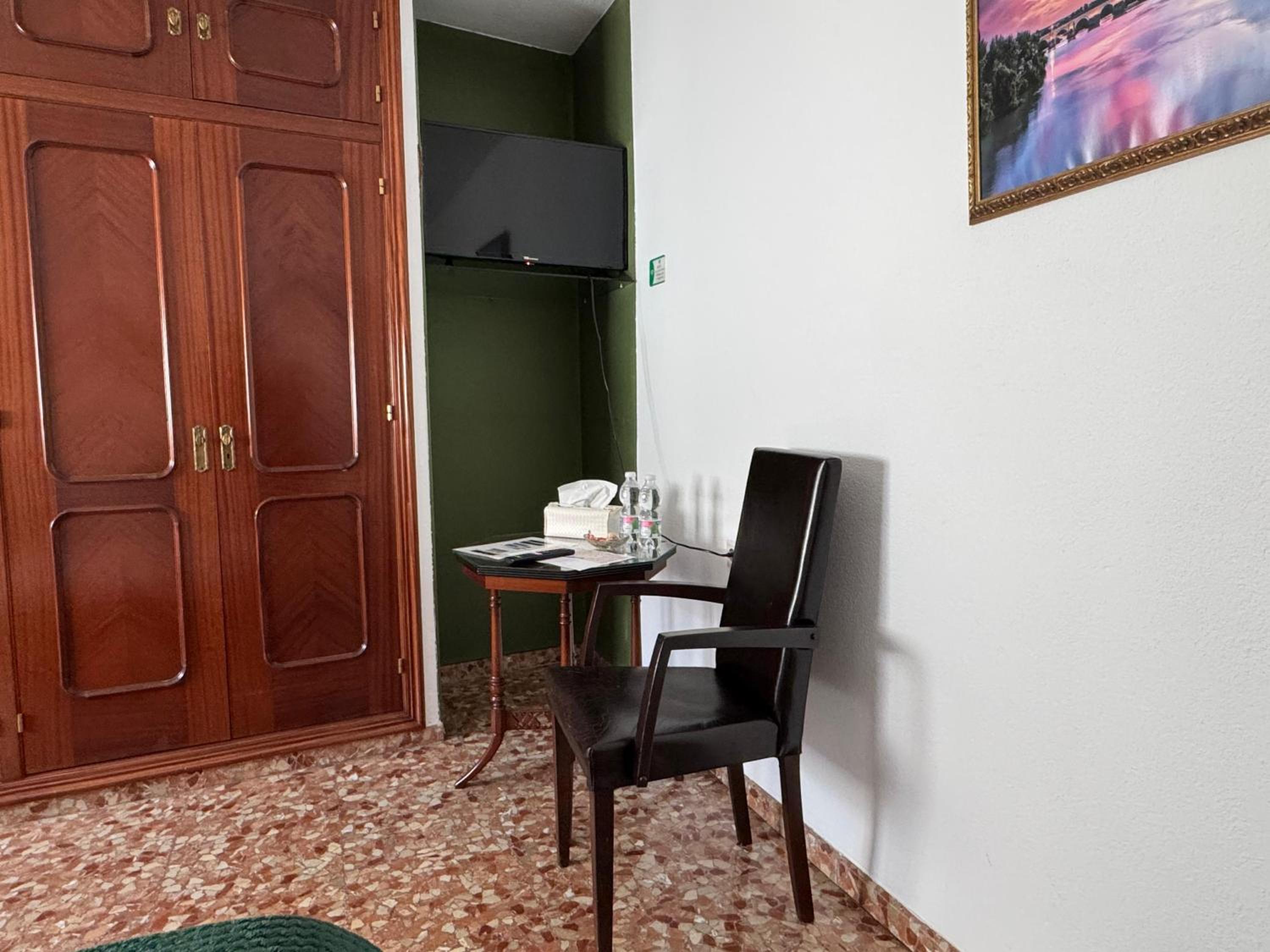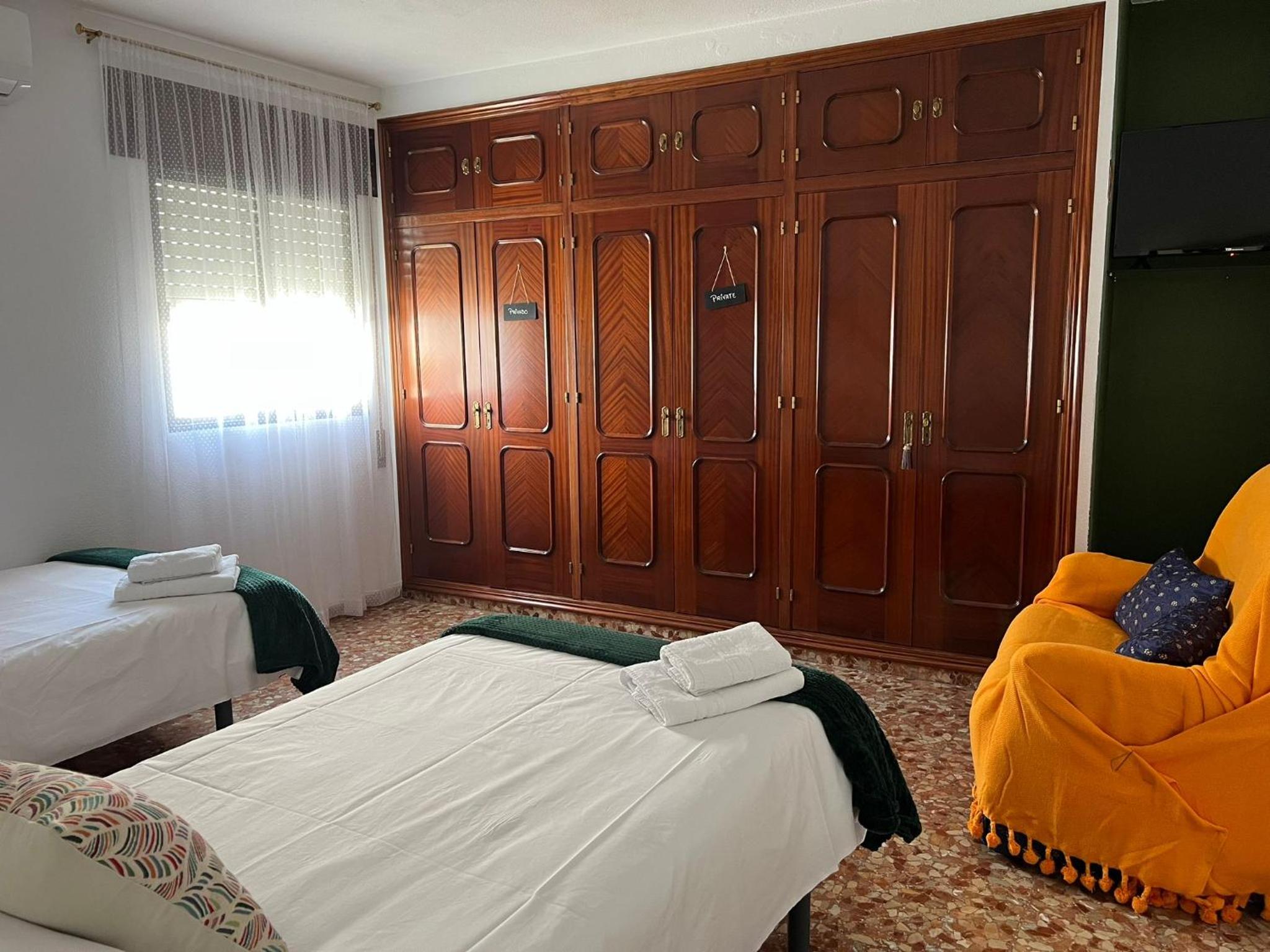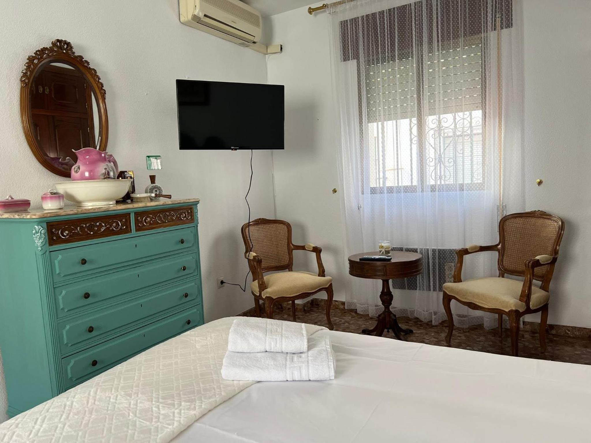 Lugar tranquilo en casa con patio y cerca de todo. Habitación limpia, amplia y con dos ventanas. Decoración un poco anticuada.
