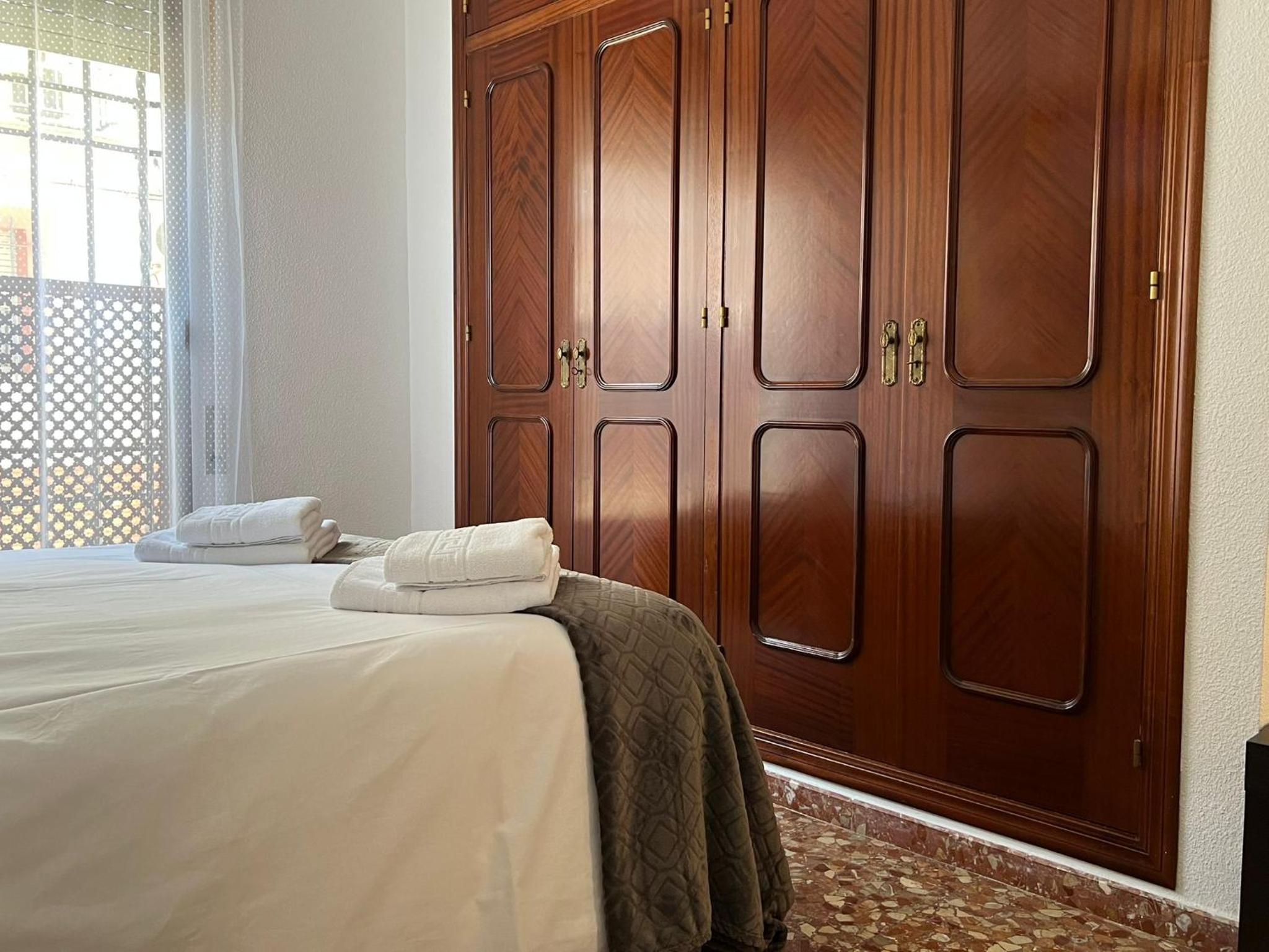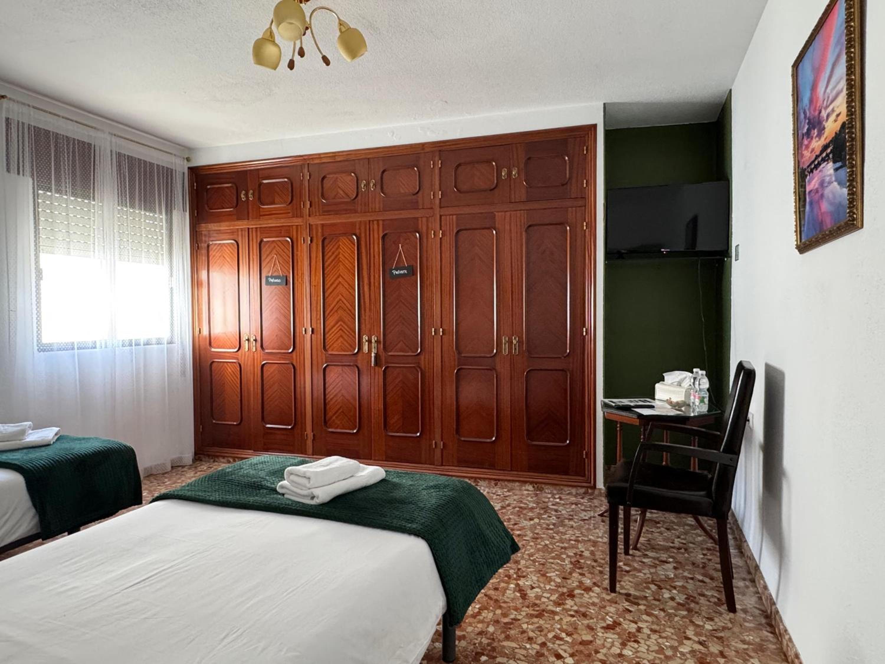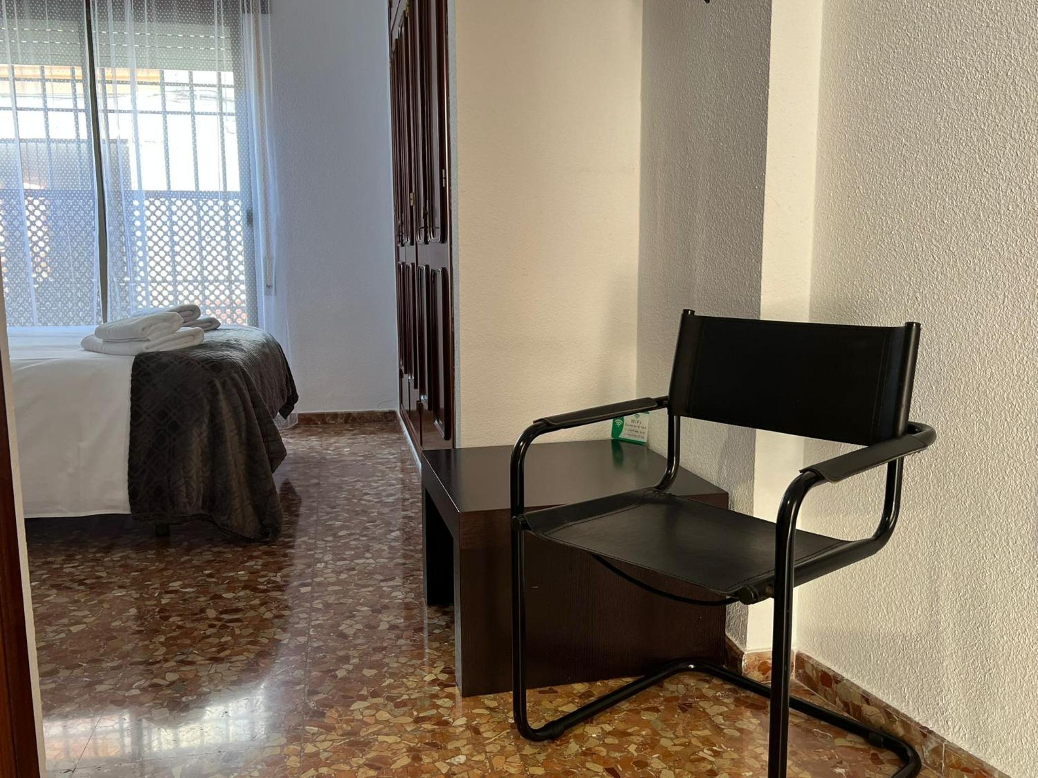 Lugar tranquilo en casa con patio y cerca de todo. Habitación limpia, amplia y con dos ventanas. Decoración un poco anticuada.