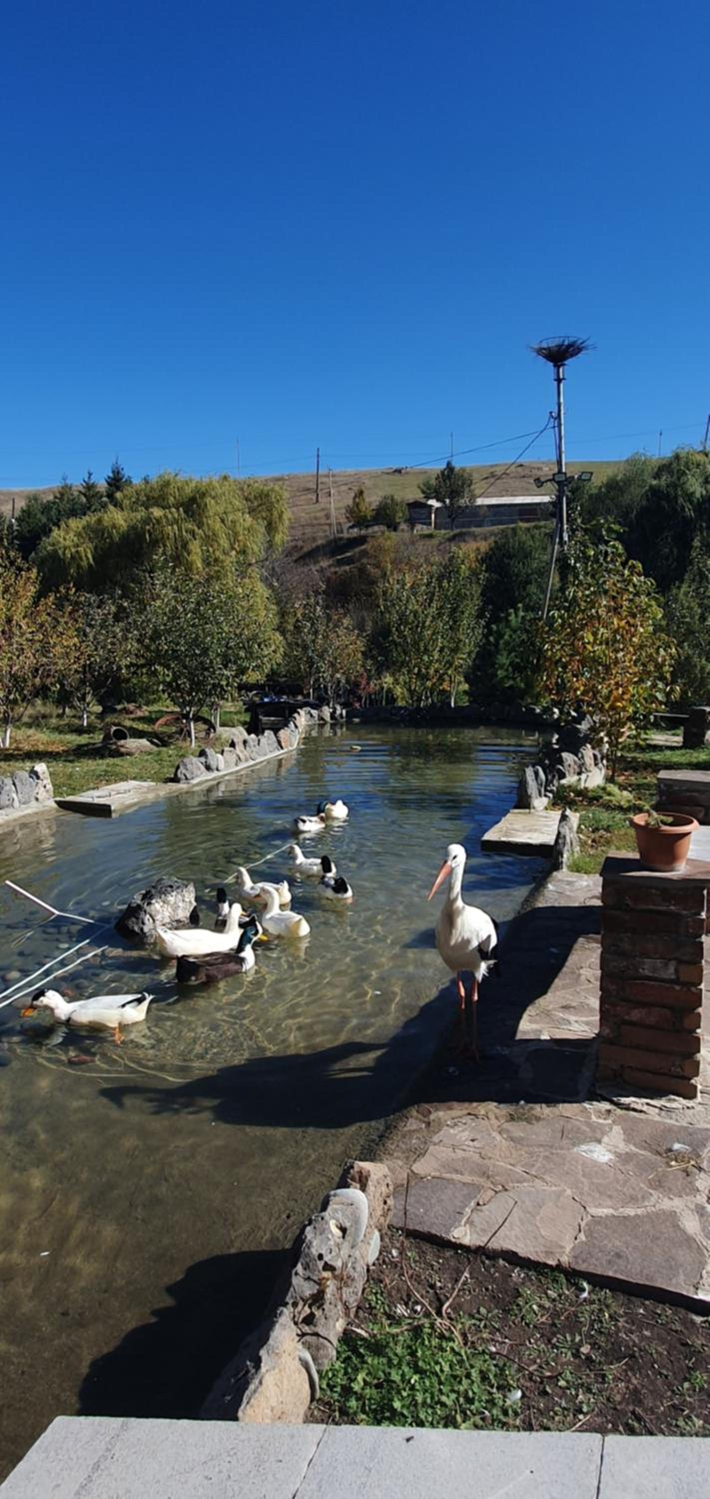Великолепное место с гостеприимными хозяевами, очень красивая местность на берегу горной реки, номера лично дизайнил хозяин отеля, все сделано вручную, включая мебель – можно гулять как по музею и все разглядывать. На территории есть живность – голуби, попугаи, аист. Двор огромный, можно гулять. Одно из лучших мест, где я останавливался (проехал больше 40 стран)