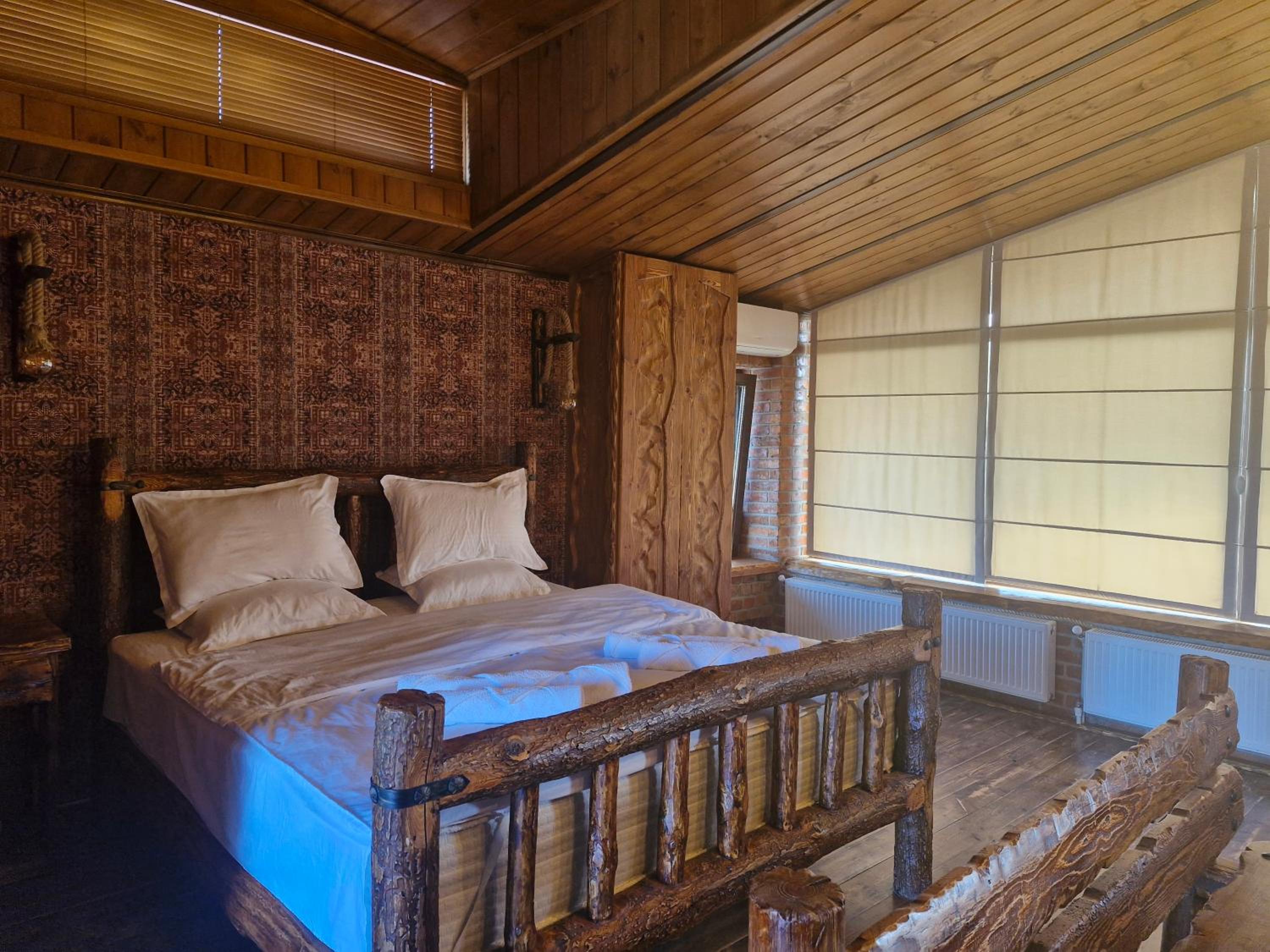 Отель расположен на берегу реки и представляет собой несколько домиков.Каждая комната,благодаря усилиям хозяина Рафо, уникальна и прекрасно отделана деревом. Сам Рафо- замечательный и заботливый хозяин,готовый придти на помощь и помочь в любой момент и в любой ситуации. Не покидает ощущение, что приехал в семью, к родственникам. В душевой есть все необходимое. Завтрак и ужин были прекрасны. На территории отеля большое количество деревьев, гуляет аист, а шум реки убаюкивает и расслабляет. Этот отель- замечательное место для отдыха