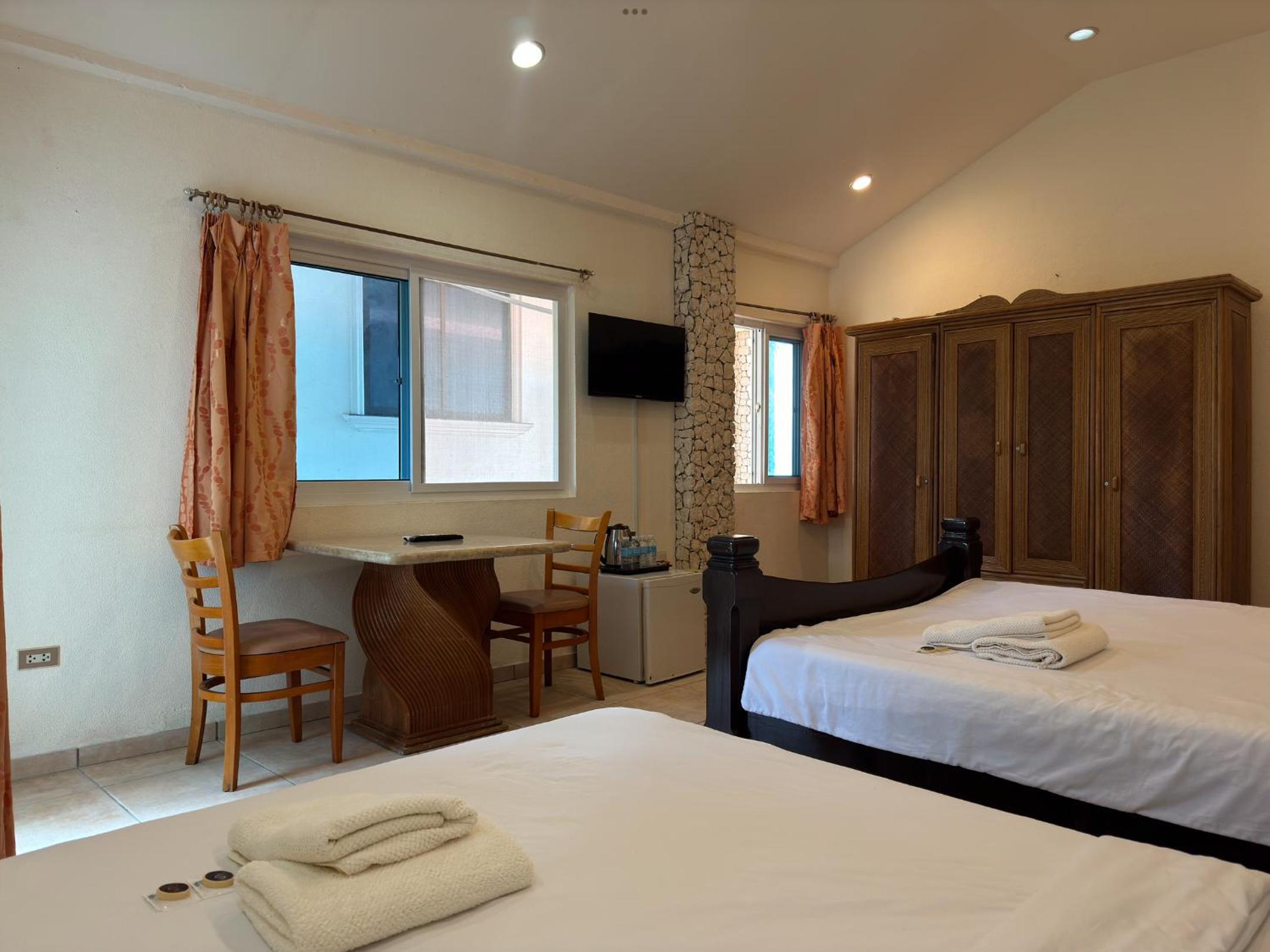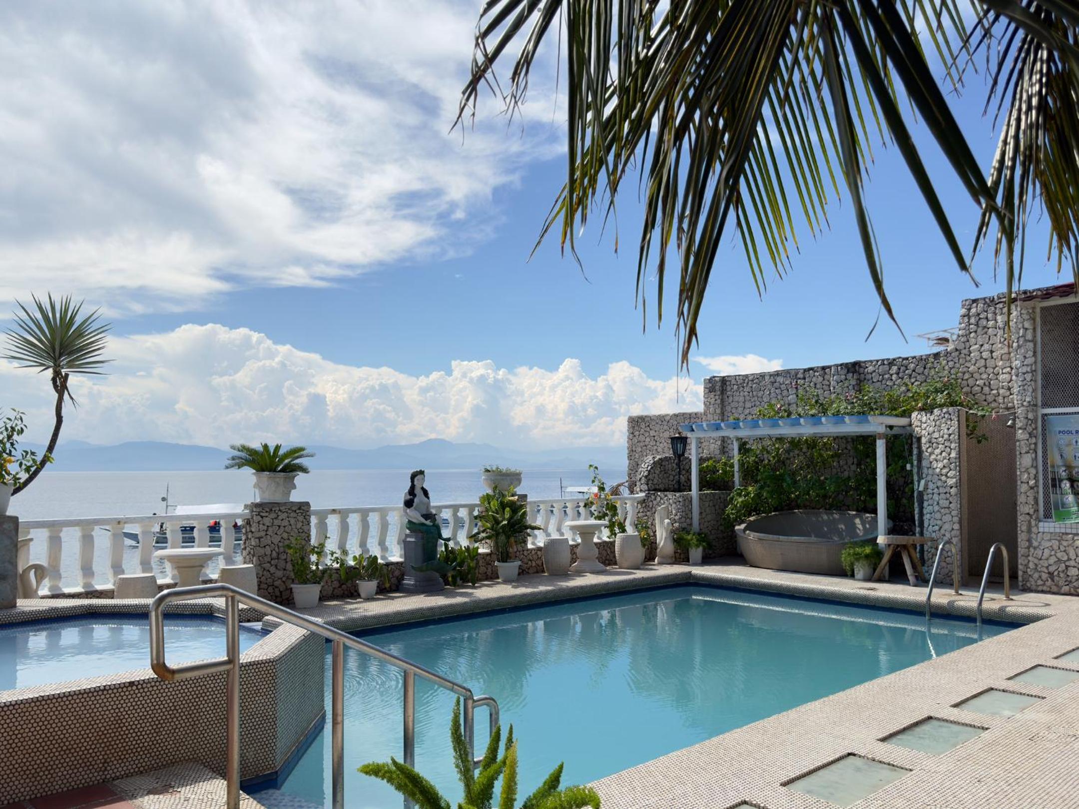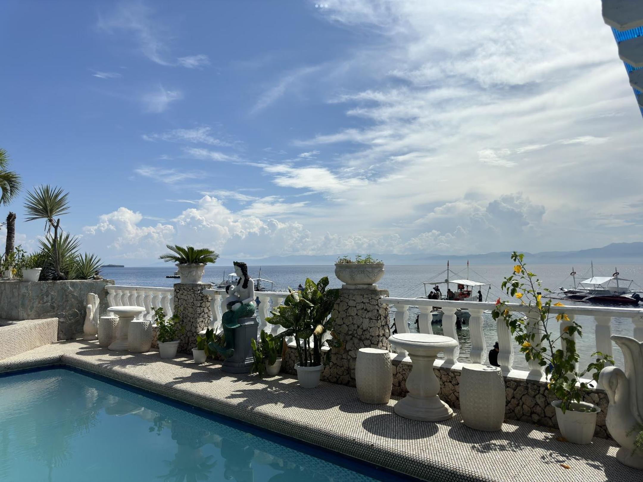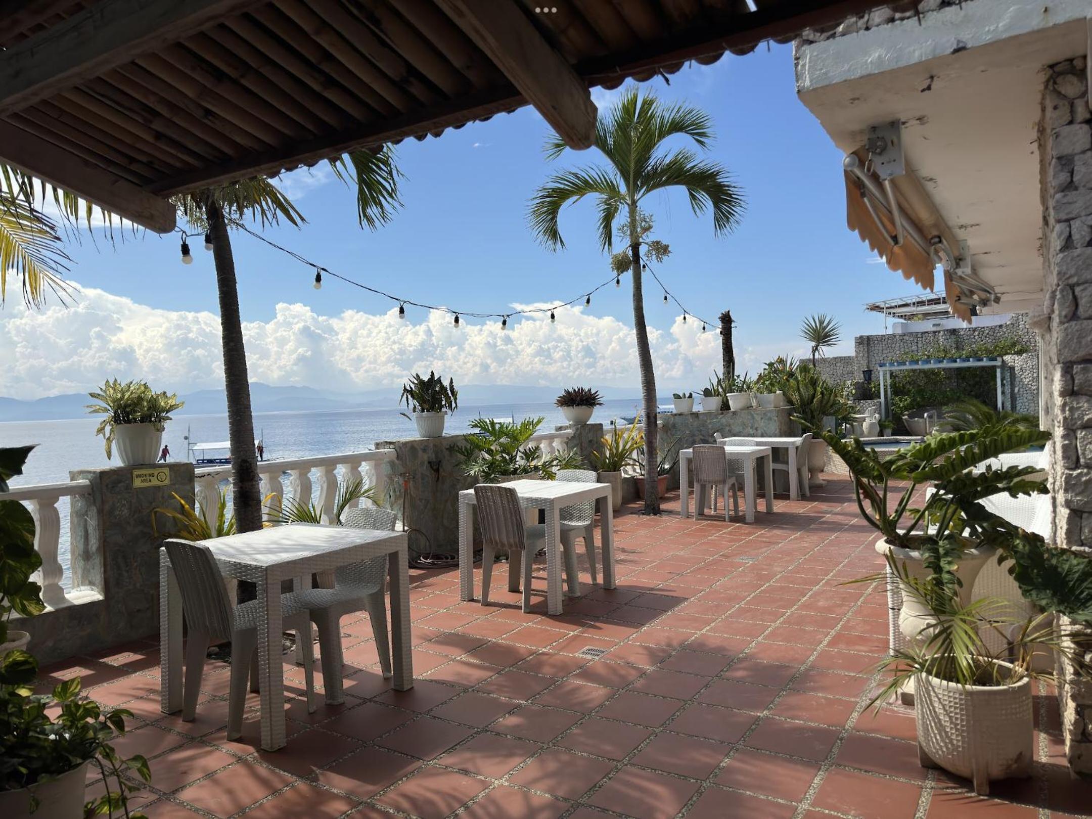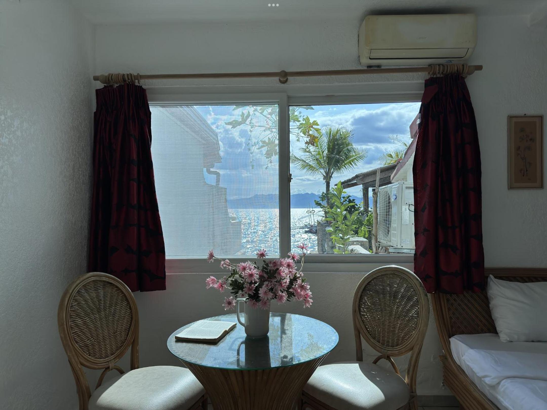Hotel is a bit rundown but of course it is cheap. Our balcony faced the street, we were expecting a view from the balcony, the view was a side one of the ocean from a window. The air-conditioner in the room is around the corner from the bed so they provided a fan so some cool air was available, look, at the end of the day it is fine but nothing fancy and could be improved immensely with a little $$$ and thought put into it. Location is great. I found Moalboal a bit yucky so I wouldn't stay too long here anyway.