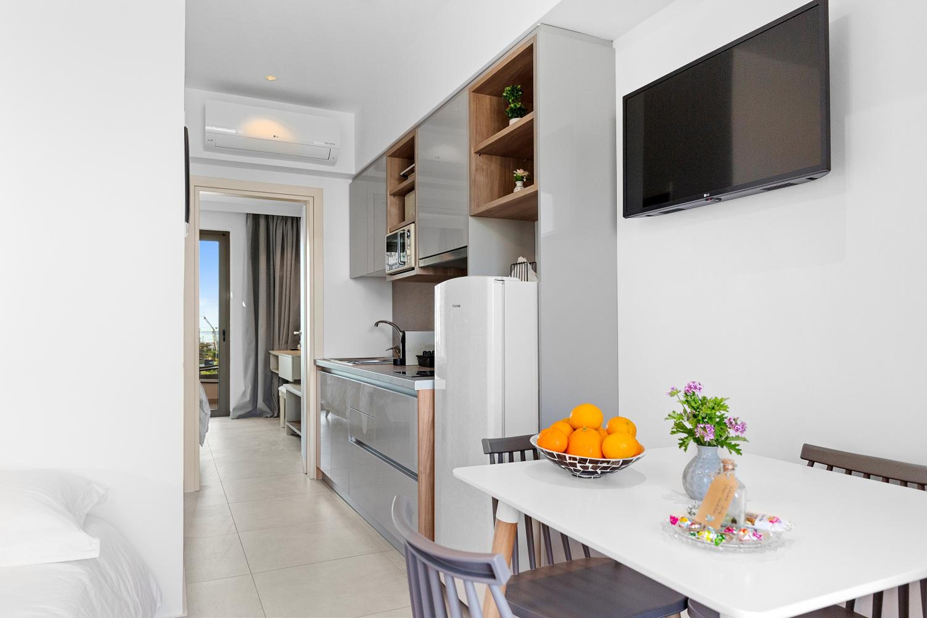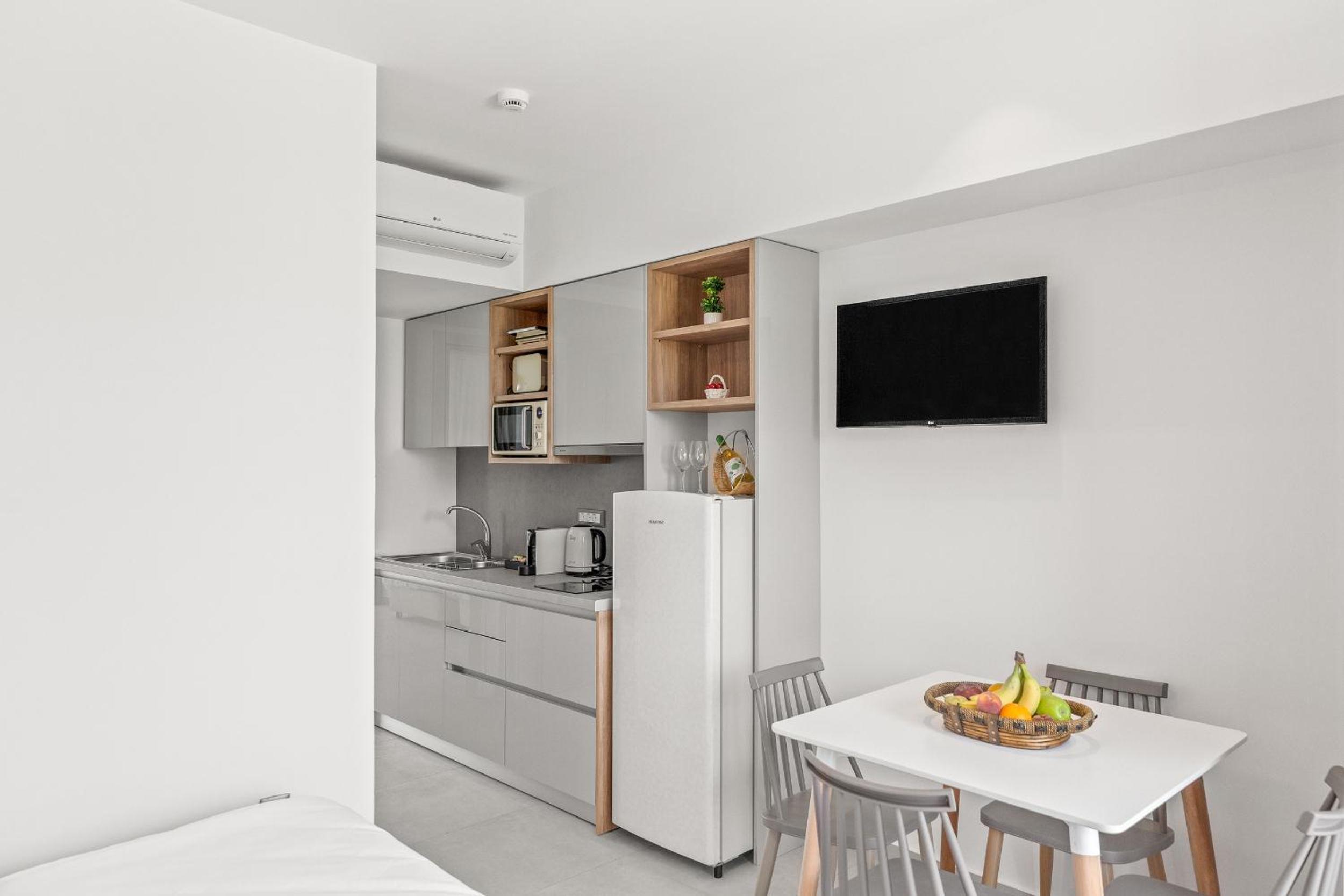 L'appartamento è spazioso, pulito, arredato con gusto e attrezzato di tutto. Perfetto per una coppia o anche una famiglia (essendoci un divano letto). Dalla terrazza - con tavolo, sdraio e ombrellone - si gode di una magnifica vista sul castello medievale. C'è una bella piscina comune. La posizione è centralissima per visitare Rodi. Comodo il parcheggio. I proprietari sono estremamente gentili e al nostro arrivo ci hanno fatto trovare frutta, bevande, torta fatta in casa e prima della partenza una bottiglietta di olio locale, origano e altre specialità. Ottimo soggiorno!