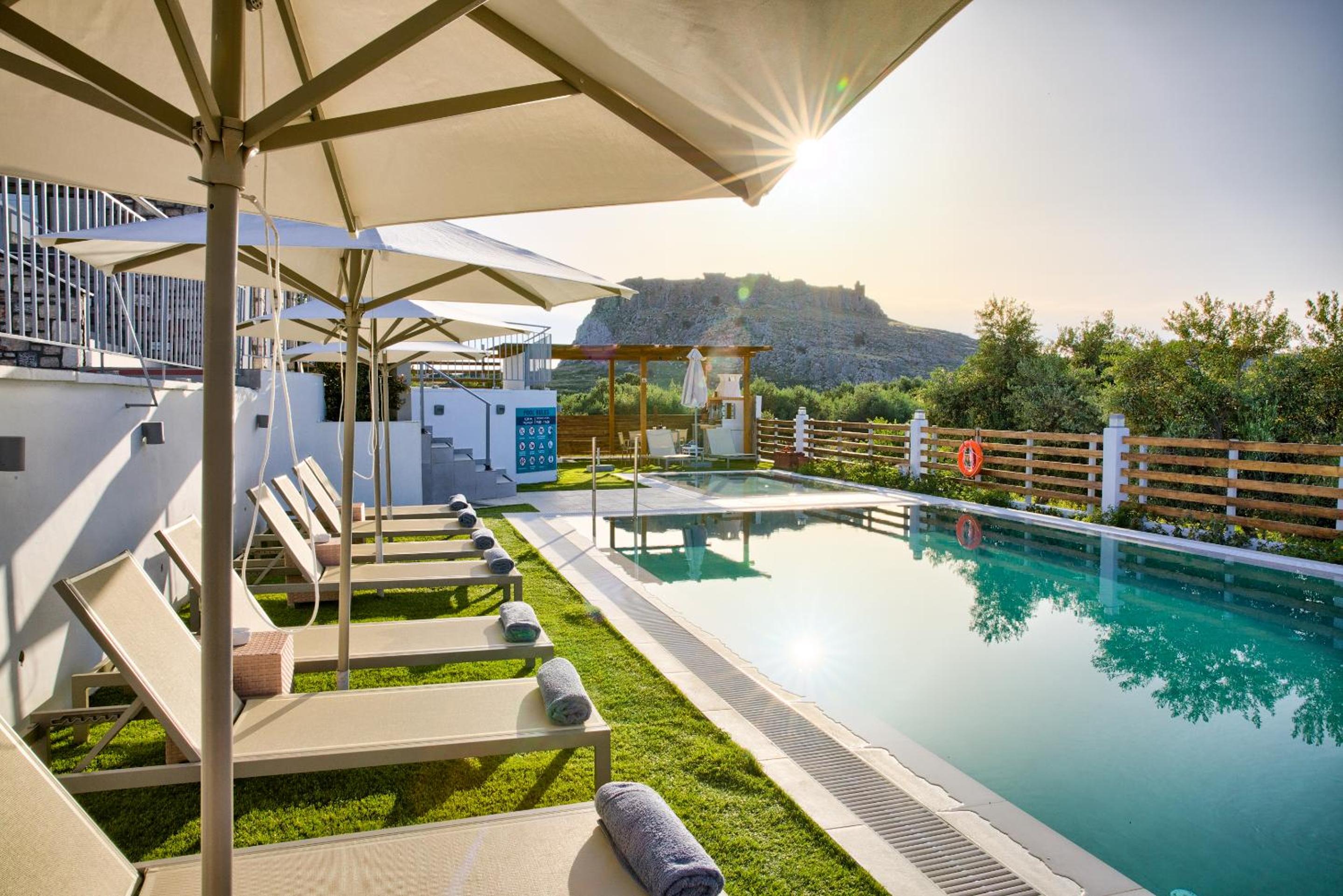 Unwind by the seasonal outdoor pool or take a short stroll to the nearby Haraki Beach. Enjoy the convenience of free private parking and the lush garden and terrace areas.