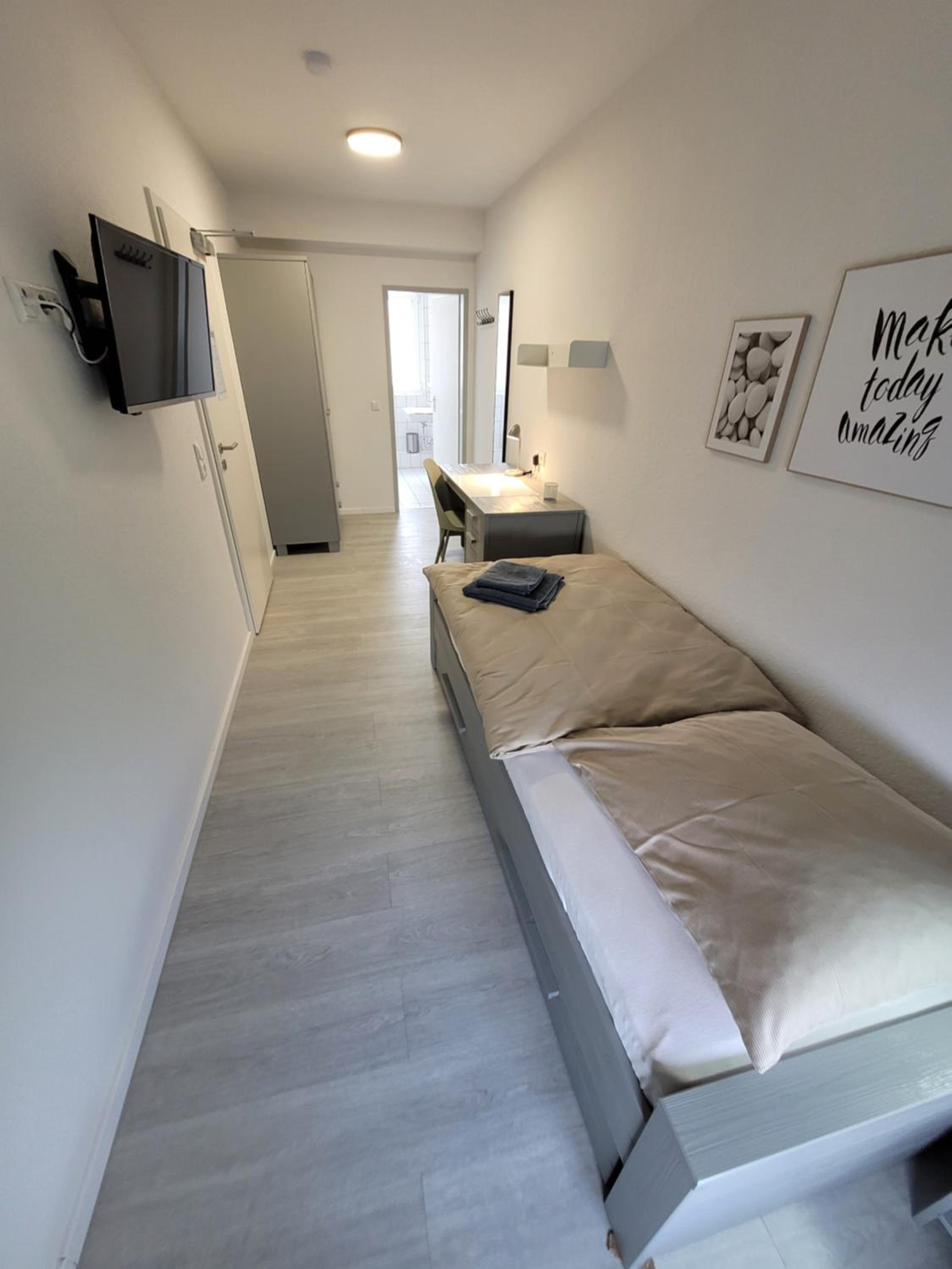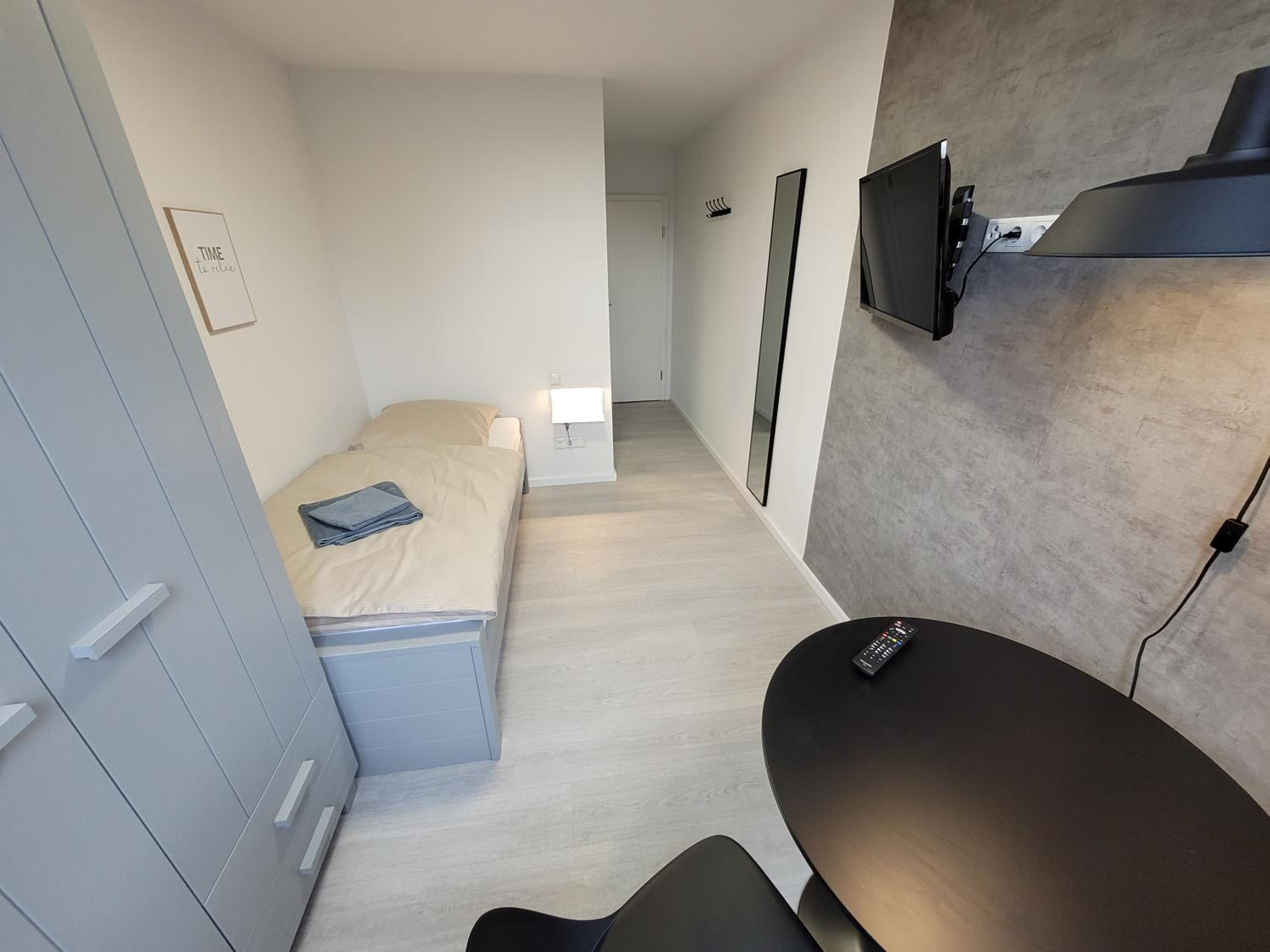 Sehr gutes Preis-Leistungs-Verhältnis. Ruhige Lage und sauber. Leichtes Einchecken über einen Code. Parkmöglichkeiten.
