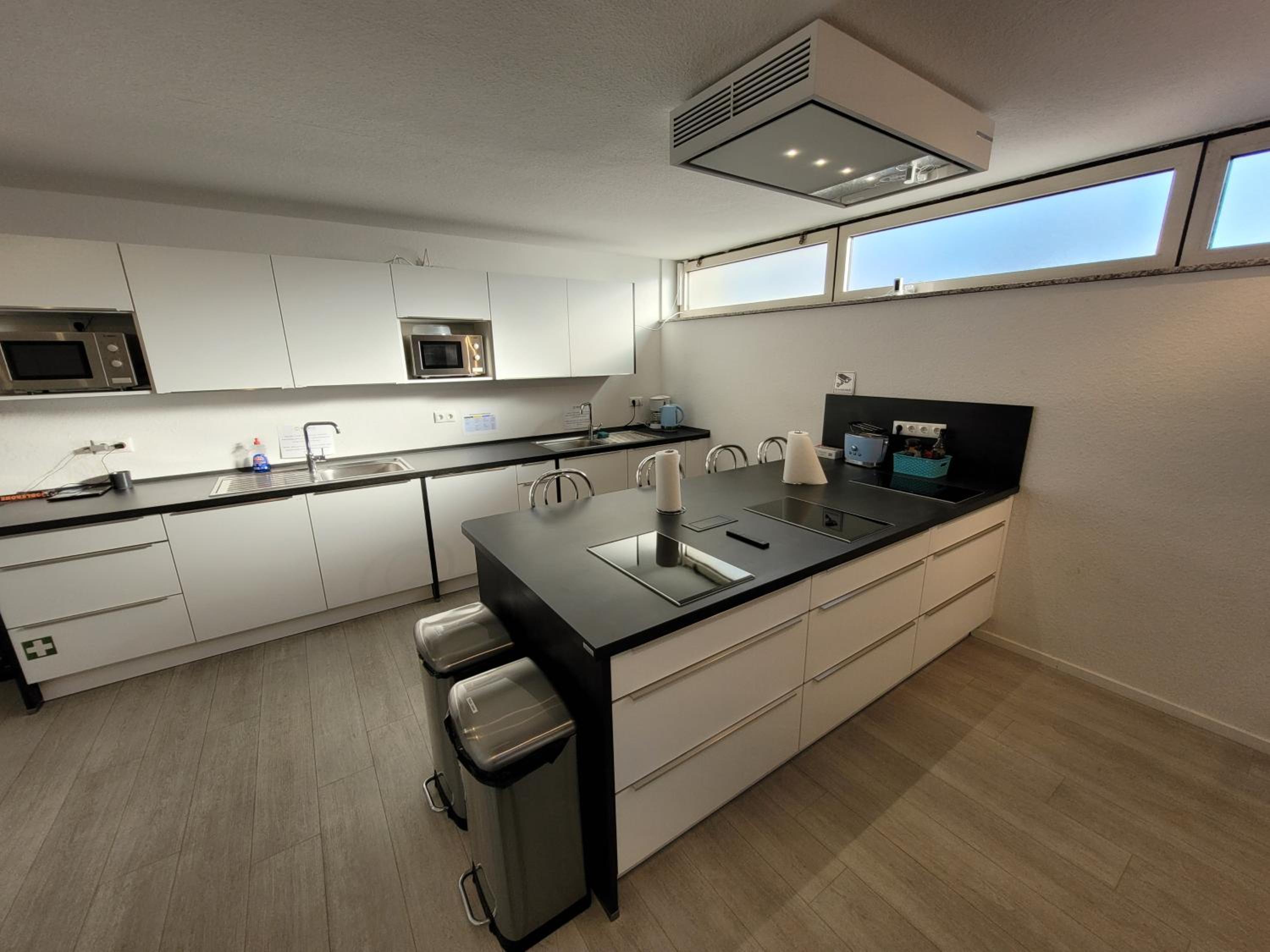 Gemeenschappelijke keuken, groot en zeer goed ingericht. Fiets kan veilig op het gemeenschappelijke terras staan.