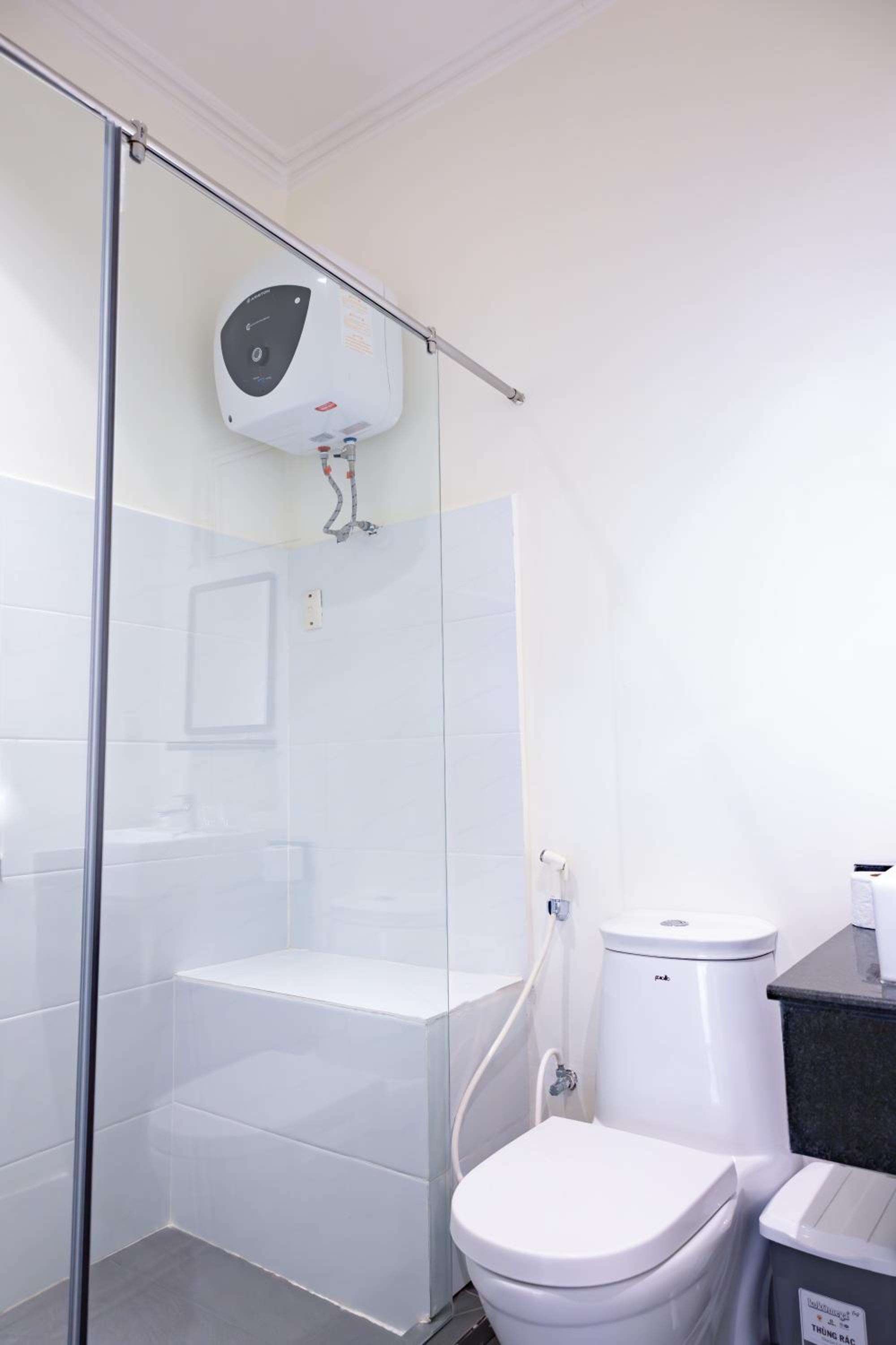 The bathrooms are mixed, toilet and shower in one cubicle, one shower doesn’t have hot water… I had to move to the other one. Not pretty but it works for what it is. The outside area doesn’t have roof for when it rains.