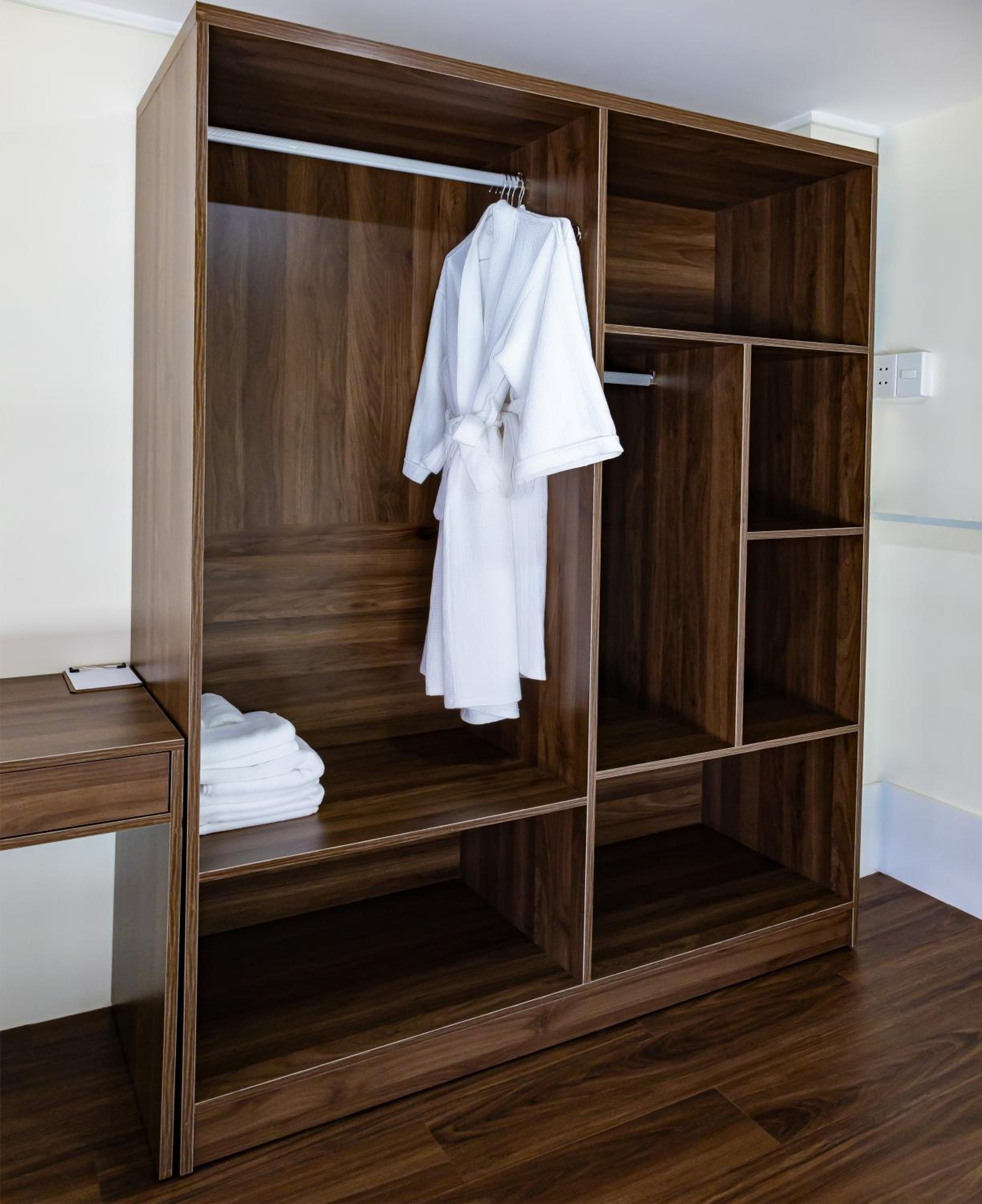 The room is old, needs repair. The bed is very hard. It is difficult to sit on the sofa, it is completely worn out. There are no hangers in the closet.