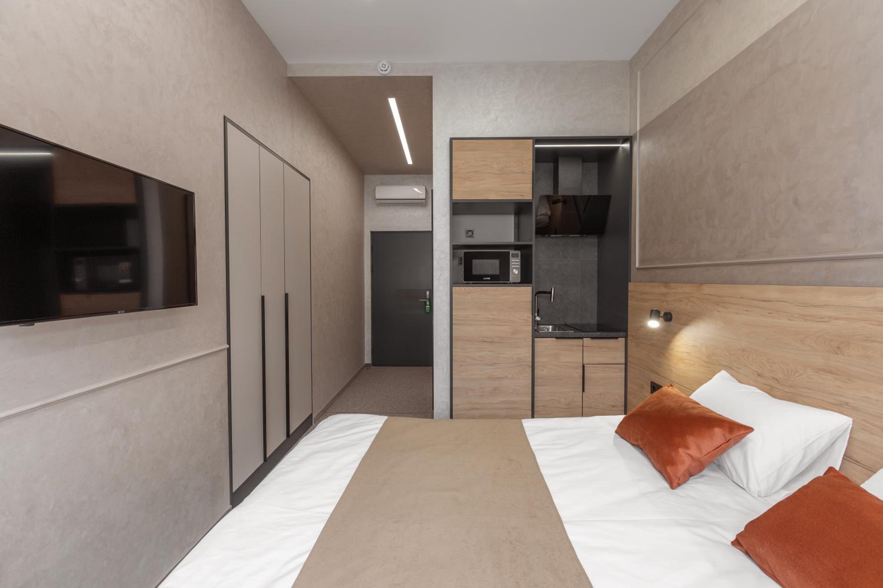 Чудове місцерозташування, 5 хв і ти на площі ринок. Велика кількість зручностей, як от смарт телевізор чи пральна машина, навіть капсули дають. По співвідношенню ціна-якість це взагалі супер