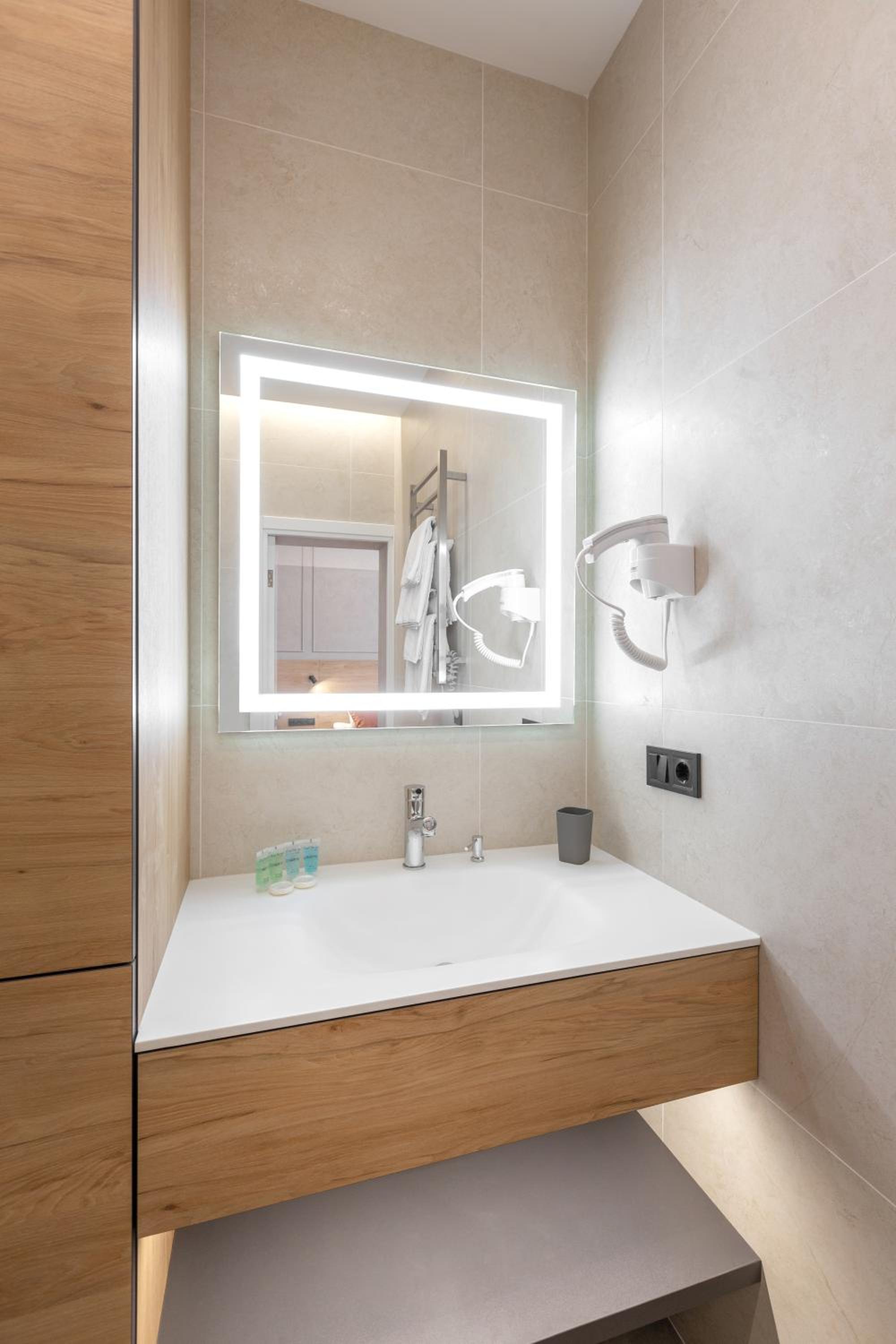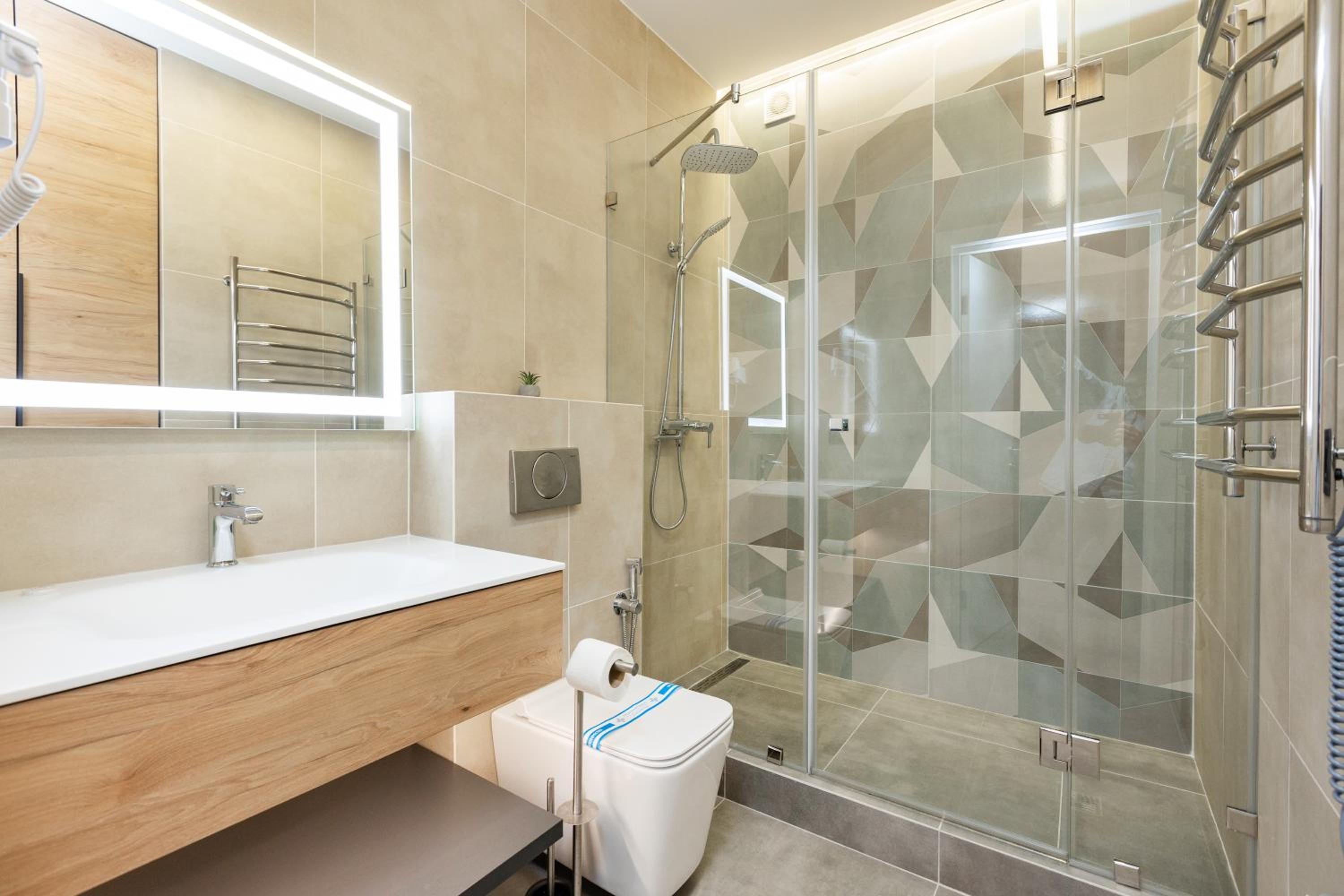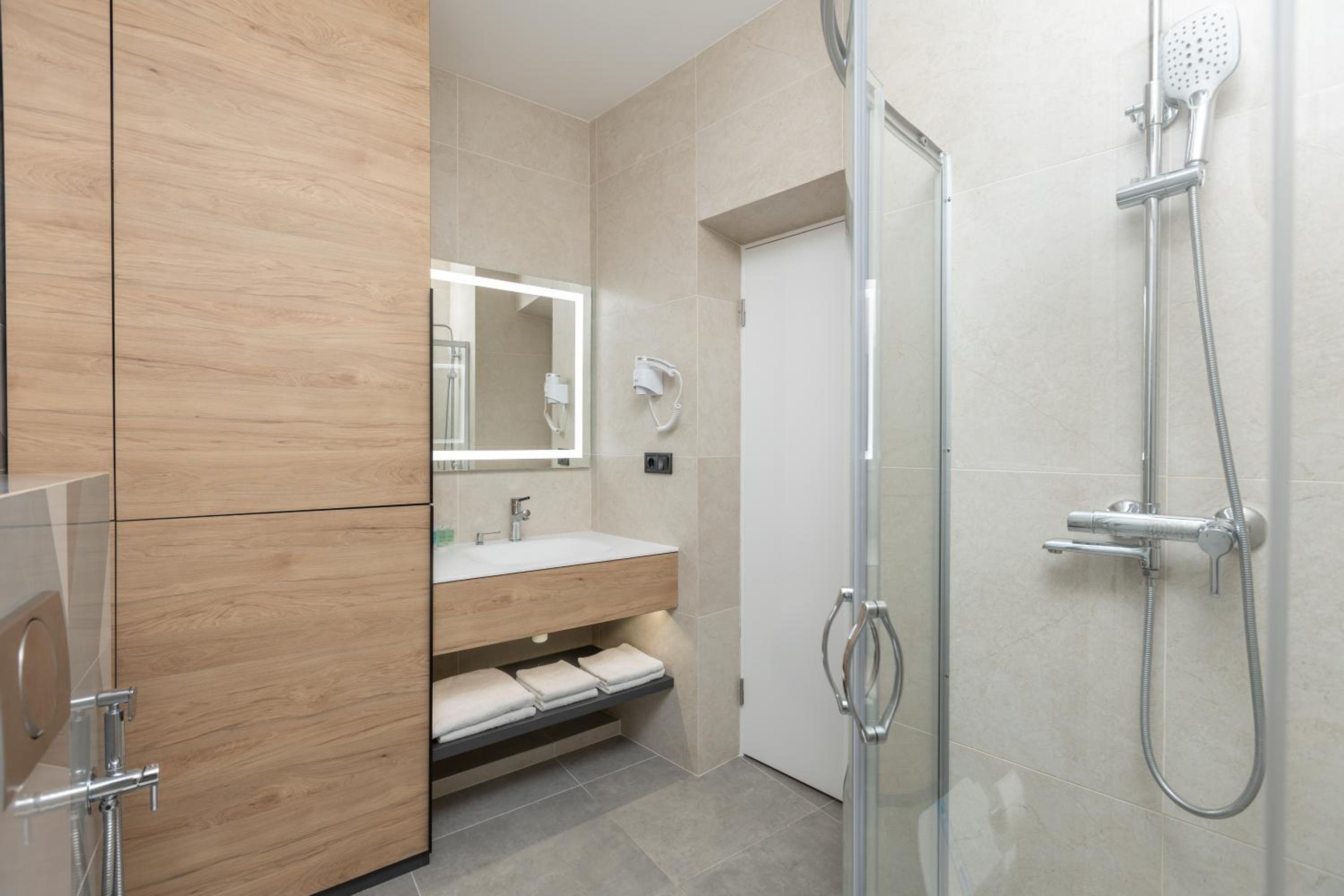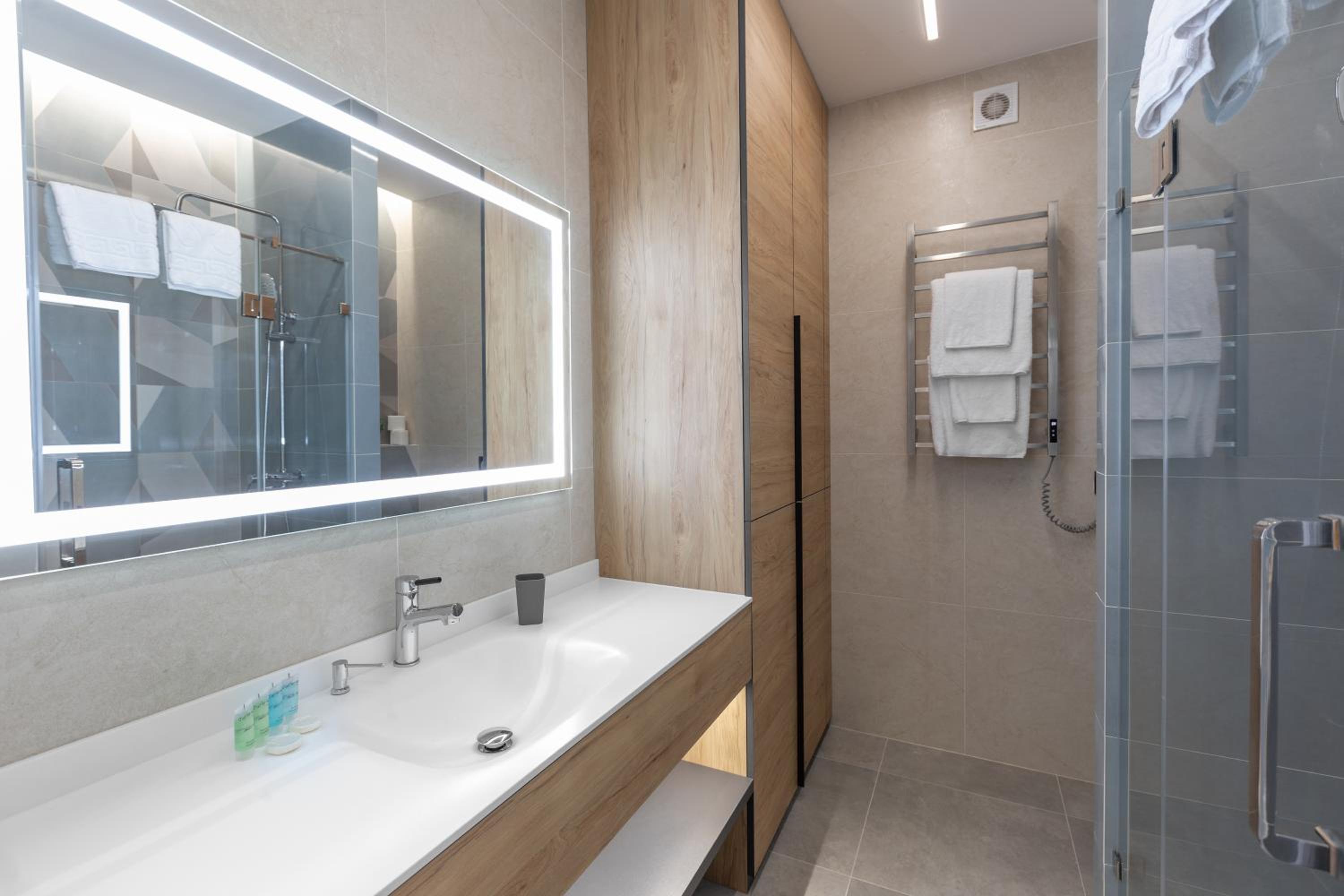 Єдине до чого можна придратися це відсутність якоїсь полички в душі щоб поставити шампунь коли миєшся