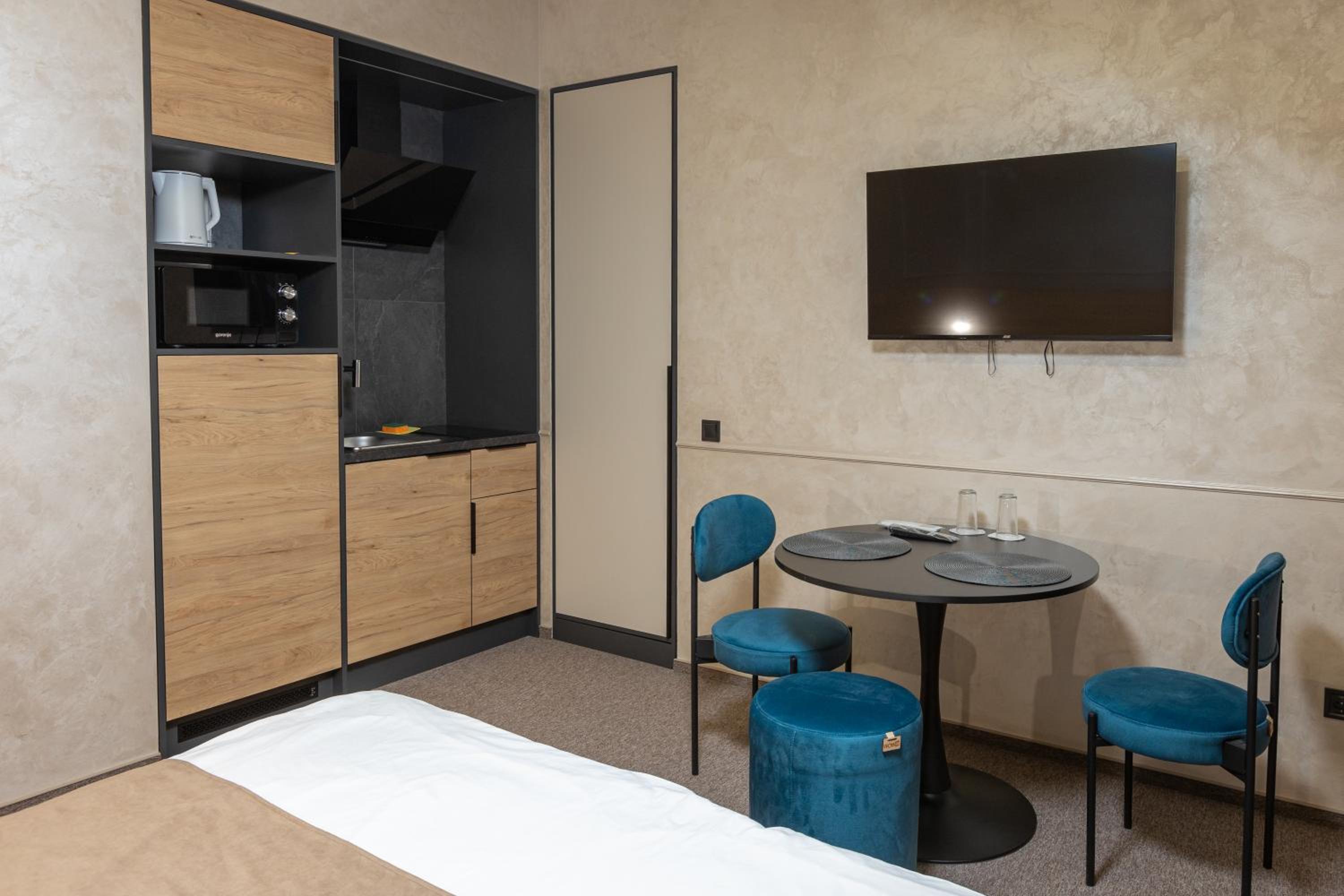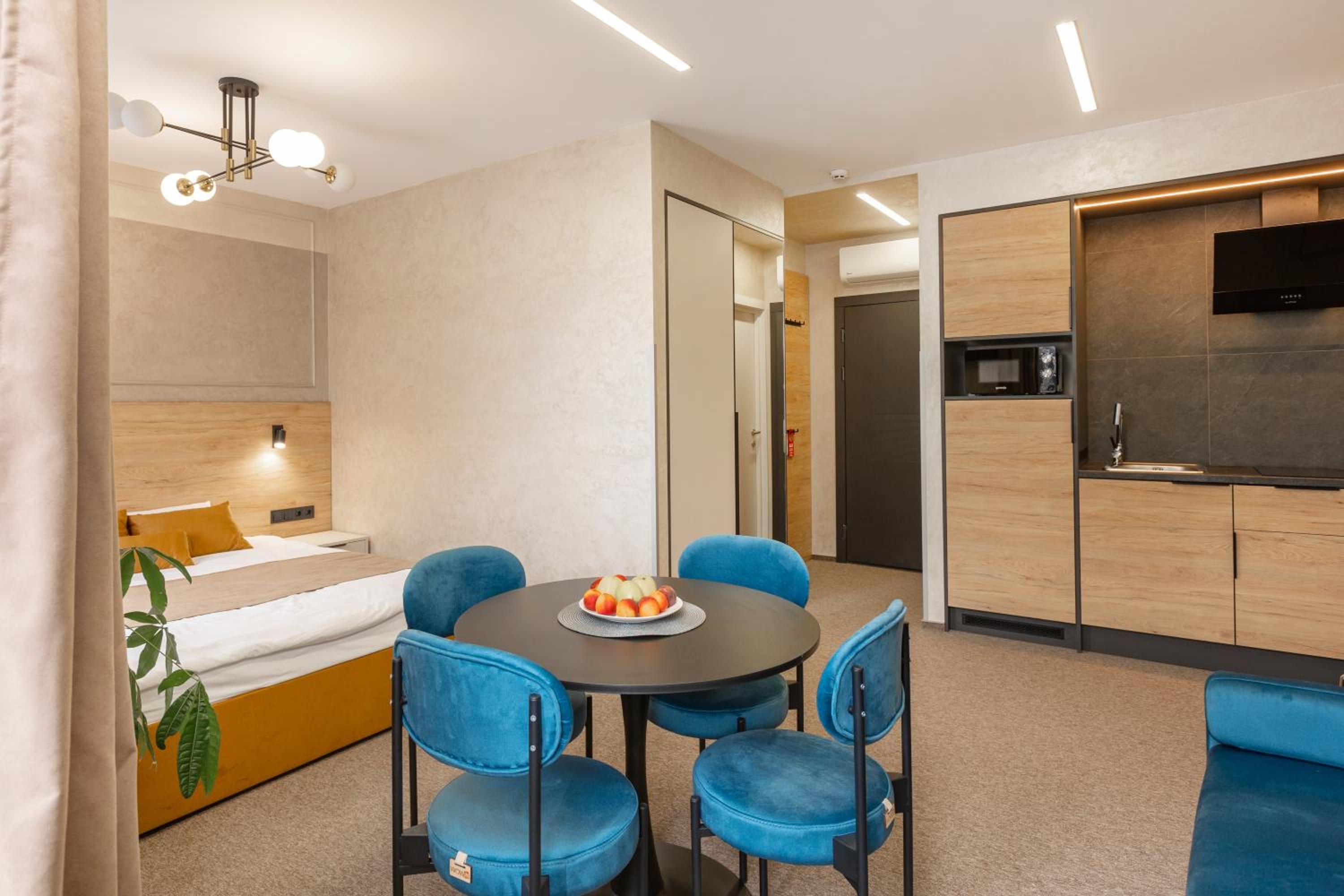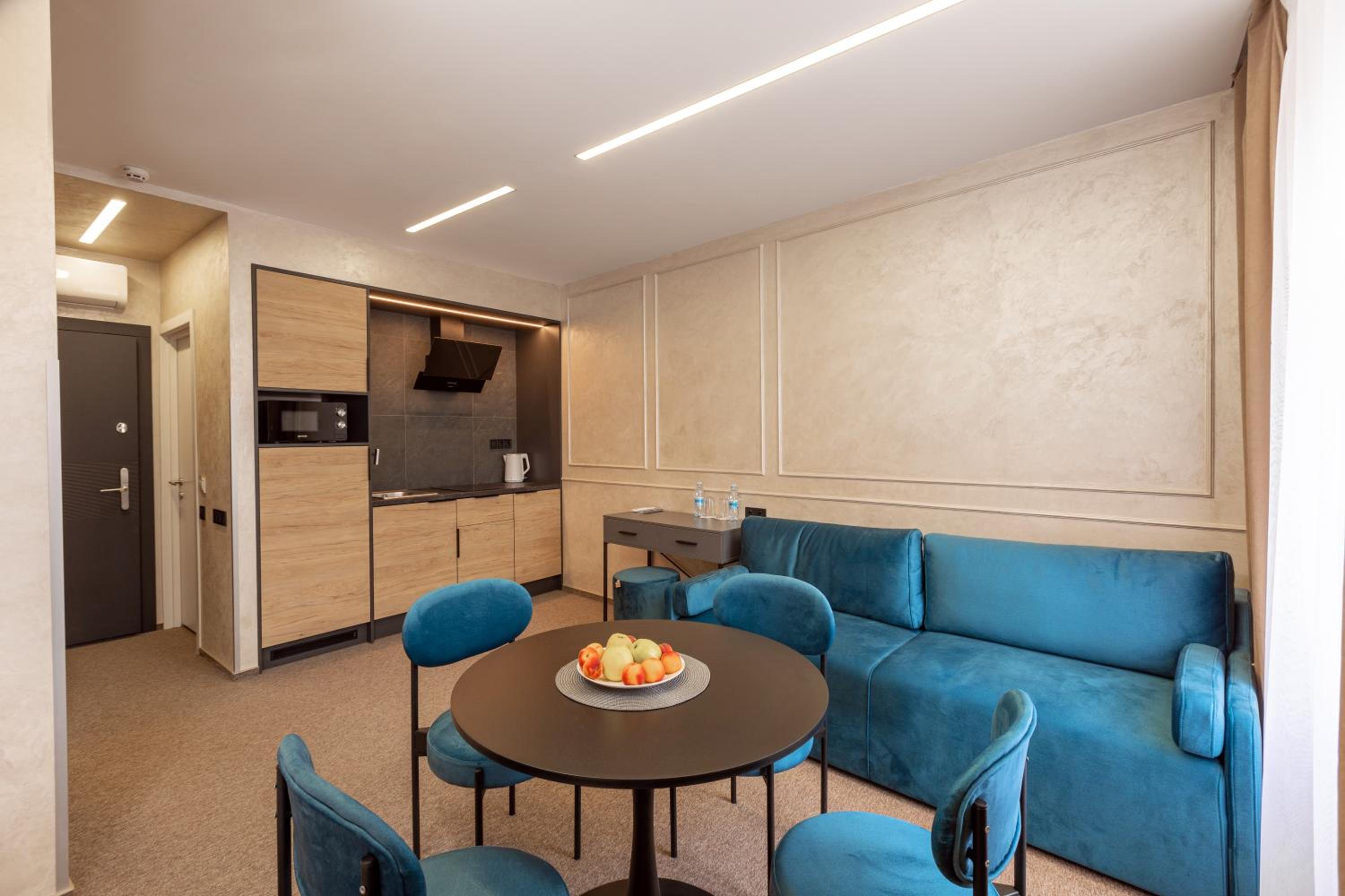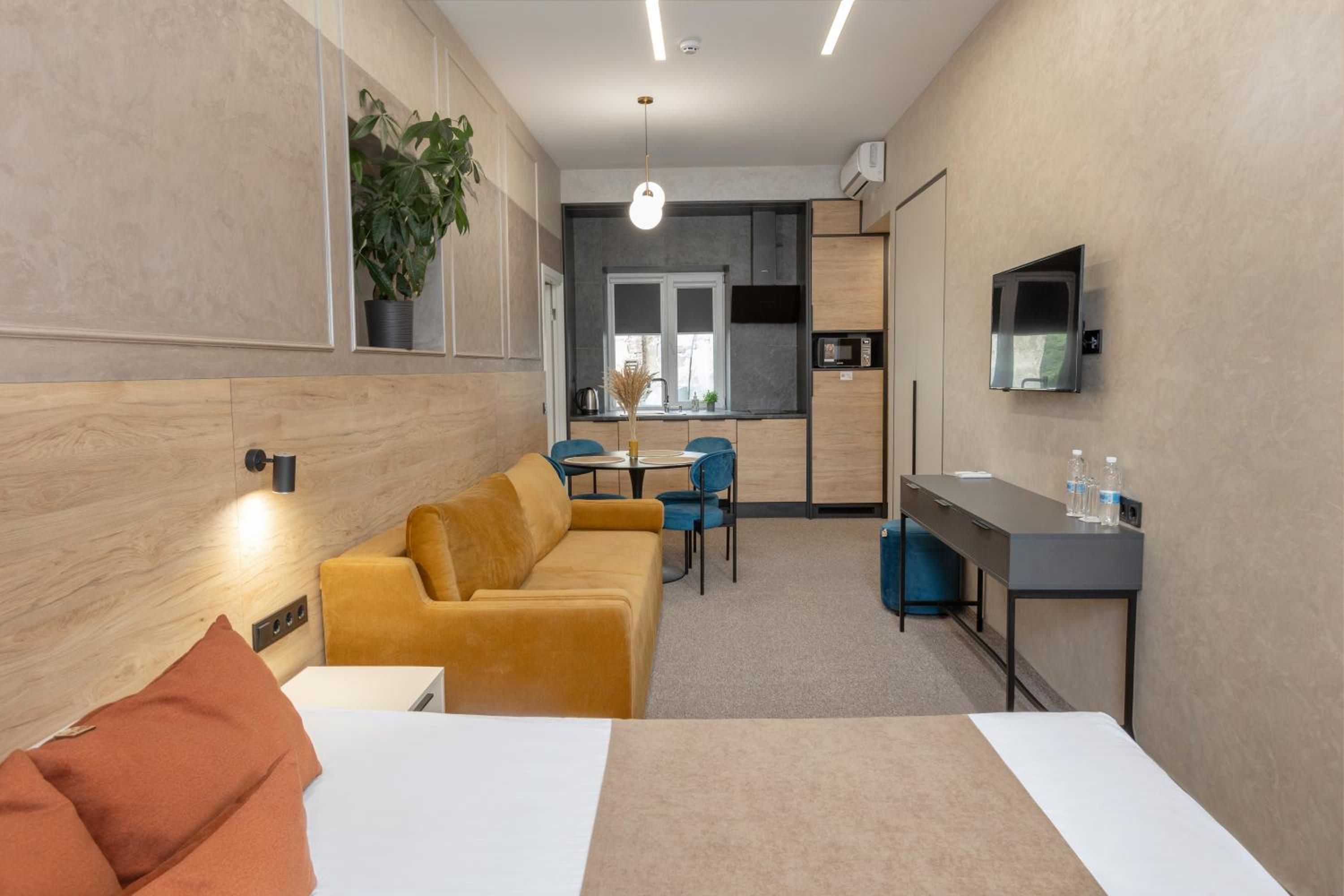 Our apartments feature fully equipped kitchenettes, flat-screen TVs, and private bathrooms with bidets and slippers. Relax in comfort with air conditioning, free WiFi, and 24-hour front desk service. Plus, enjoy the convenience of a minimarket on-site.