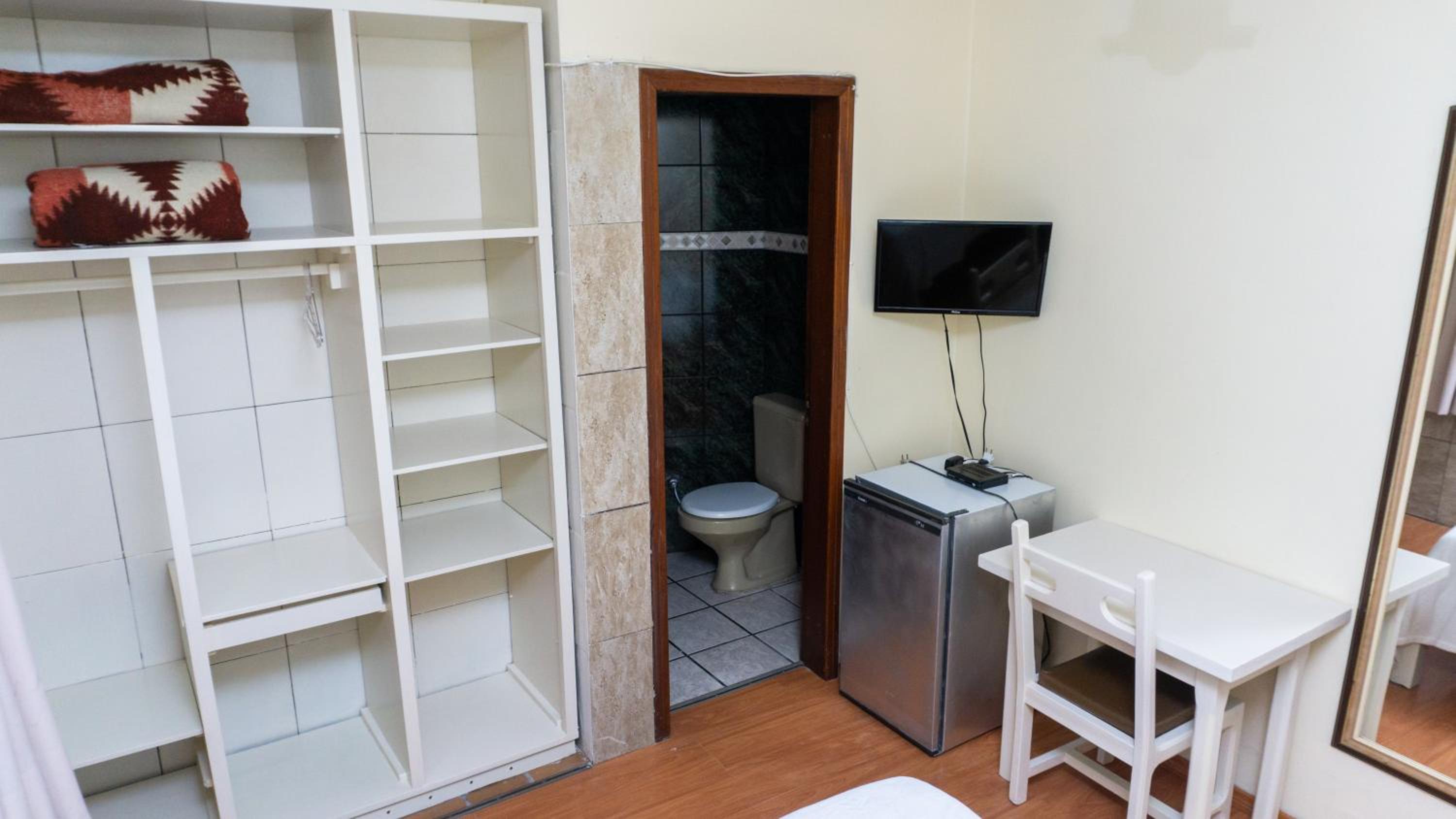 A acomodação em si, tem que cuidar, nosso quarto tinha uma "vizinha" morando atrás do azulejo, e tem que melhorar os móveis.