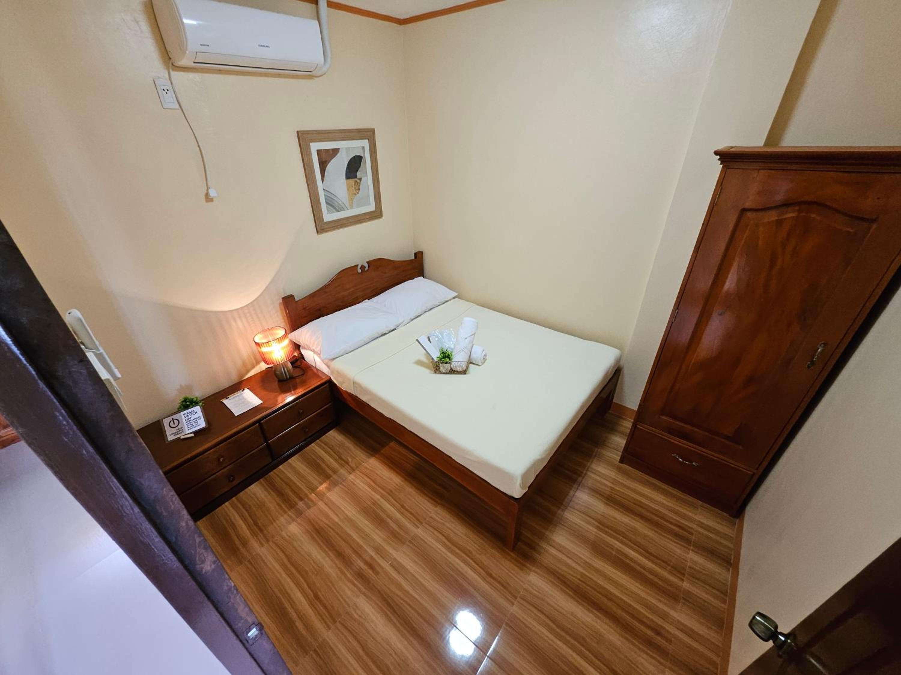 De slaapkamer heeft geen ramen, dus het comfort is afhankelijk van een werkende airconditioning. Die deed het gelukkig goed, ondanks de typhoon.