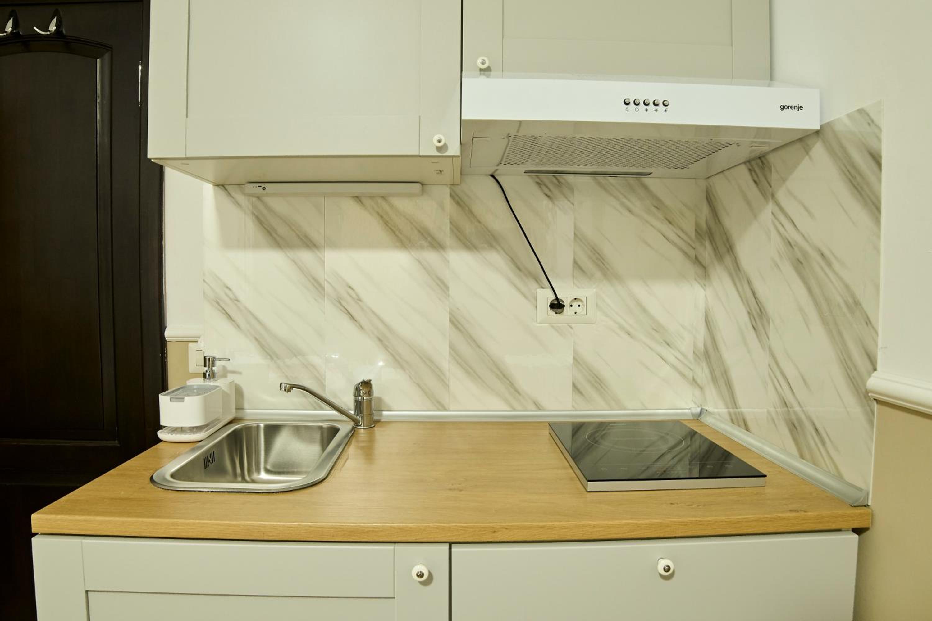 Чисто , уютно :) и приятный завтрак . Чай , кофе, посуда ,