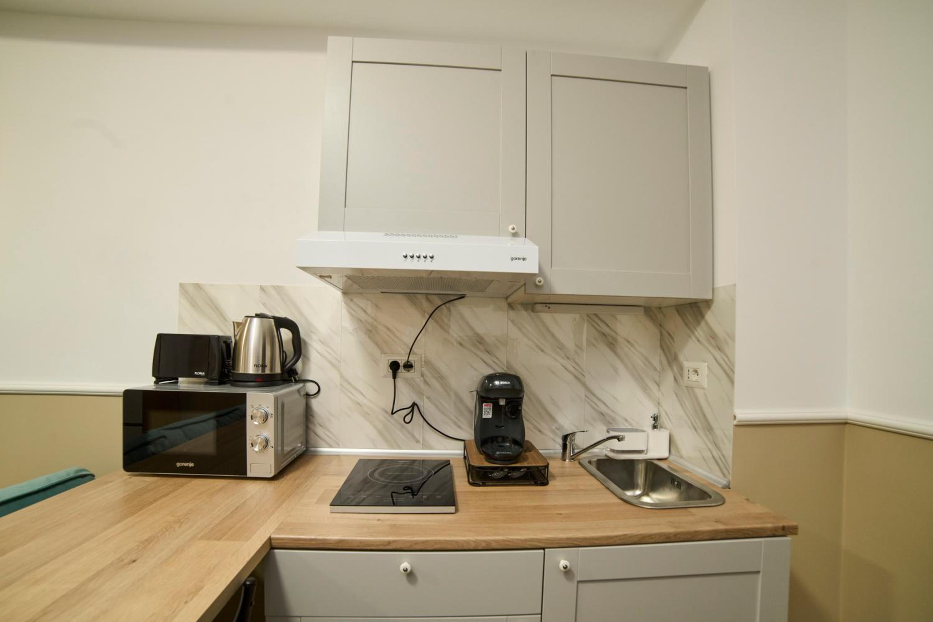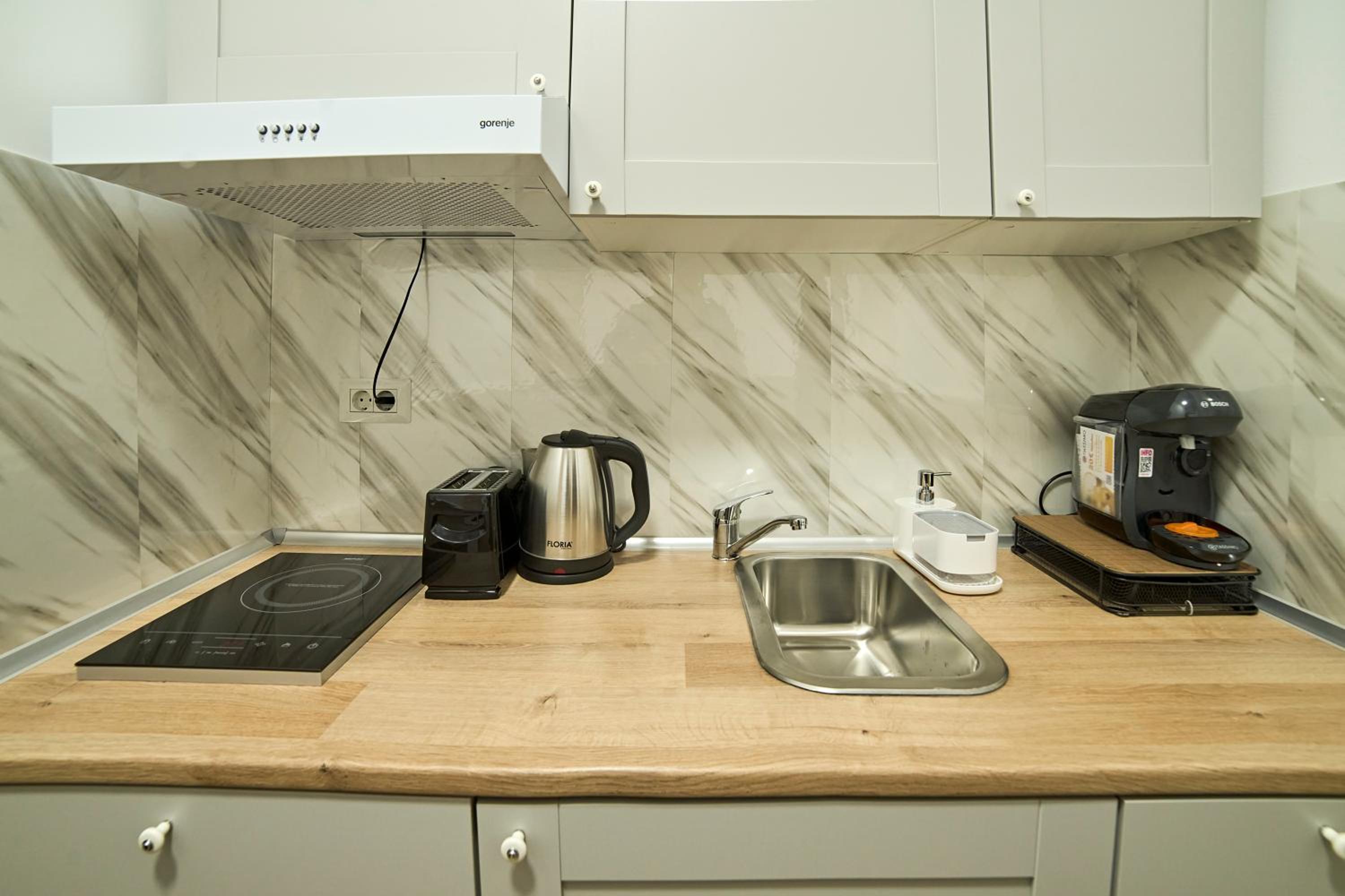 I didn't like that the hot water in the shower wasn't functioning only after 9-10 minutes. The room was good, but the ceiling was too low and the coffee machine did not function at all. The boiling pan was burnt and black.