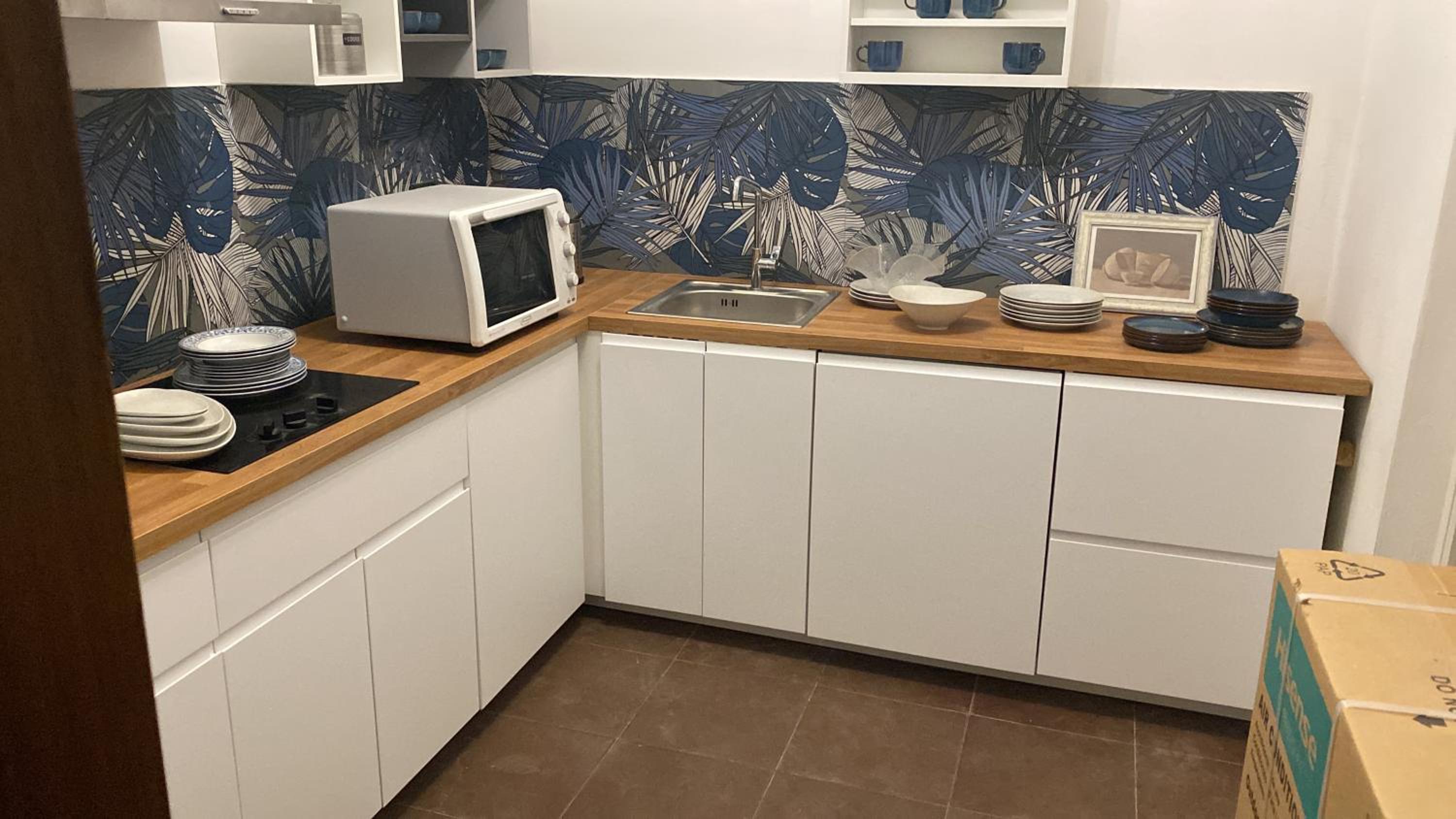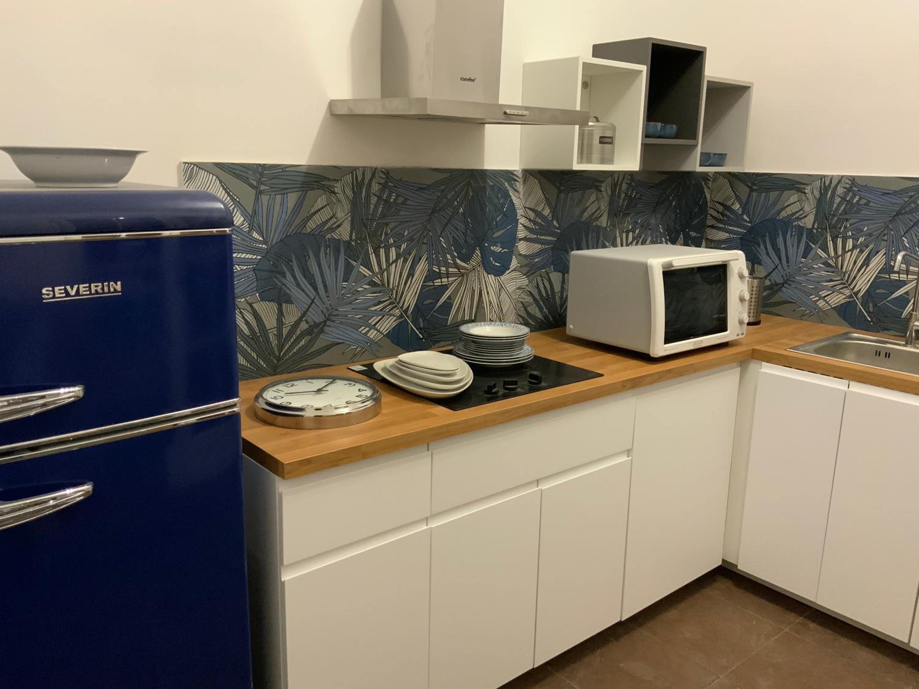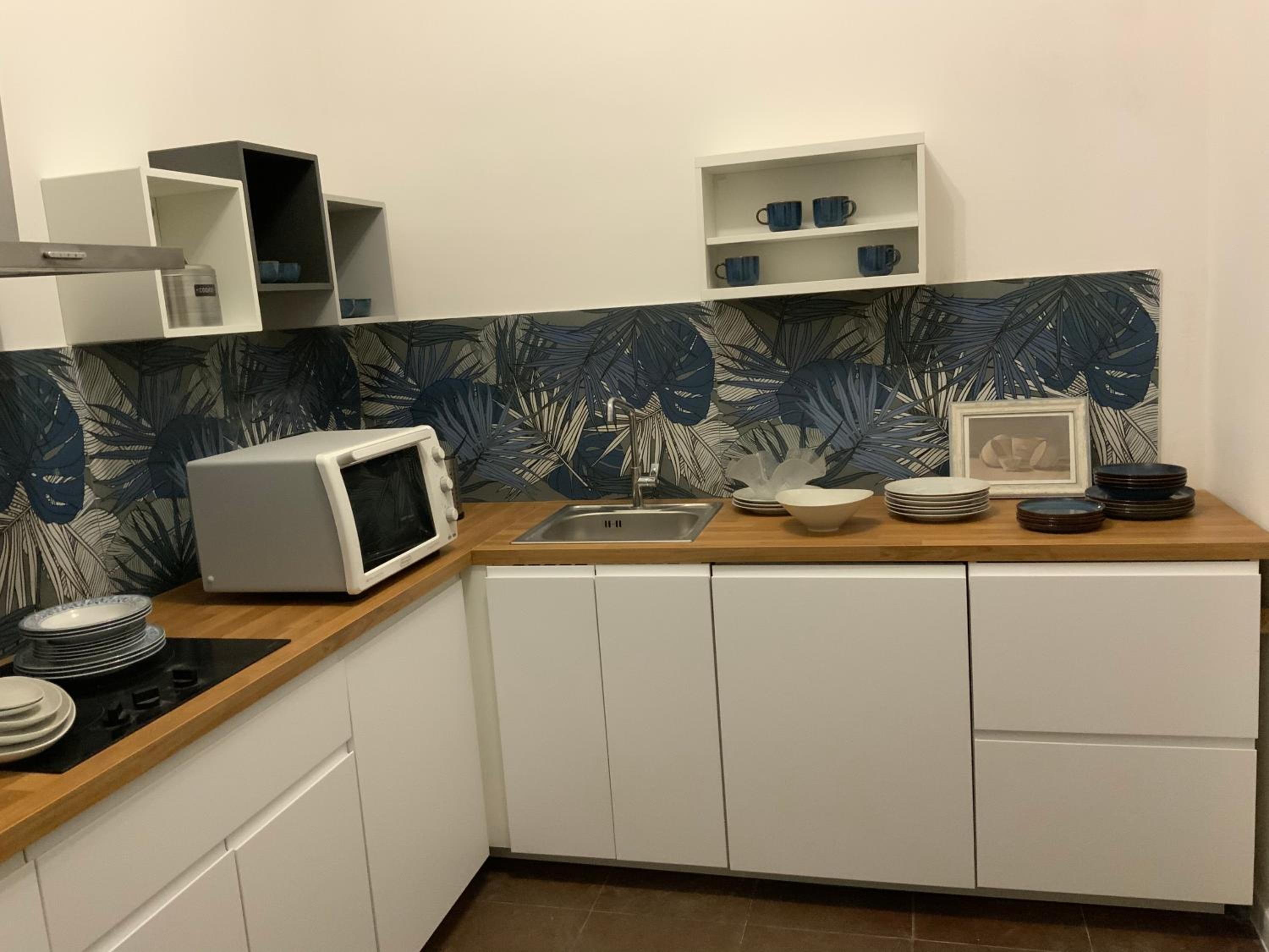 Metterei su una mensola in stanza un fornetto a microonde oppure una friggitrice ad aria per poter scaldare velocemente i pasti. Ma non è indispensabile ci si arrangia tranquillamente