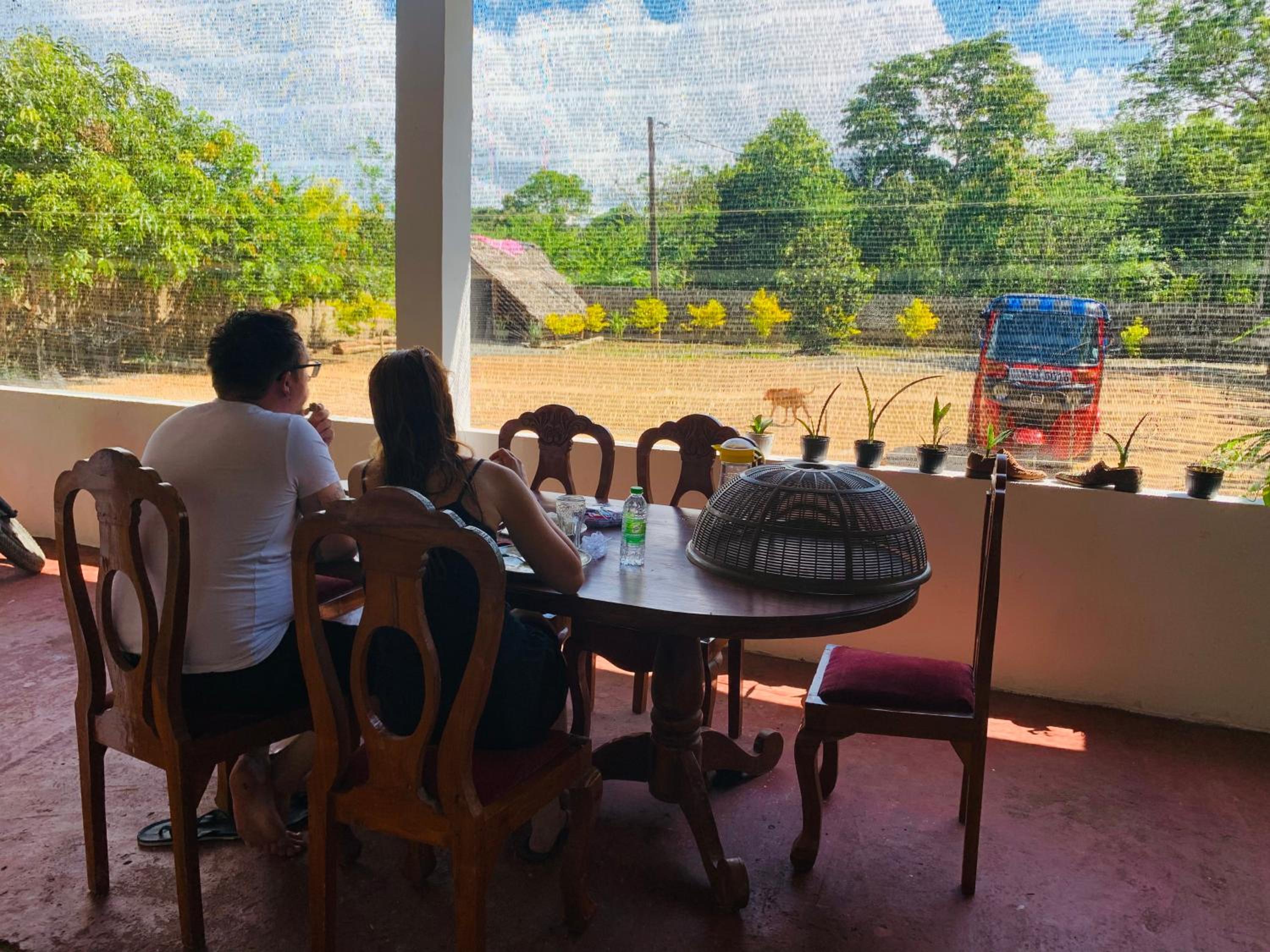 It was actually a homestay. The family lives there with 2 lovely dogs and cats. They are adorable. Good size rooms, good sized vomfy beds. The owners (husband and wife) were friendly, helpful and polite. They went out and bought playing cards and also ice cubes. We spent the late evening / night in the cabana playing cards. They cooked delicious hoppers for breakfast ( plain, milk and egg hoppers)