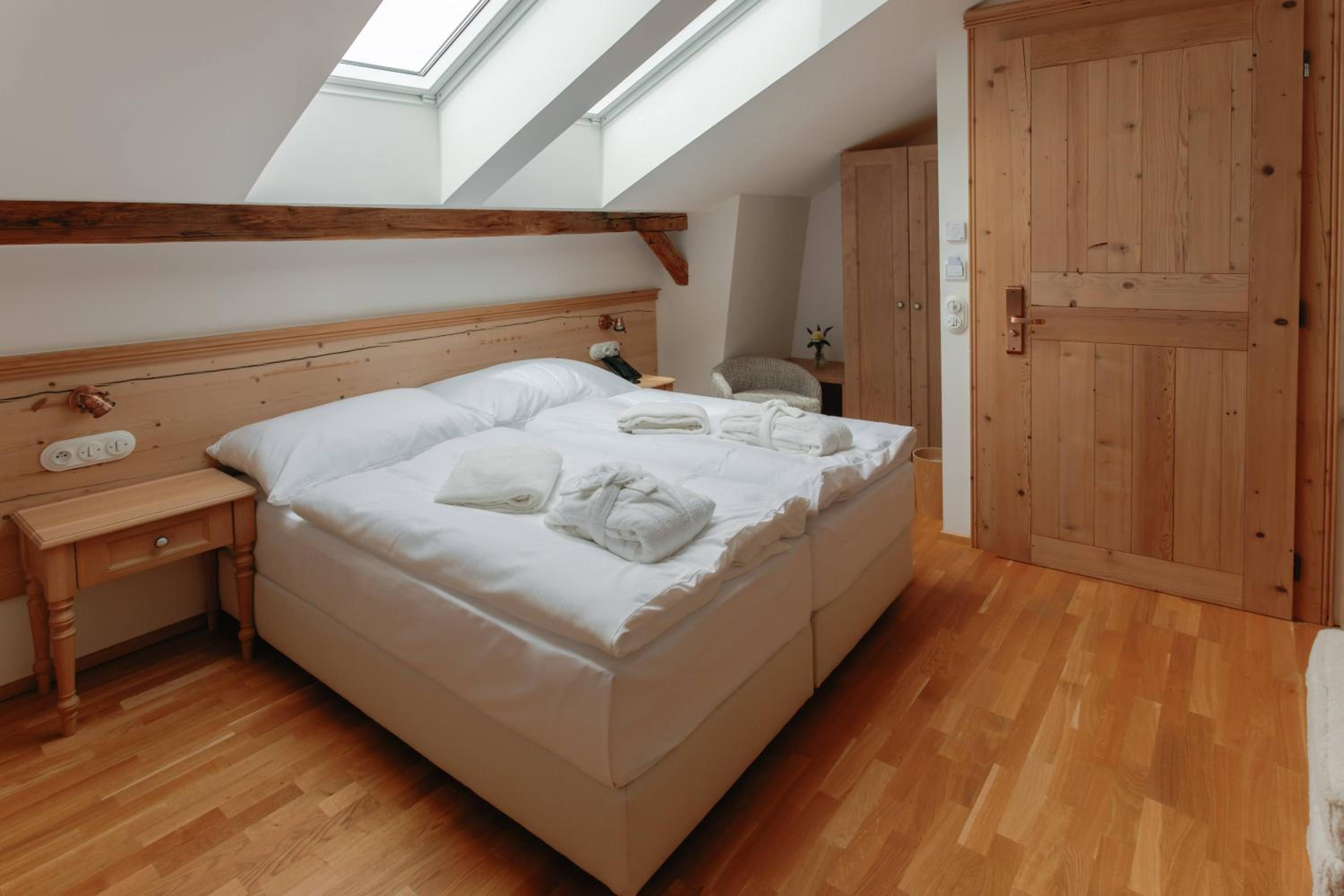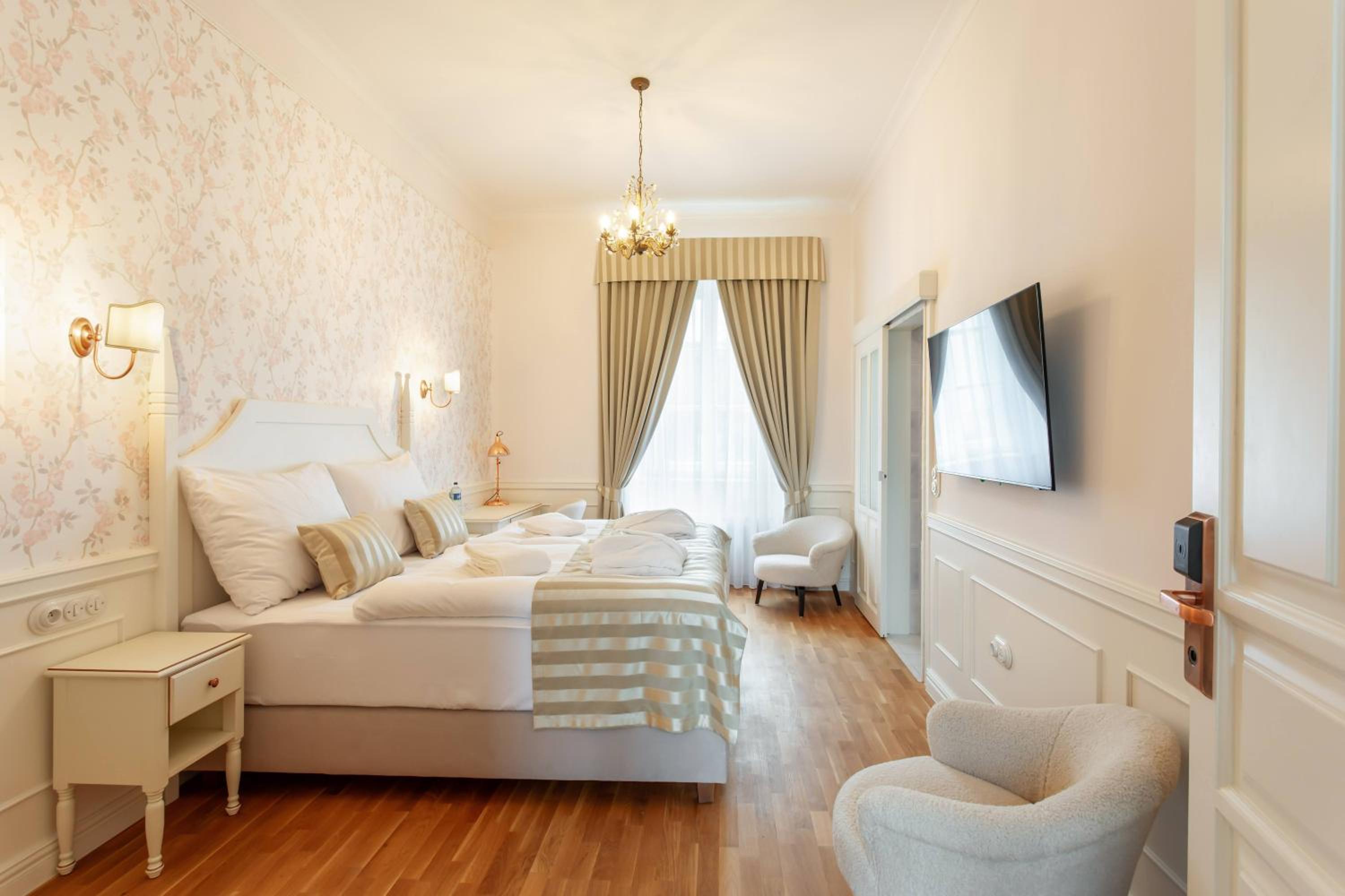 Perfektně propracované detaily, velké pokoje, prostranná koupelna, kvalitní materiál použitý jak při opravě/úpravě exteriéru, tak i interiéru, super matrace, a nejvíce oceňuji zařízení koupelny (měděná vana v prostoru), tak osvětlující tělesa (lustry a lampy).