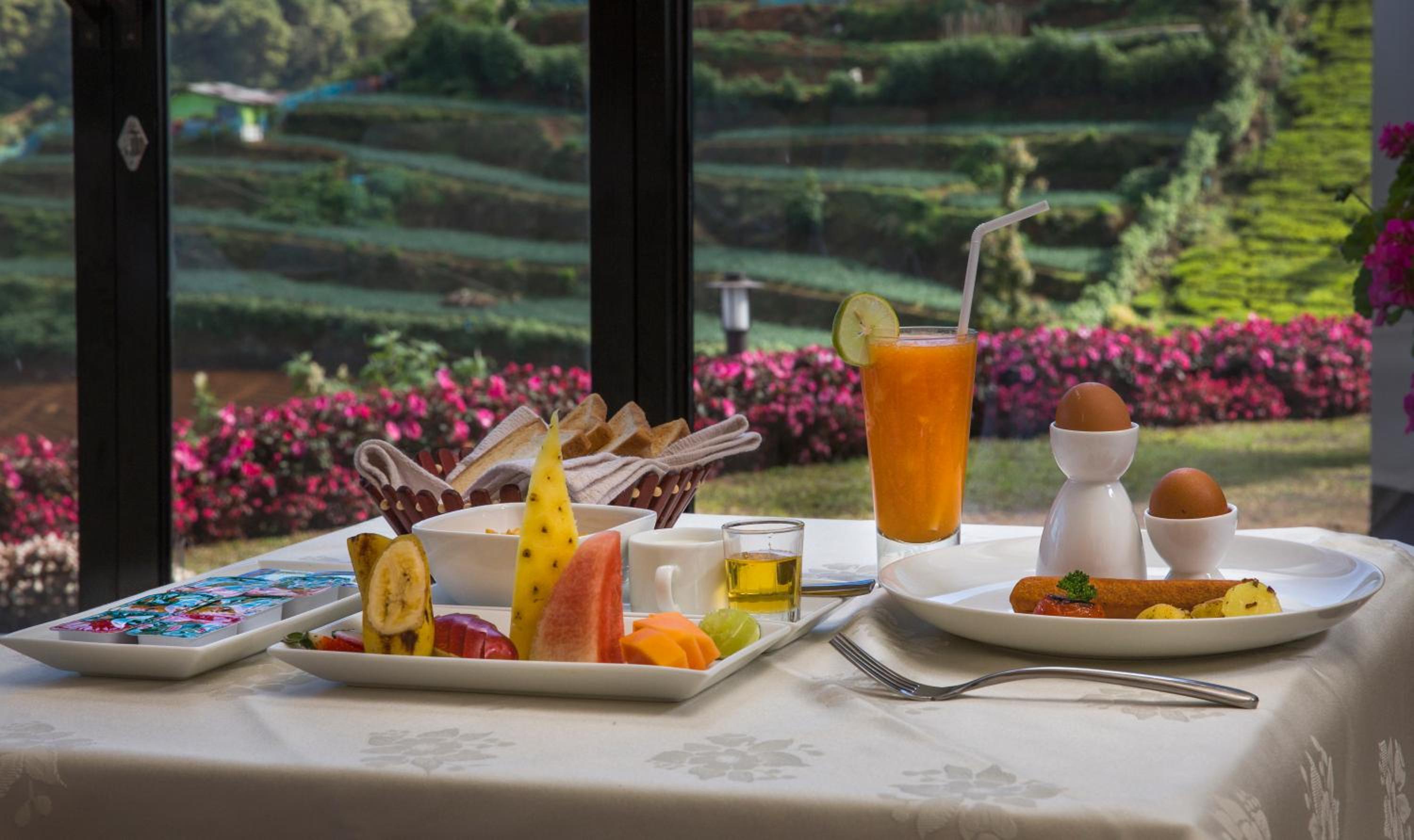Very comfortable hotel and a kind welcome. Our room was big, very beautifully decorated and had a nice view over tea plantations across the road. Situated in the mountains the air is cold but electric blankets and warm bedding meant we were comfortable. Evening meals and breakfasts are served in the hotel.